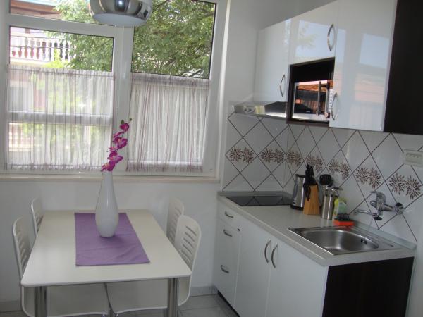 Super monolocale arredato, ha tutto ciò si ha realmente bisogno per una perfetta vacanza con la famiglia. La splendida terrazza, sempre in ombra. I proprietari sono sempre a disposizione, in realtà mi sento accogliente atmosfera familiare. Ci hanno offerto, così ci siamo sentiti massima confortevole e super. ci ha preparato il pranzo savrešen (ancora una volta, molte grazie per questo). Tutto ciò che nelle immagini, si è il proprietario ha fatto lo sforzo e il dettaglio che tutti objasio. Molto pulito e ben tenuto, la pulizia è 10 :) Servizio padrone di casa fantastico. Decisamente consigliato per le famiglie con bambini. Tutto è vicino, città, spiaggia, parco giochi. E, soprattutto, non c'è ressa sulla spiaggia quindi non c'è spingere. I prezzi di cibo e bevande in città, sulla spiaggia sono abbastanza reale, e non gonfio. Marina è la vacanza perfetta per le persone che hanno bisogno di pace e di una bella vacanza in famiglia. La vicinanza di grandi città, ma può essere facilmente e molto da vedere.