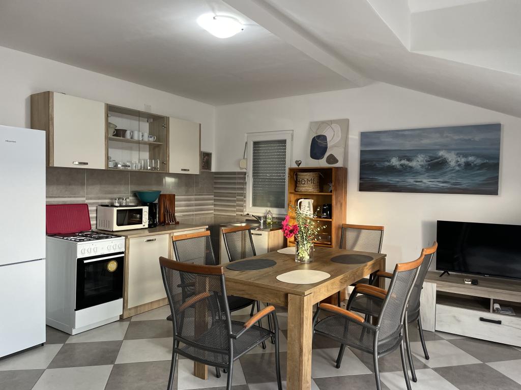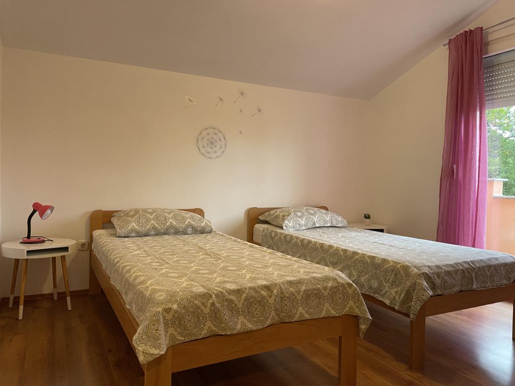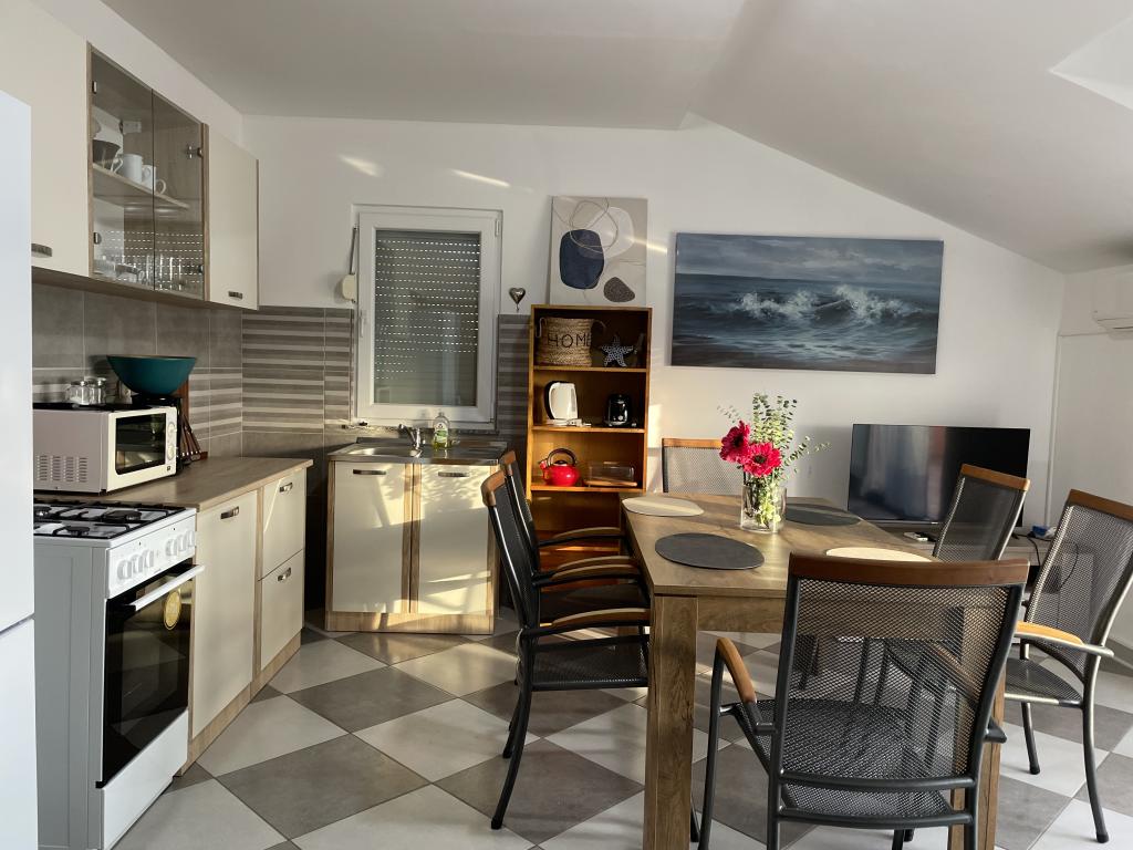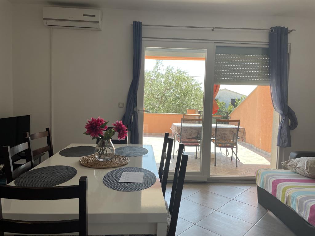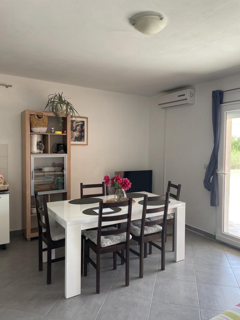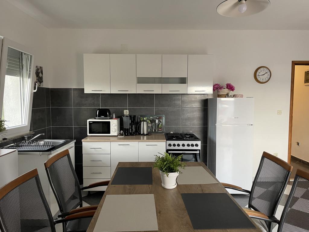 Casa vacanze di 60 m2 e una terrazza di 31 m2 si trova nel centro di Maslenica vicino a Zara su un terreno di 1273 m2, dalla spiaggia 5 minuti a piedi. I proprietari non vivono nella casa e gli ospiti di restare in tutto l'edificio. La casa è composta da due camere da letto, bagno, cucina-soggiorno e disimpegno. La terrazza ha protezione solare. Lenzuola e gli asciugamani vengono cambiati ogni 7 (sette) giorni per i soggiorni superiori a 7 (sette) giorni. La cucina è dotata di tutte le attrezzature necessarie e forniture da tavola e da pranzo. La casa è dotata di asse e ferro da bordo macchina, asciugatrice, asciugacapelli, macchina per il caffè e bollitore. L'utilizzo di Internet, aria condizionata, TV satellitare, parcheggio, asciugacapelli e lavatrici sono non naplaćuje.Kuća è situato in una zona tranquilla Maslenice con ulivi e altri alberi intorno all'edificio. Benvenuto!