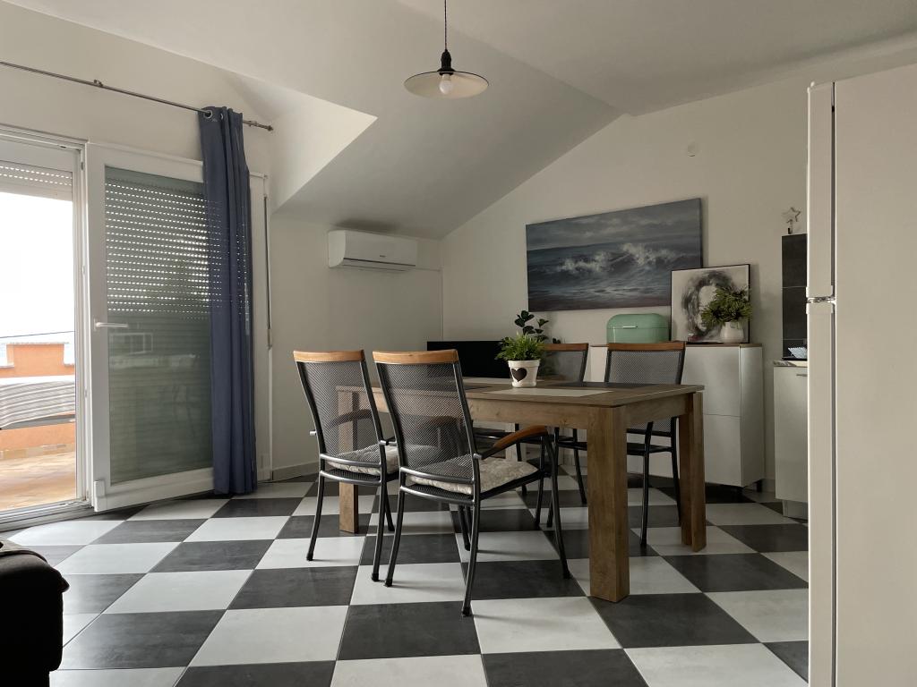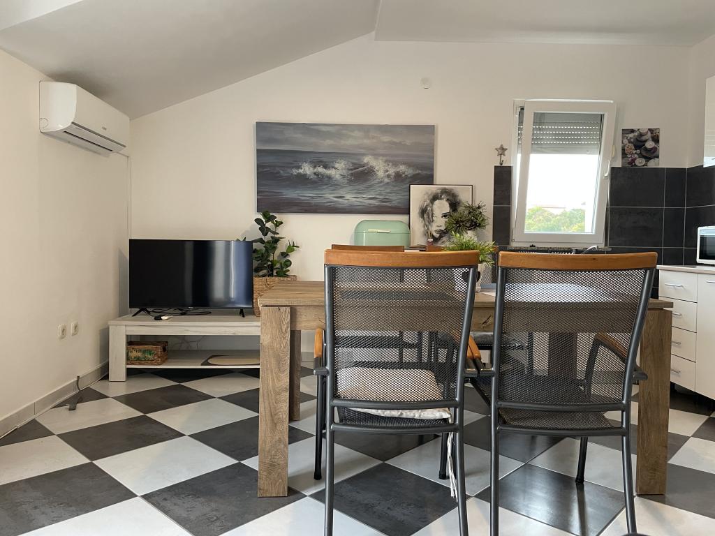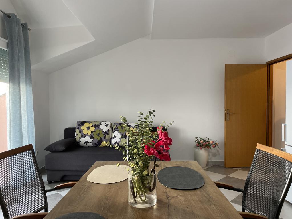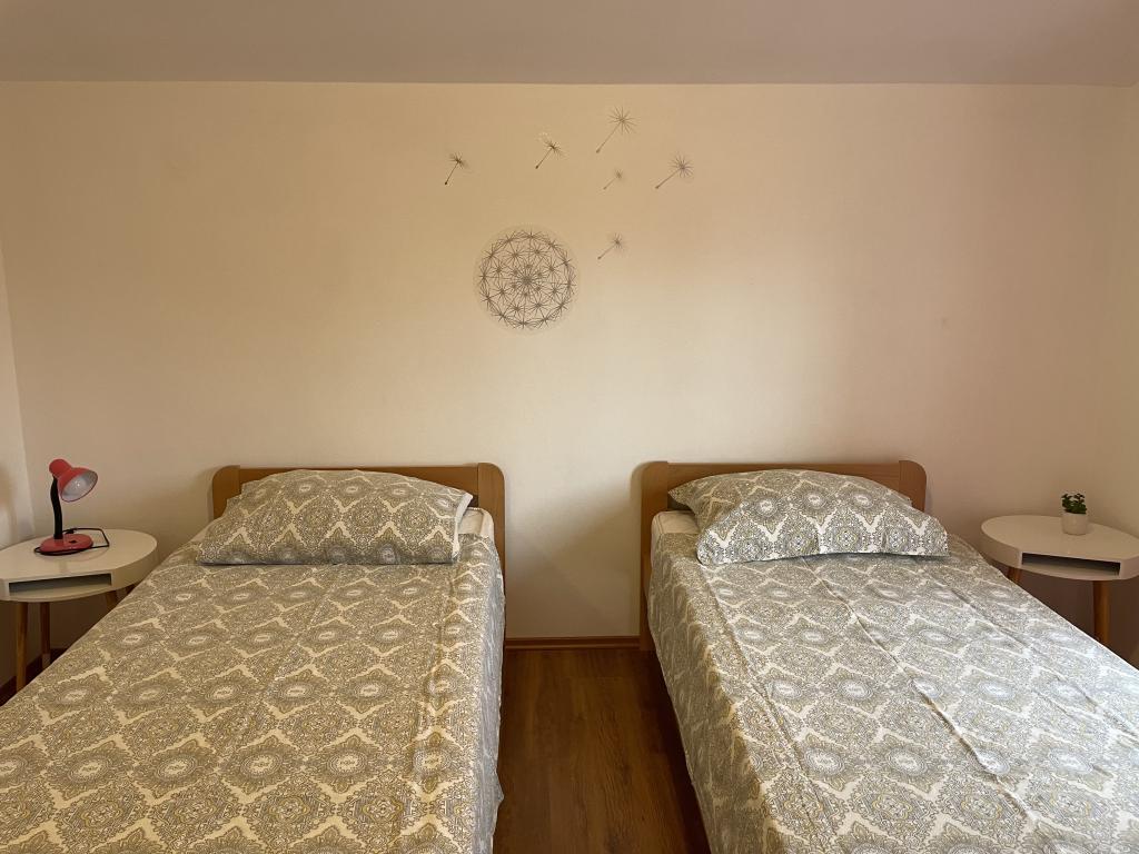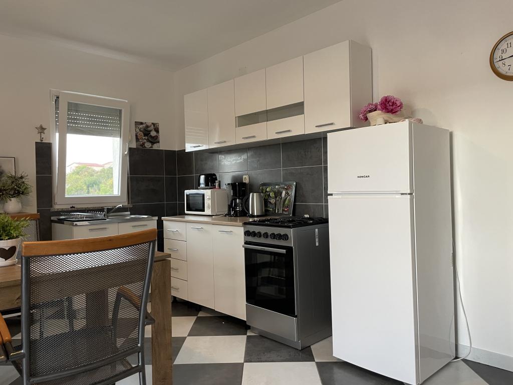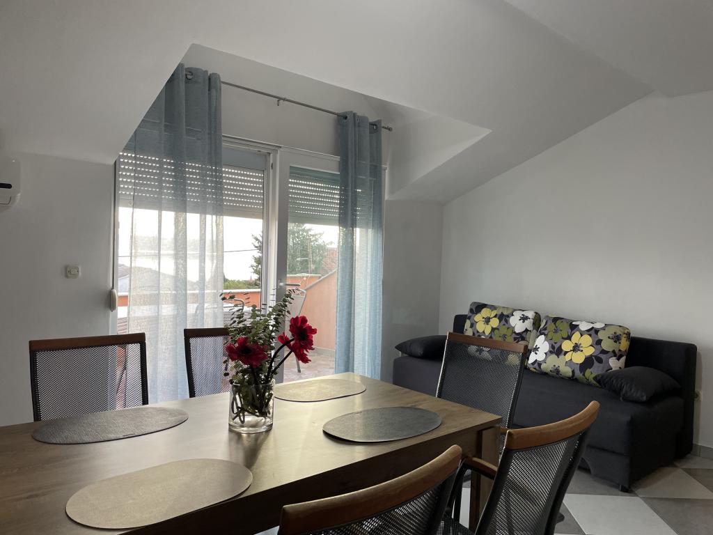 Casa vacanze di 60 m2 e una terrazza di 31 m2 si trova nel centro di Maslenica vicino a Zara su un terreno di 1273 m2, dalla spiaggia 5 minuti a piedi. I proprietari non vivono nella casa e gli ospiti di restare in tutto l'edificio. La casa è composta da due camere da letto, bagno, cucina-soggiorno e disimpegno. La terrazza ha protezione solare. Lenzuola e gli asciugamani vengono cambiati ogni 7 (sette) giorni per i soggiorni superiori a 7 (sette) giorni. La cucina è dotata di tutte le attrezzature necessarie e forniture da tavola e da pranzo. La casa è dotata di asse e ferro da bordo macchina, asciugatrice, asciugacapelli, macchina per il caffè e bollitore. L'utilizzo di Internet, aria condizionata, TV satellitare, parcheggio, asciugacapelli e lavatrici sono non naplaćuje.Kuća è situato in una zona tranquilla Maslenice con ulivi e altri alberi intorno all'edificio. Benvenuto!