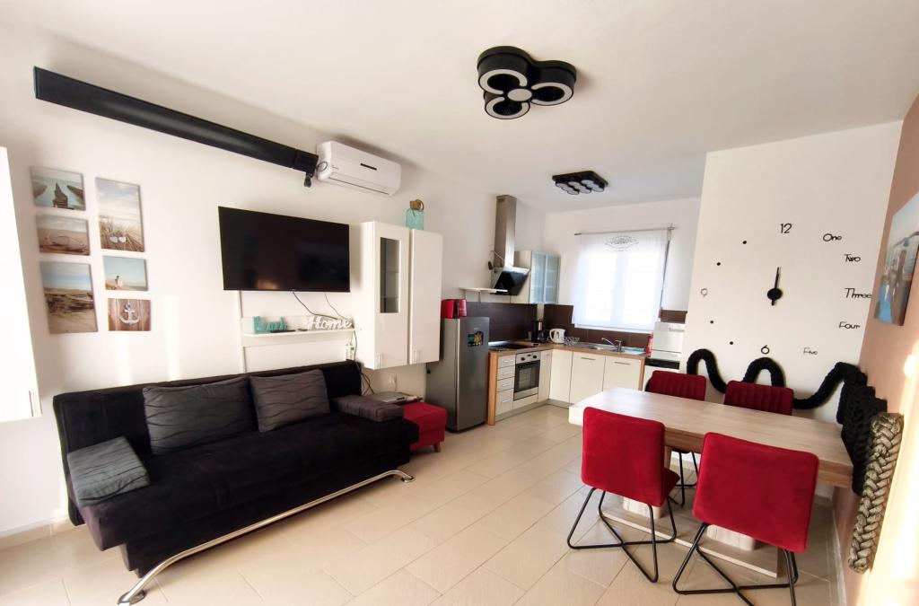 Appartamento completamente arredato situato al piano terra. È composto da una camera da letto con letto matrimoniale, una cucina con sala da pranzo, un bagno e un soggiorno con due divani, uno dei quali può essere trasformato in un letto supplementare. È possibile ospitare animali domestici a pagamento e disponiamo di un ormeggio/boa che i nostri ospiti possono utilizzare per ormeggiare la loro imbarcazione più piccola.