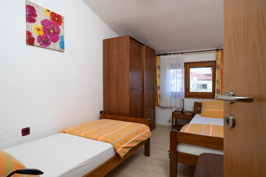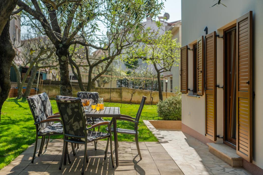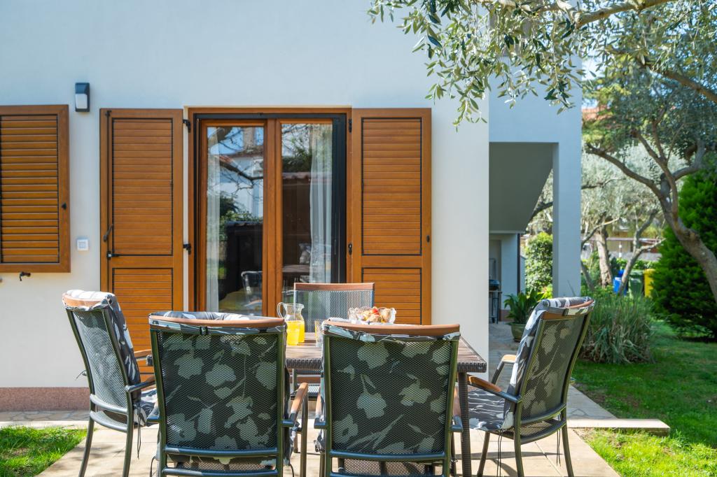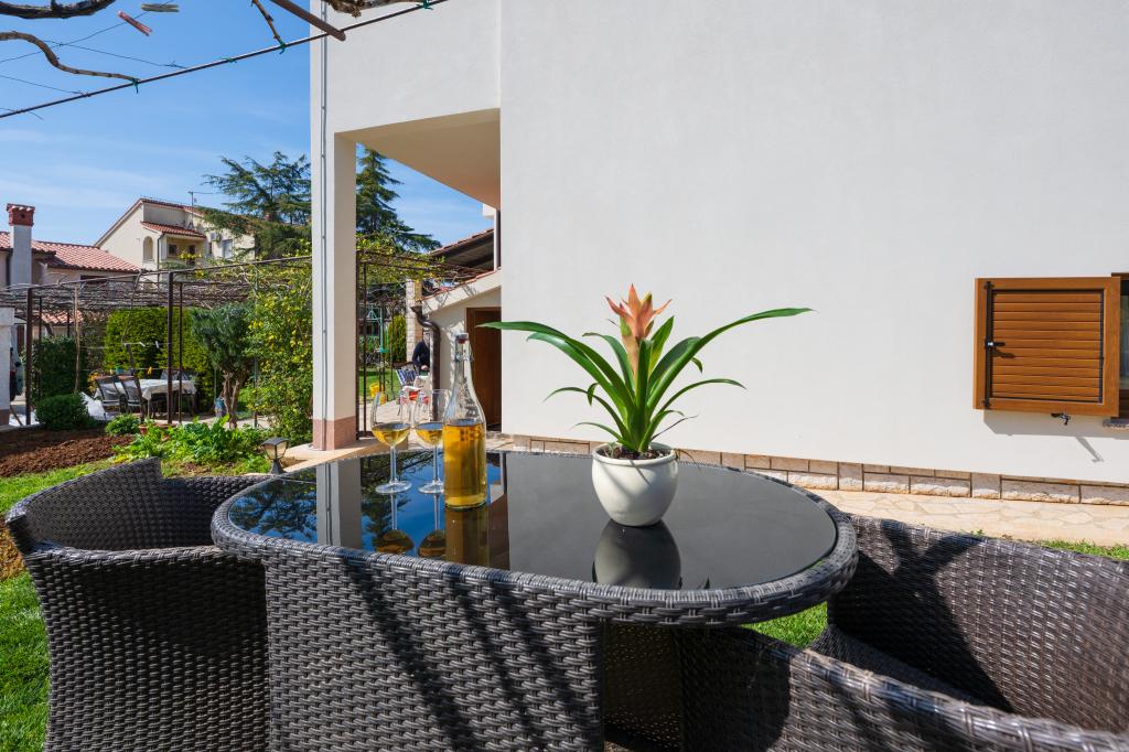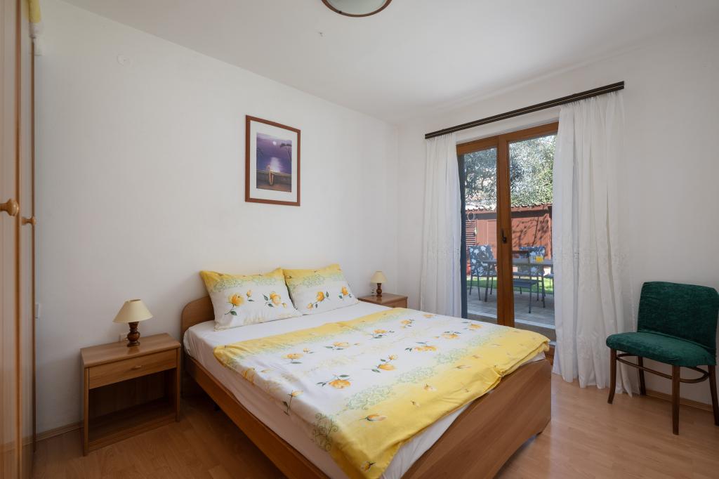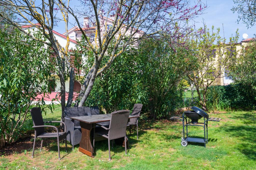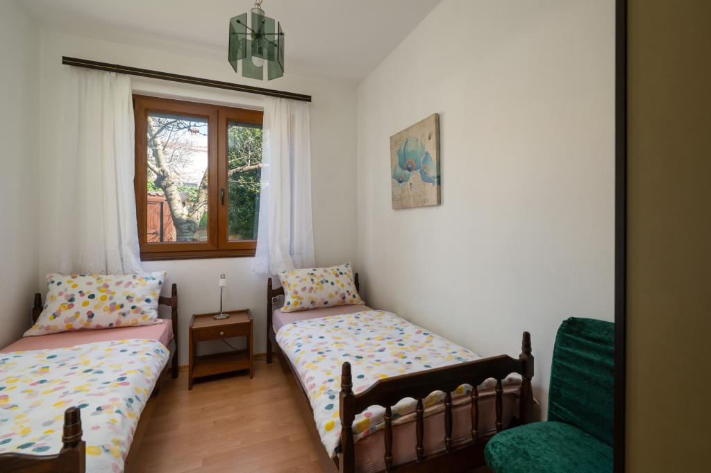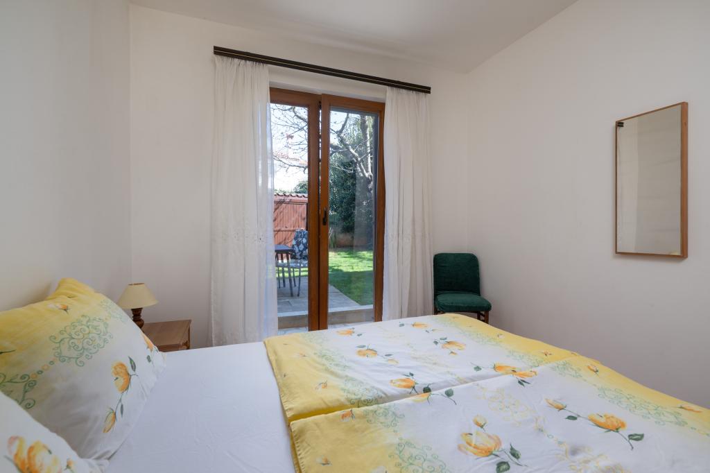 La casa si trova in una zona tranquilla di Medolino, a 250-300 metri dalla spiaggia, con un ampio giardino e parcheggio privato. Sono disponibili 4 appartamenti in affitto, completamente arredati e modernamente attrezzati. 2 appartamenti si trovano al piano terra. Appartamento n. 1 con 2 camere da letto, cucina, soggiorno, bagno e terrazza. Appartamento n. 2 con 1 camera da letto, cucina, bagno e terrazza con giardino. Al secondo piano si trova l'appartamento n. 3 con 2 camere da letto, cucina, soggiorno, bagno e balcone. Appartamento n. 4 con 1 camera da letto, cucina con soggiorno, bagno e balcone. Tutti gli appartamenti sono dotati di aria condizionata, internet wireless e TV satellitare. Il prezzo include biancheria da letto, asciugamani, tassa di soggiorno e registrazione. Ogni appartamento dispone di un proprio parcheggio, giardino e barbecue portatile. Noleggio lavatrice 5 euro, letto aggiuntivo 10 euro. Parcheggio e cortile videosorvegliati.