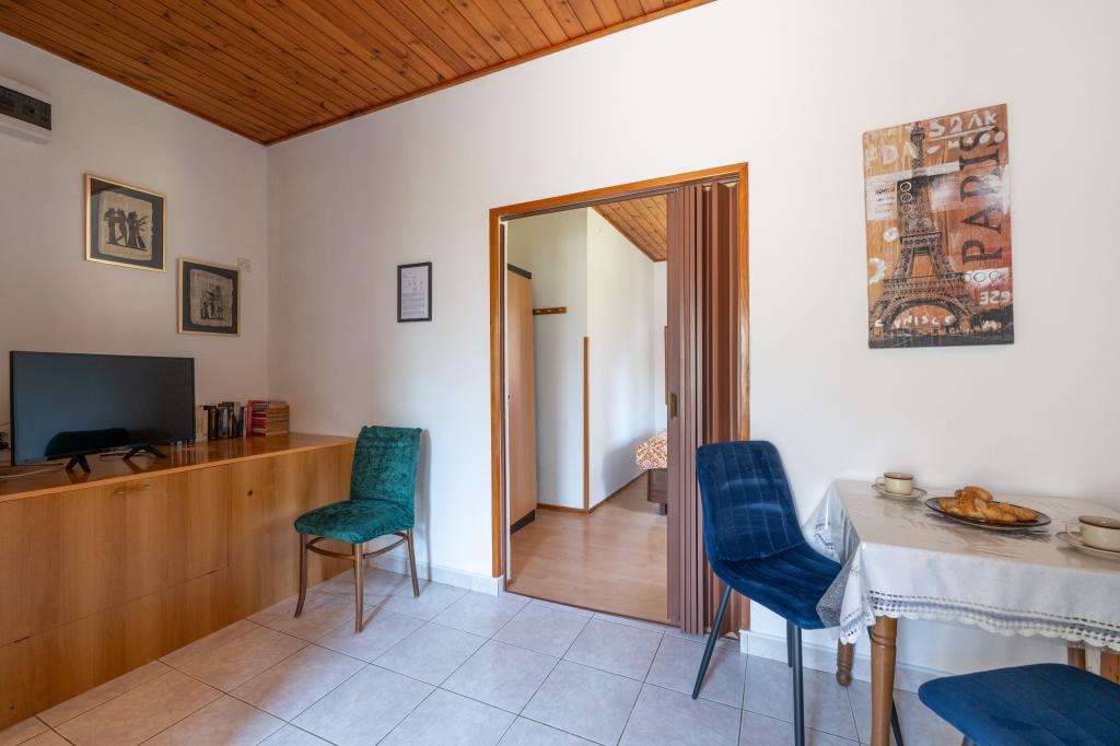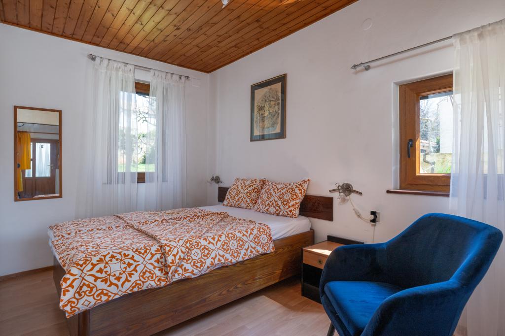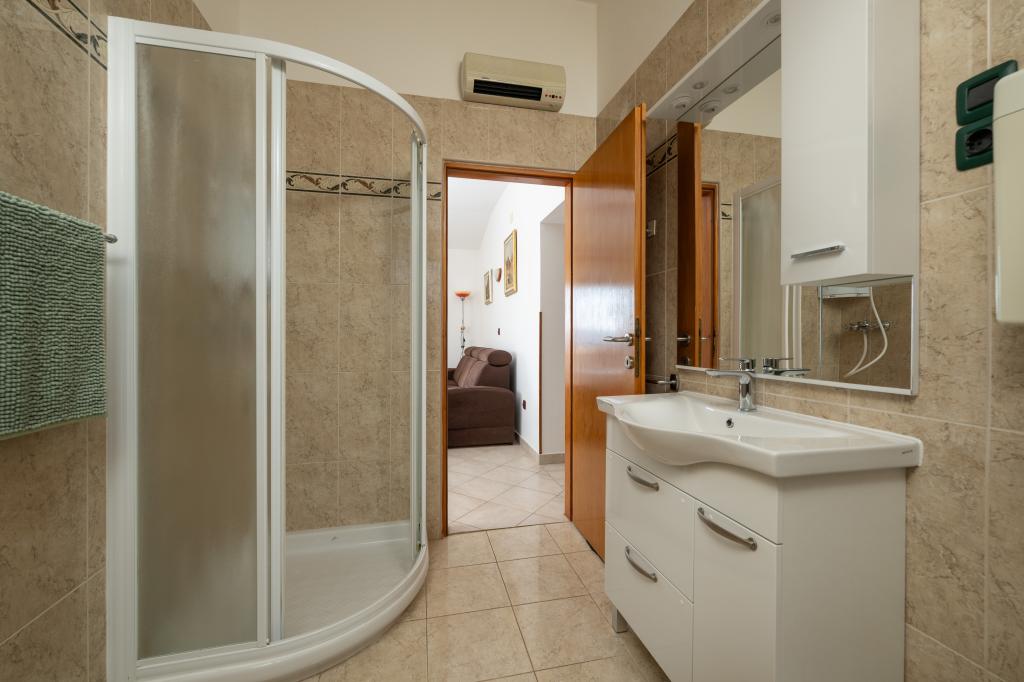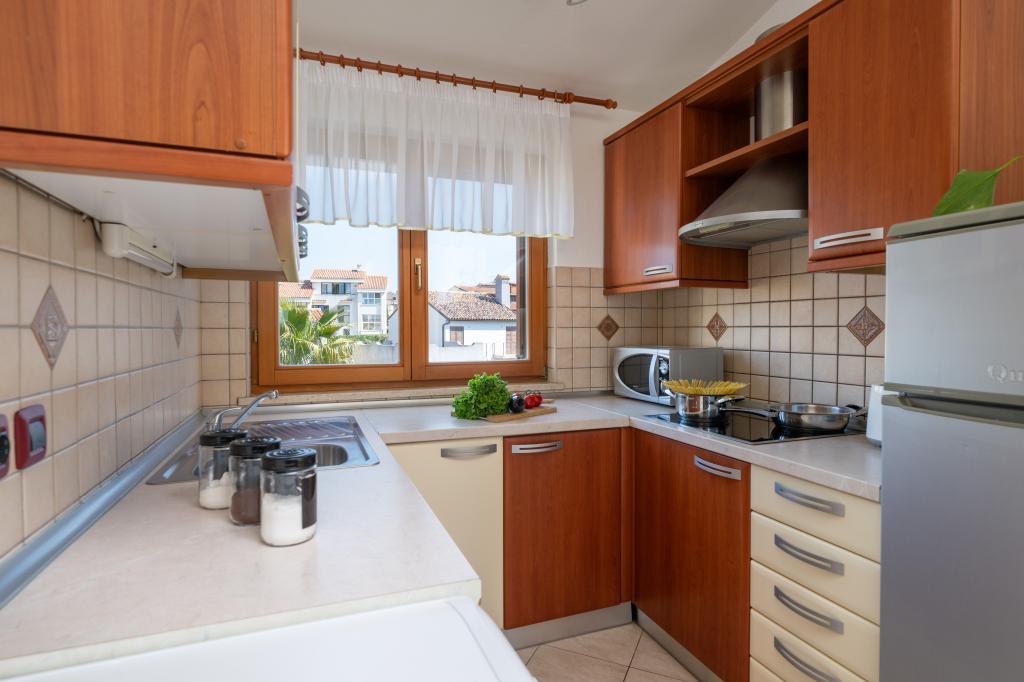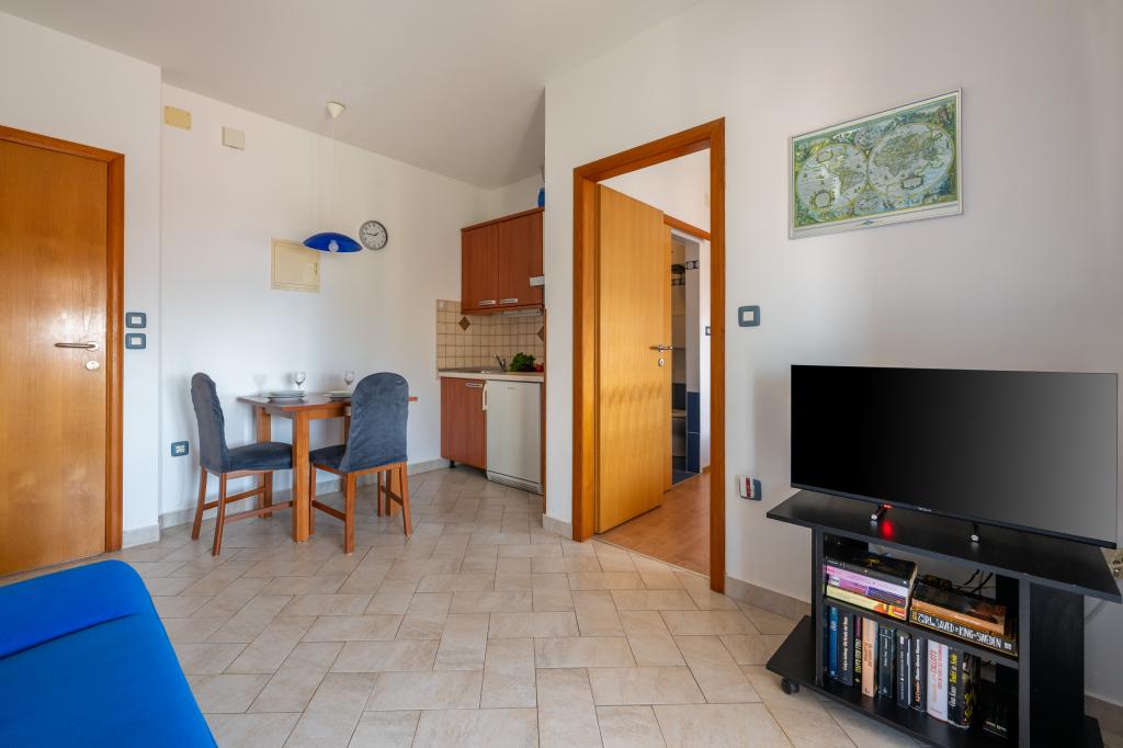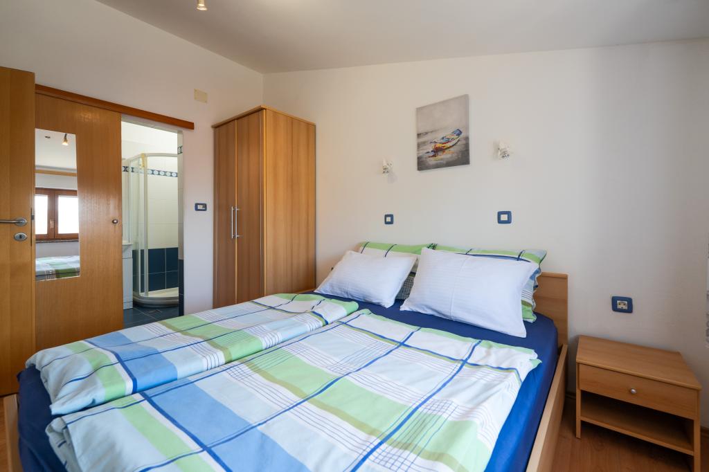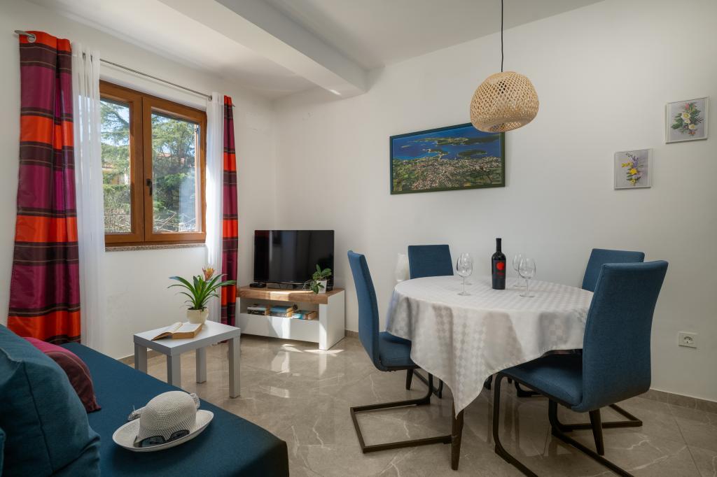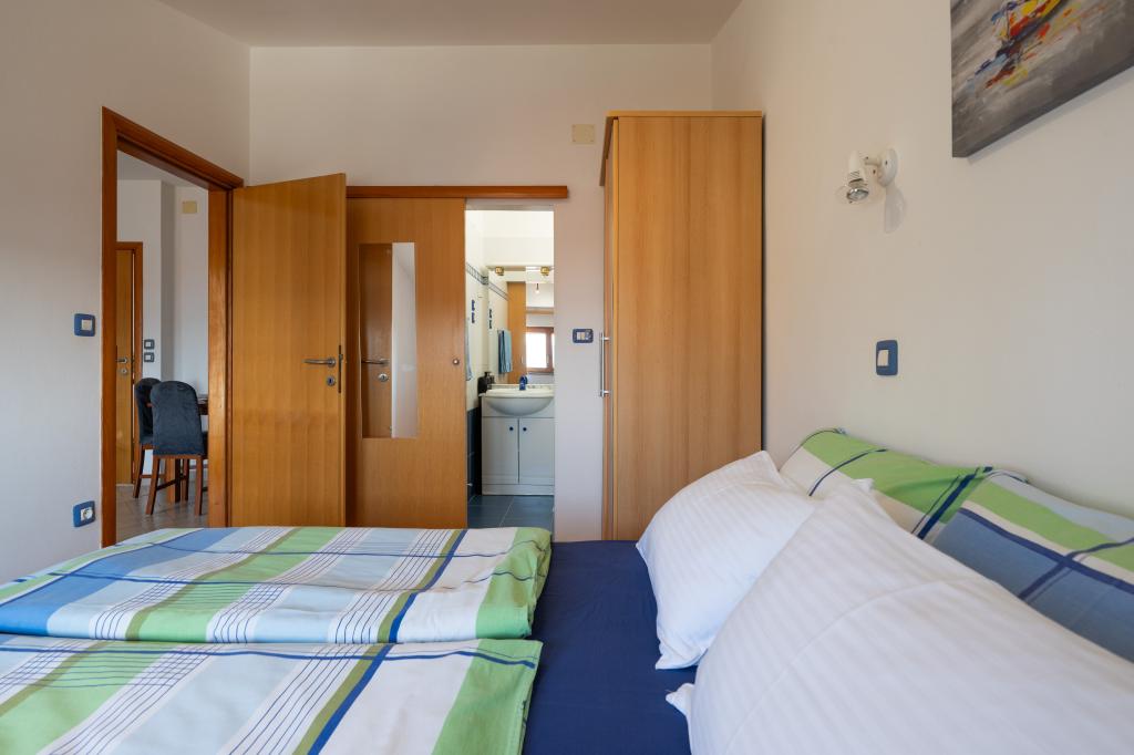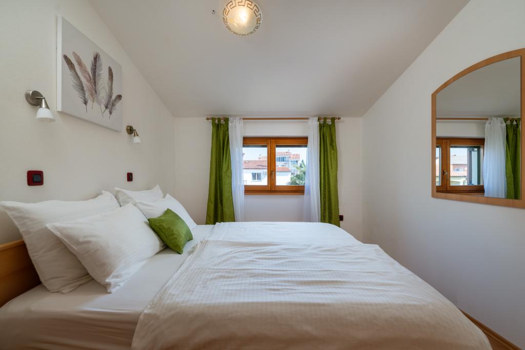 La casa si trova in una zona tranquilla di Medolino, a 250-300 metri dalla spiaggia, con un ampio giardino e parcheggio privato. Sono disponibili 4 appartamenti in affitto, completamente arredati e modernamente attrezzati. 2 appartamenti si trovano al piano terra. Appartamento n. 1 con 2 camere da letto, cucina, soggiorno, bagno e terrazza. Appartamento n. 2 con 1 camera da letto, cucina, bagno e terrazza con giardino. Al secondo piano si trova l'appartamento n. 3 con 2 camere da letto, cucina, soggiorno, bagno e balcone. Appartamento n. 4 con 1 camera da letto, cucina con soggiorno, bagno e balcone. Tutti gli appartamenti sono dotati di aria condizionata, internet wireless e TV satellitare. Il prezzo include biancheria da letto, asciugamani, tassa di soggiorno e registrazione. Ogni appartamento dispone di un proprio parcheggio, giardino e barbecue portatile. Noleggio lavatrice 5 euro, letto aggiuntivo 10 euro. Parcheggio e cortile videosorvegliati.