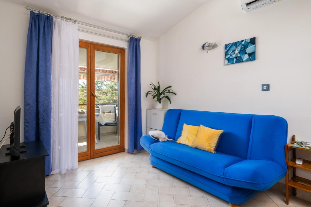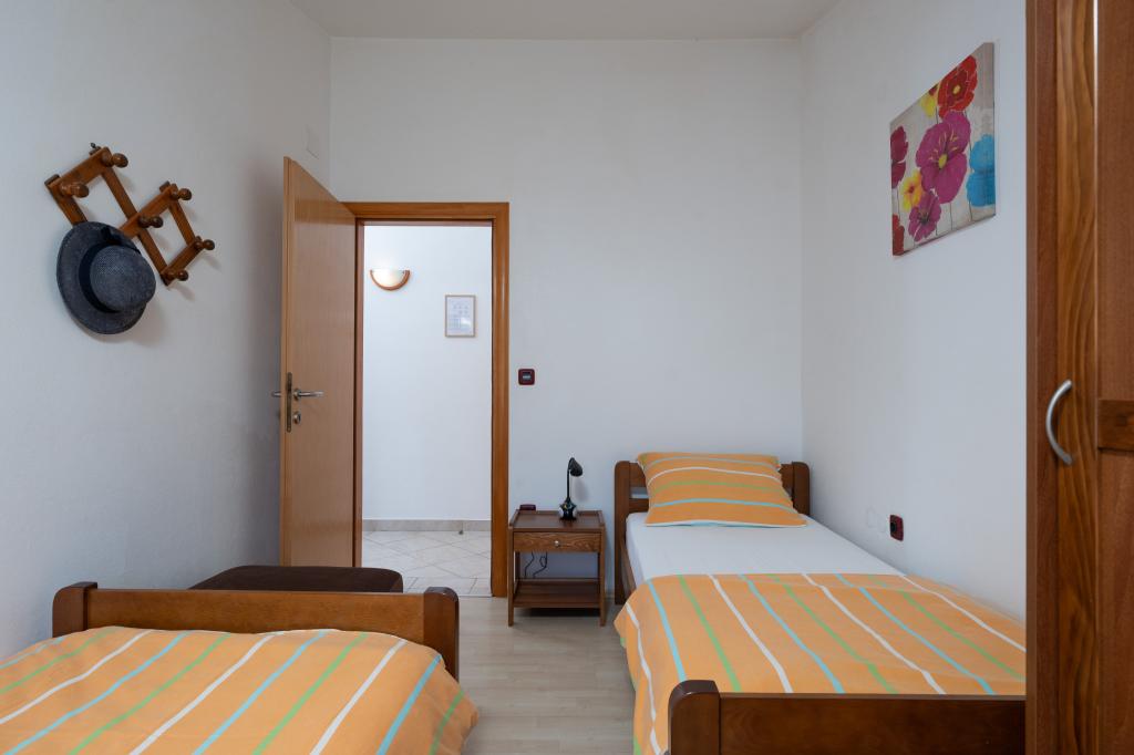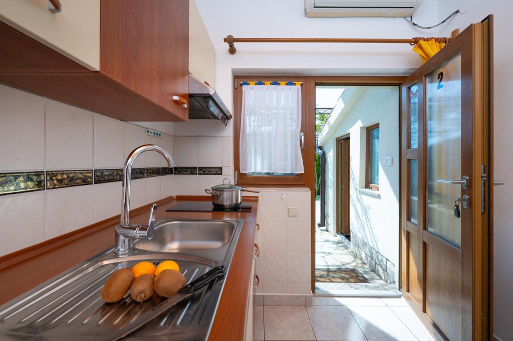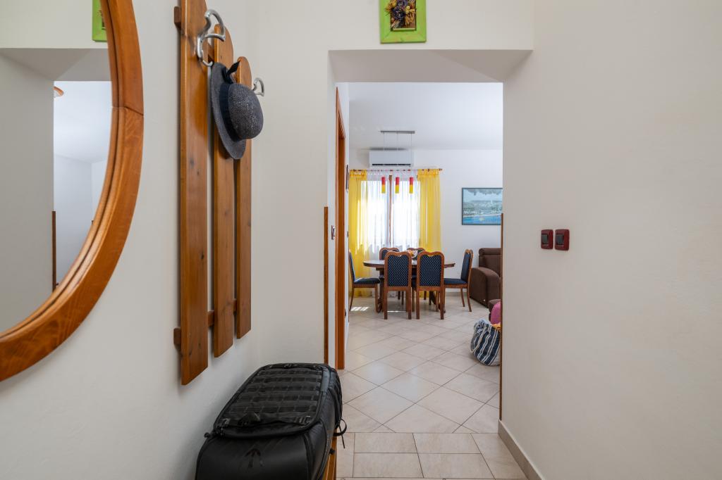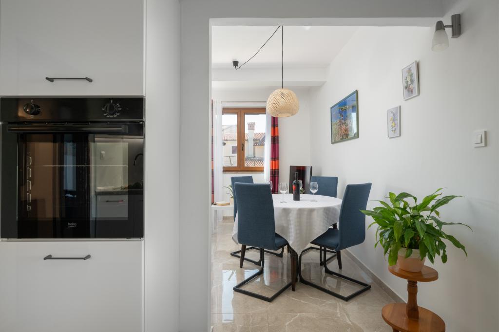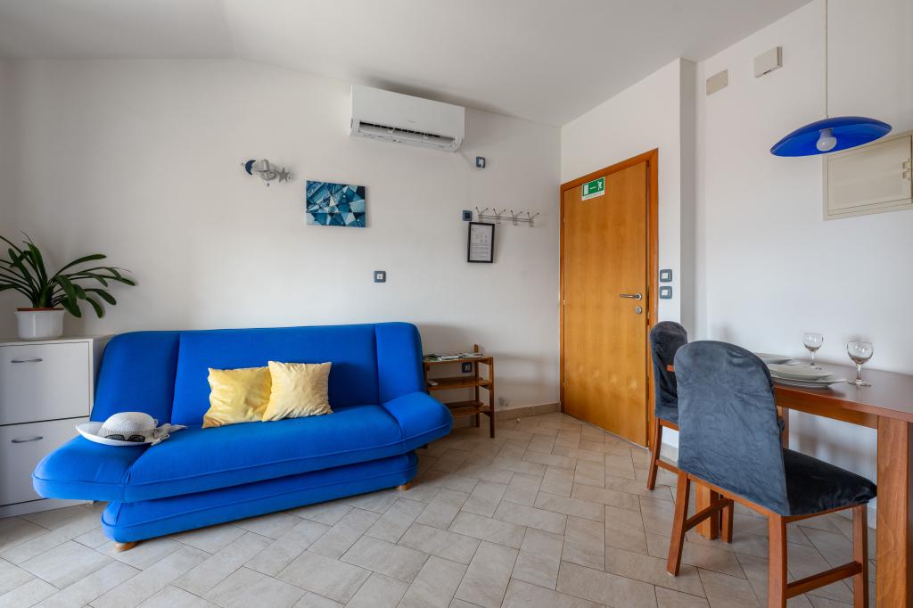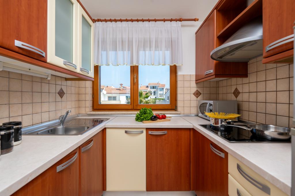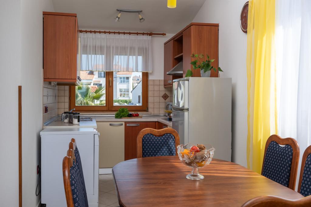 La casa si trova in una zona tranquilla di Medolino, a 250-300 metri dalla spiaggia, con un ampio giardino e parcheggio privato. Sono disponibili 4 appartamenti in affitto, completamente arredati e modernamente attrezzati. 2 appartamenti si trovano al piano terra. Appartamento n. 1 con 2 camere da letto, cucina, soggiorno, bagno e terrazza. Appartamento n. 2 con 1 camera da letto, cucina, bagno e terrazza con giardino. Al secondo piano si trova l'appartamento n. 3 con 2 camere da letto, cucina, soggiorno, bagno e balcone. Appartamento n. 4 con 1 camera da letto, cucina con soggiorno, bagno e balcone. Tutti gli appartamenti sono dotati di aria condizionata, internet wireless e TV satellitare. Il prezzo include biancheria da letto, asciugamani, tassa di soggiorno e registrazione. Ogni appartamento dispone di un proprio parcheggio, giardino e barbecue portatile. Noleggio lavatrice 5 euro, letto aggiuntivo 10 euro. Parcheggio e cortile videosorvegliati.