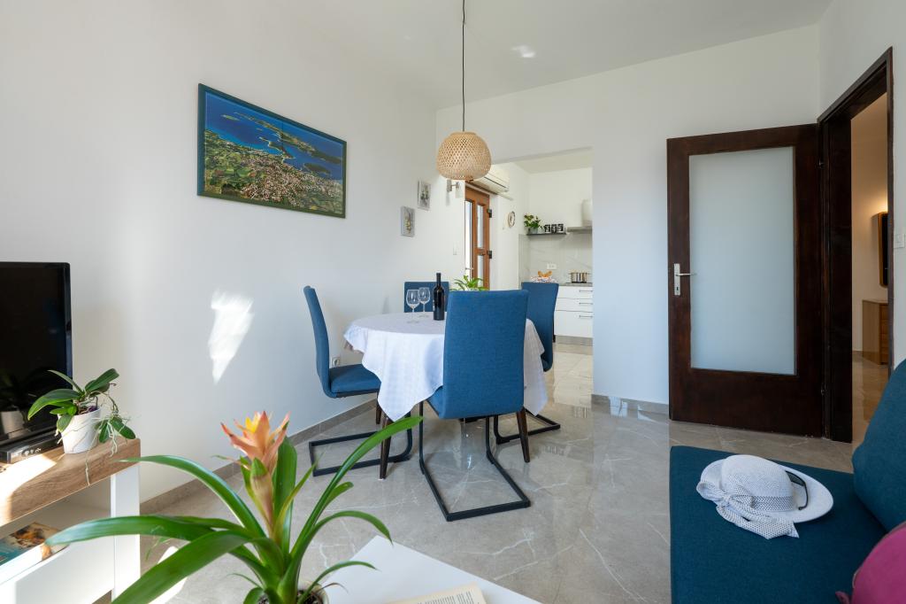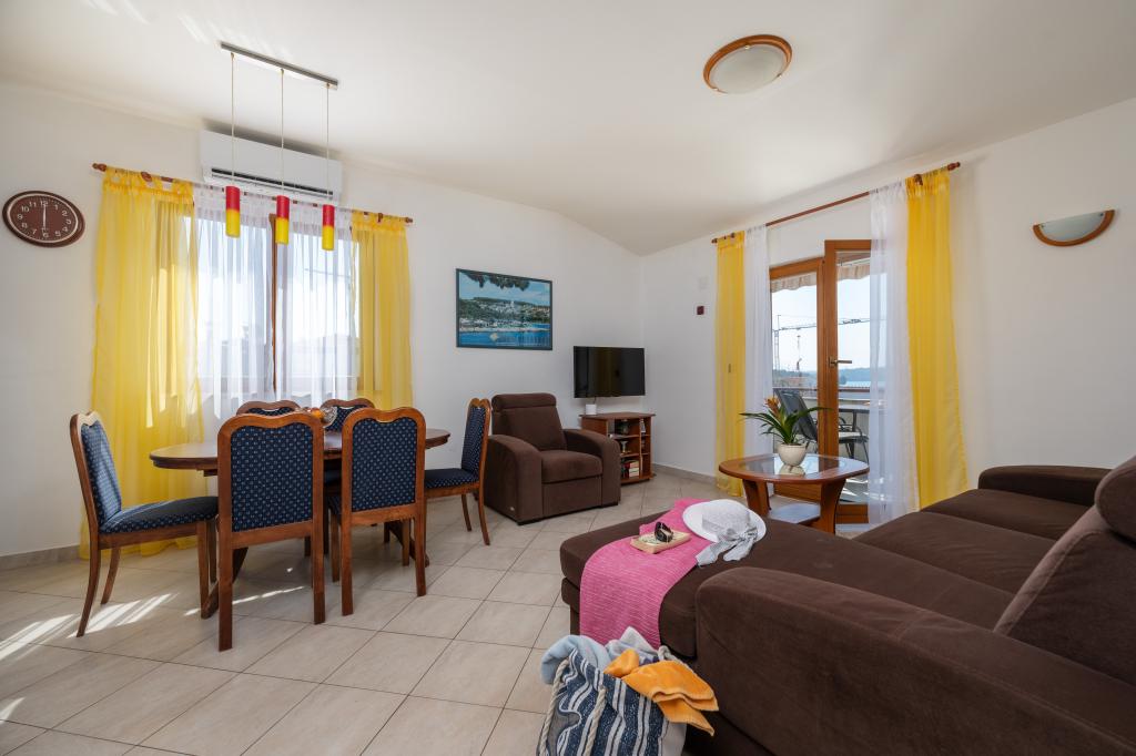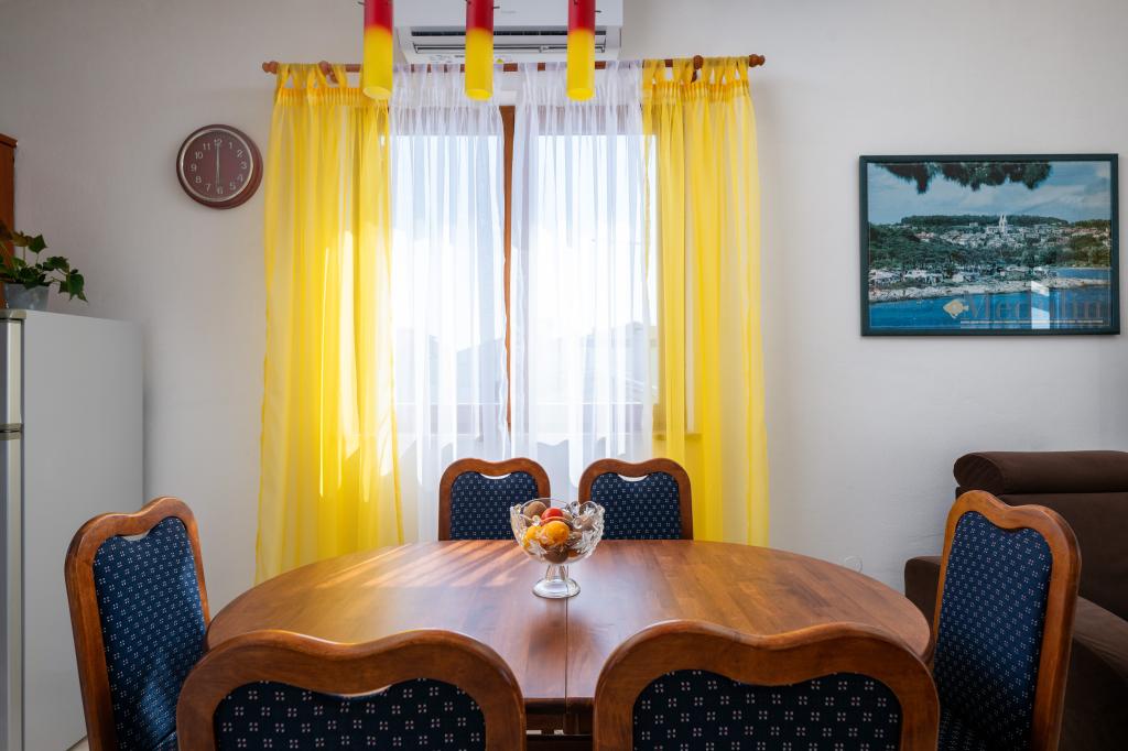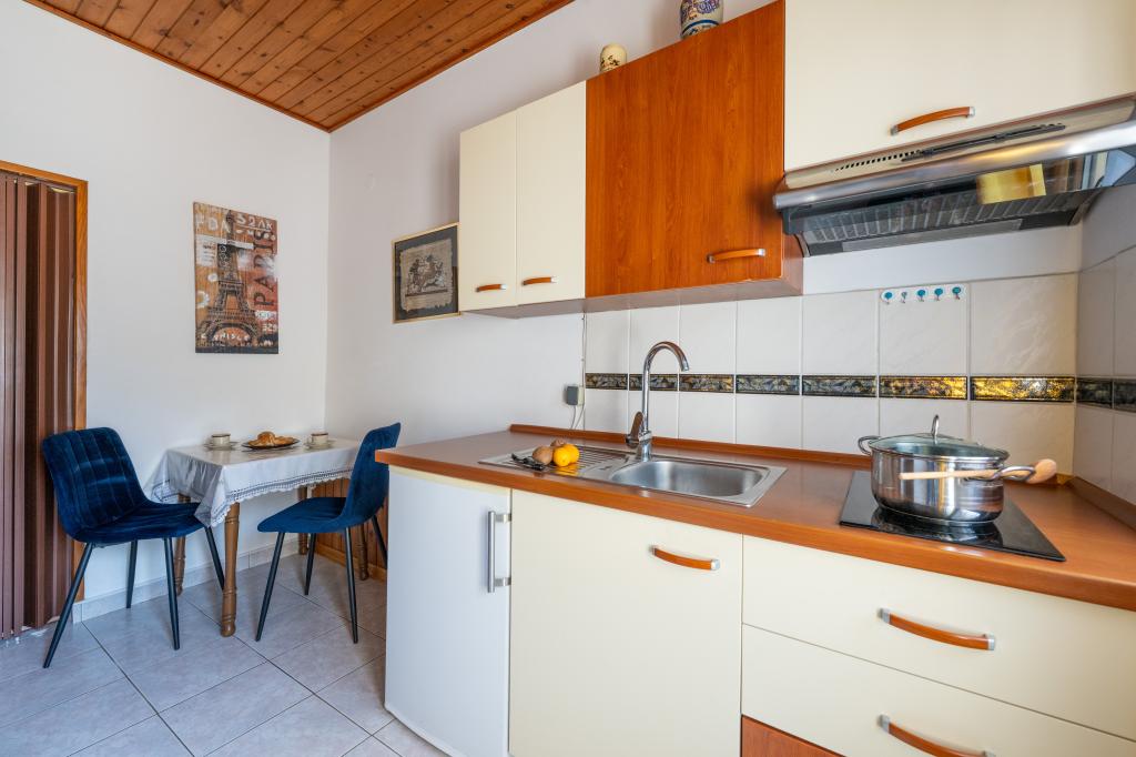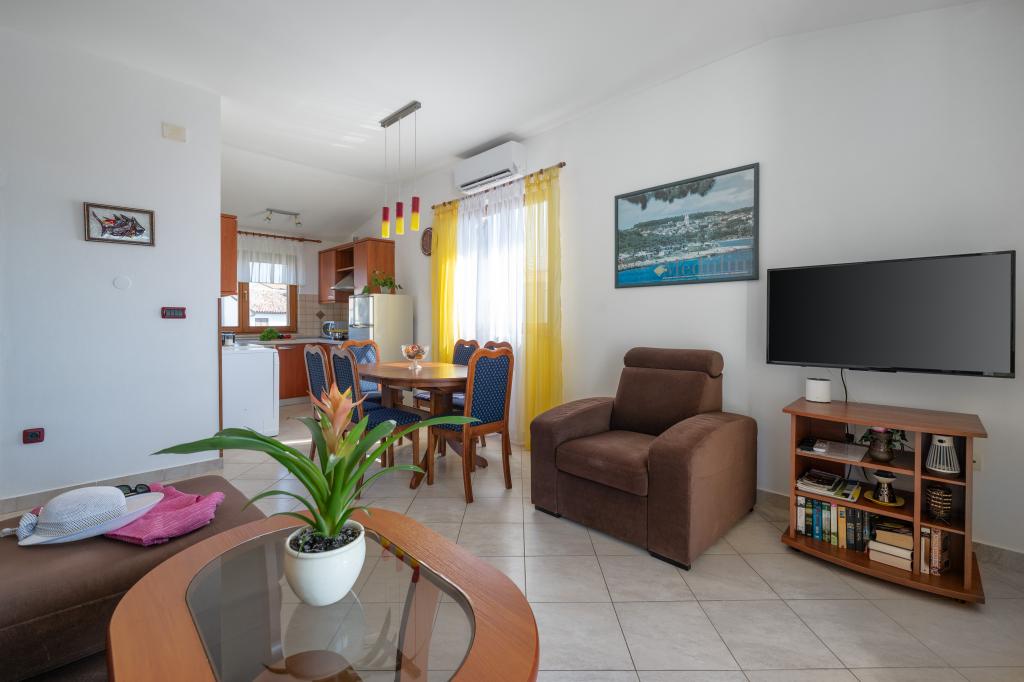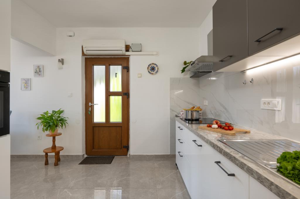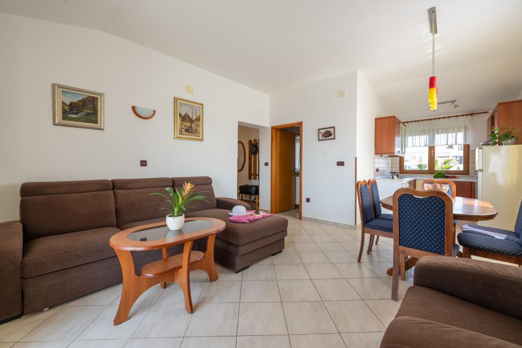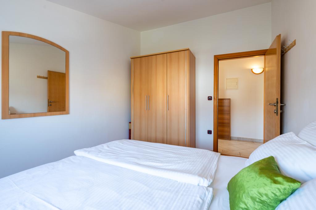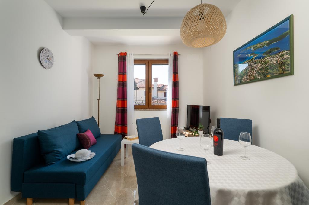 La casa si trova in una zona tranquilla di Medolino, a 250-300 metri dalla spiaggia, con un ampio giardino e parcheggio privato. Sono disponibili 4 appartamenti in affitto, completamente arredati e modernamente attrezzati. 2 appartamenti si trovano al piano terra. Appartamento n. 1 con 2 camere da letto, cucina, soggiorno, bagno e terrazza. Appartamento n. 2 con 1 camera da letto, cucina, bagno e terrazza con giardino. Al secondo piano si trova l'appartamento n. 3 con 2 camere da letto, cucina, soggiorno, bagno e balcone. Appartamento n. 4 con 1 camera da letto, cucina con soggiorno, bagno e balcone. Tutti gli appartamenti sono dotati di aria condizionata, internet wireless e TV satellitare. Il prezzo include biancheria da letto, asciugamani, tassa di soggiorno e registrazione. Ogni appartamento dispone di un proprio parcheggio, giardino e barbecue portatile. Noleggio lavatrice 5 euro, letto aggiuntivo 10 euro. Parcheggio e cortile videosorvegliati.