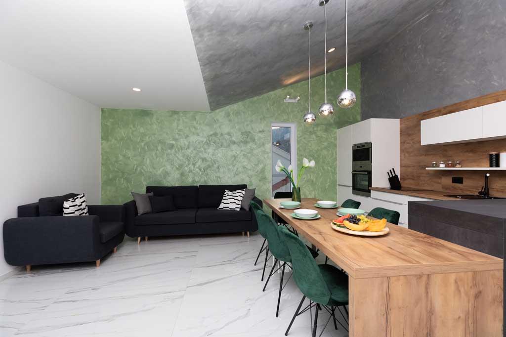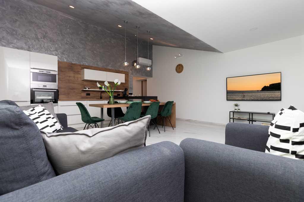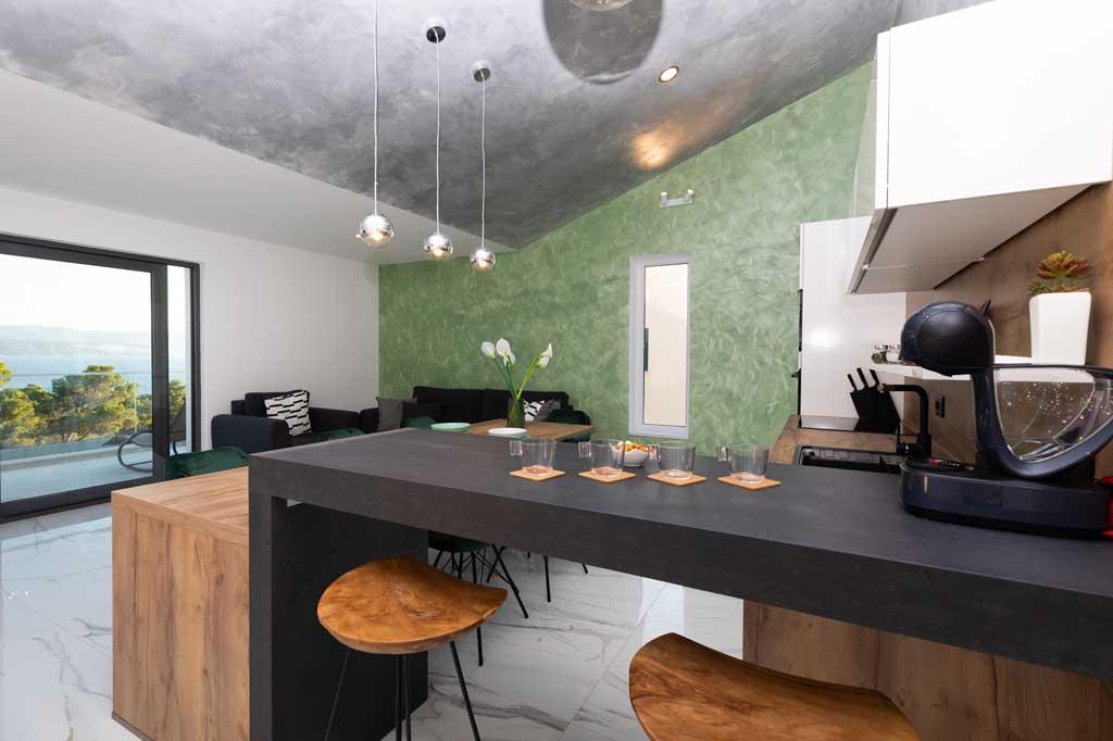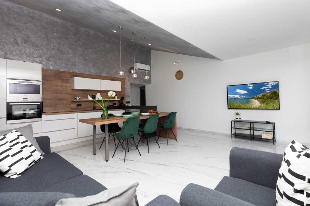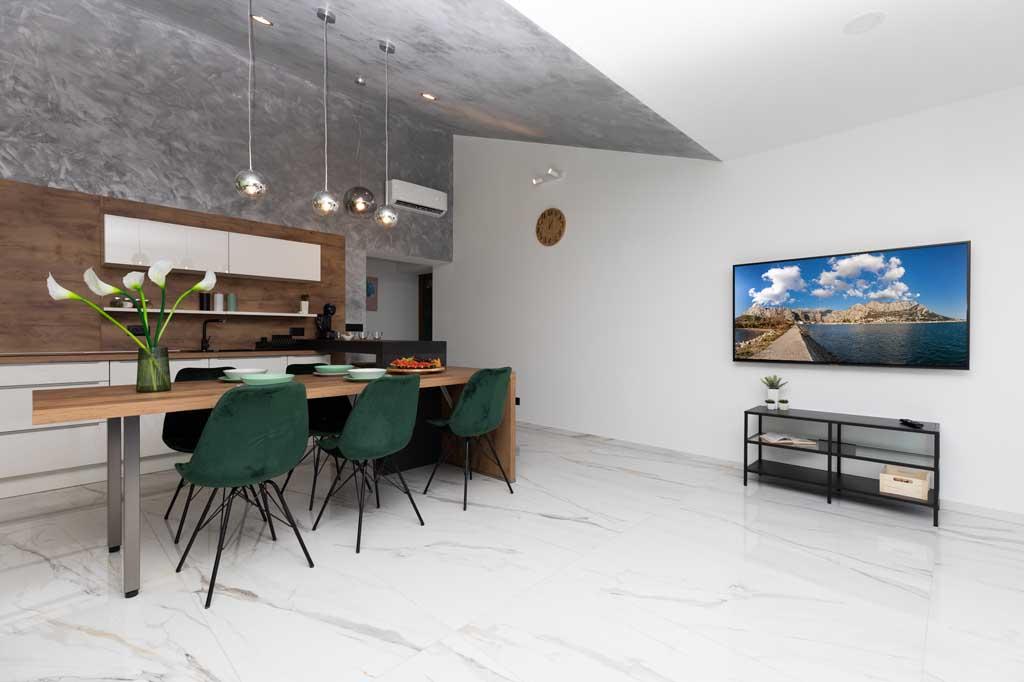 Un grande supermercato e l'ufficio postale sono a soli 700 metri di distanza, mentre la città più vicina di Omis dista 10 km. La città di Spalato dista 30 km.