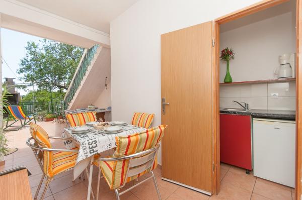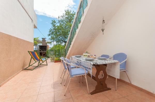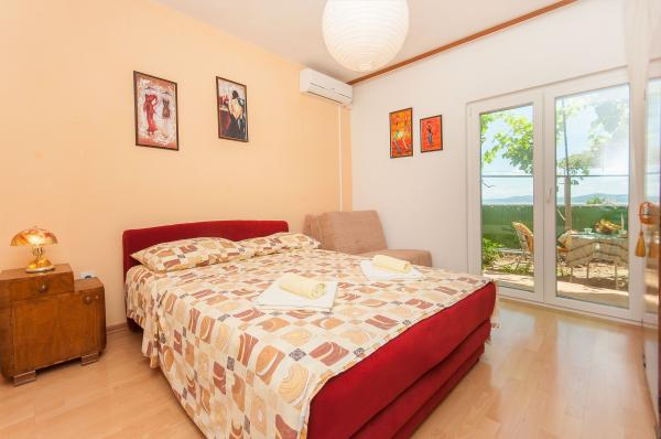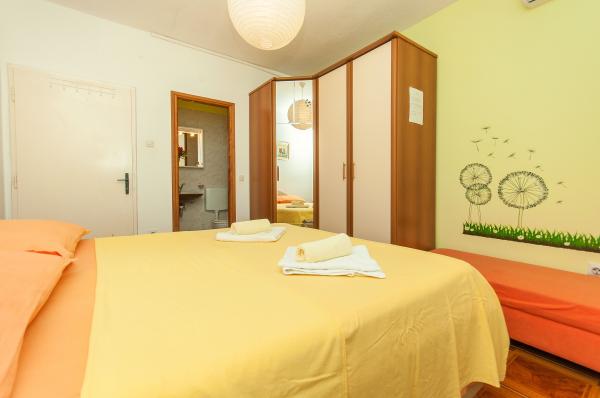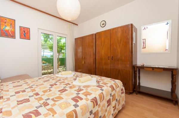 Gli appartamenti sono situati in un piccolo villaggio tranquillo, ideale per vacanze familiari e ricordi indimenticabili. Gli appartamenti sono situati sul lato sud della casa e hanno una vista sul mare. Distanza dal mare e la spiaggia è a 200 m. Il primo appartamento 4 2 è composto da un bagno, una cucina e due camere da letto, entrambe dotate di aria condizionata. La cucina si trova di fronte alla casa in modo da non riscaldare la zona in cui si risiede. Altro appartamento 2 1 è composto da una camera con aria condizionata, bagno e cucina, che si trova anche di fronte alla casa. Sul lato sud della casa è un grande giardino sotto una vite che forma una tonalità naturale, con la possibilità di barbecue. Il parcheggio gratuito è disponibile in loco. L'ingresso è comune. Le camere sono situate sul lato sud della casa, una toilette per appartamento 4 2 si trova dall'altra parte della stanza nel corridoio. Wi-Fi è disponibile in tutta la struttura.