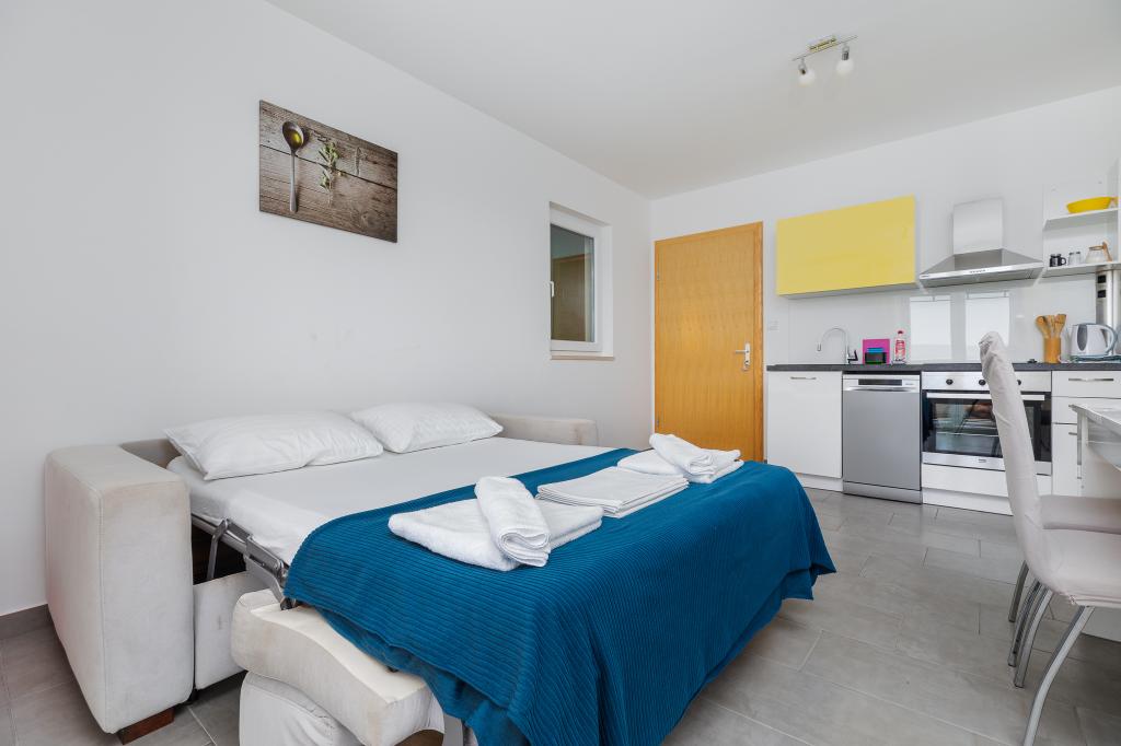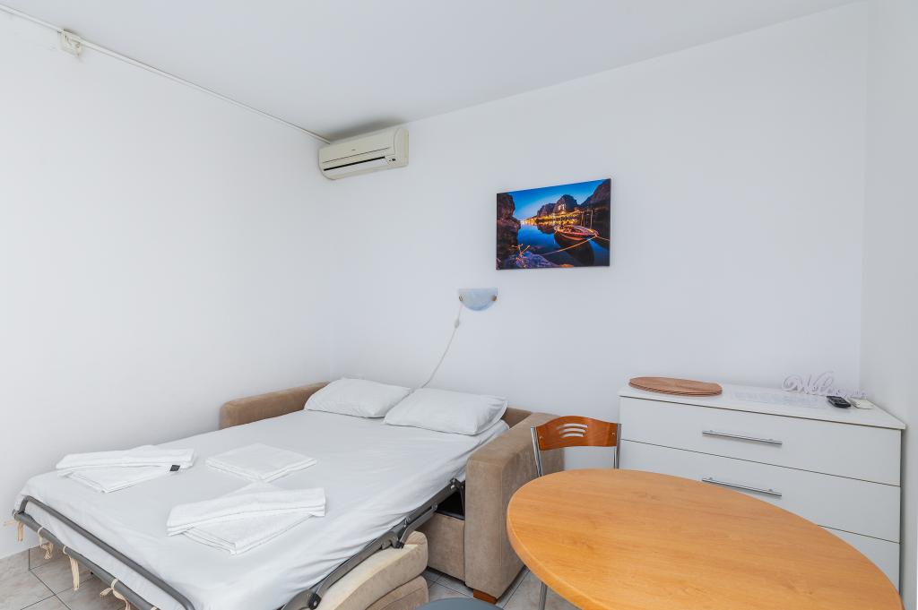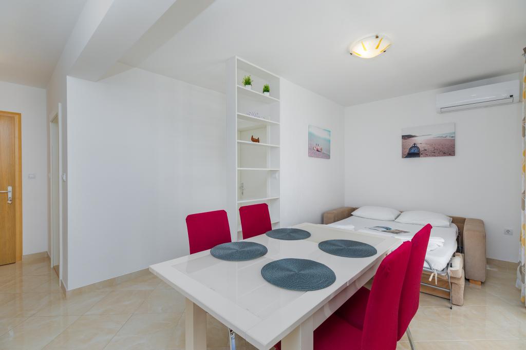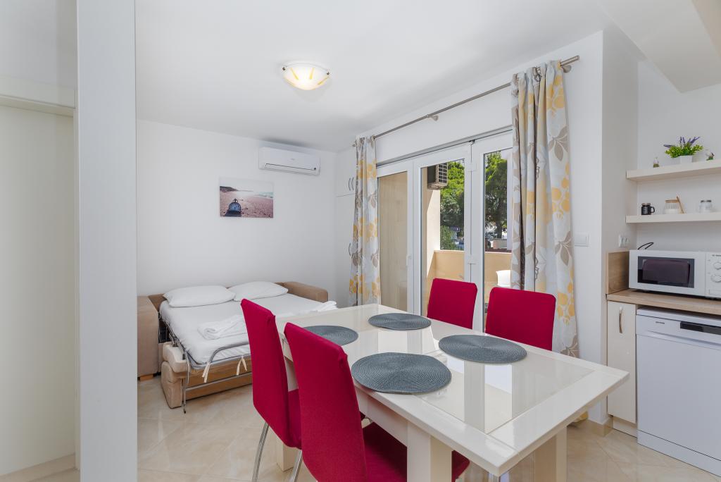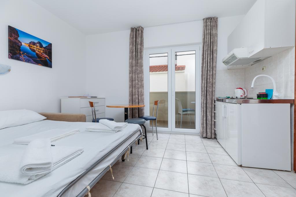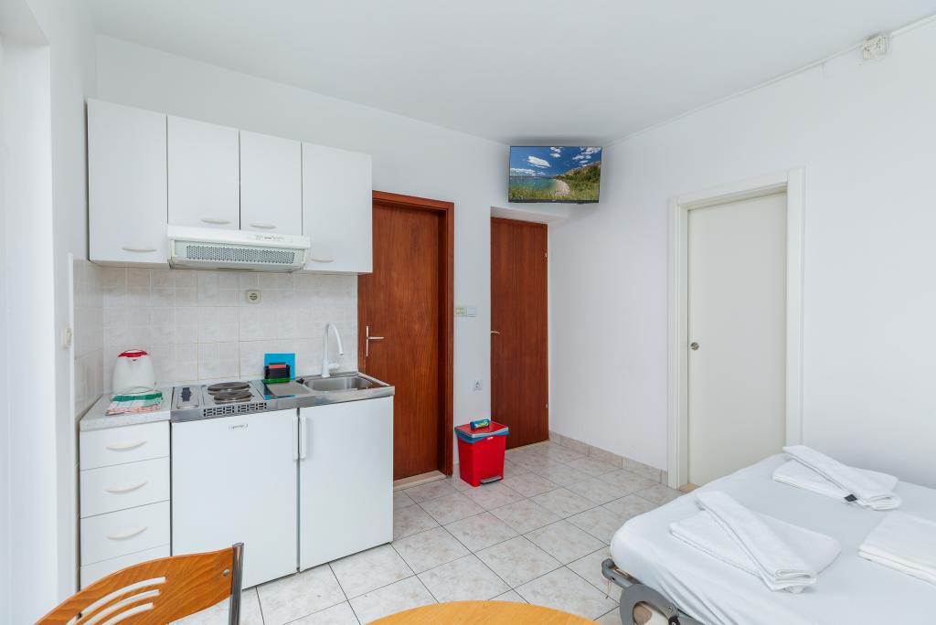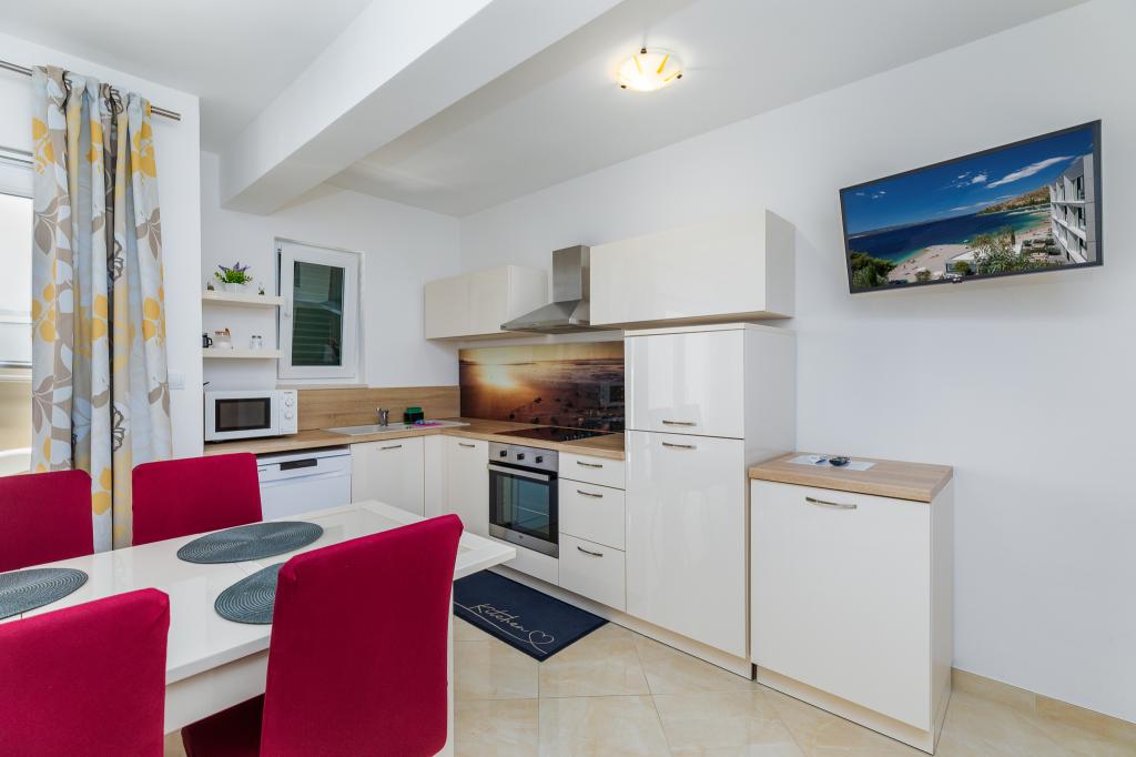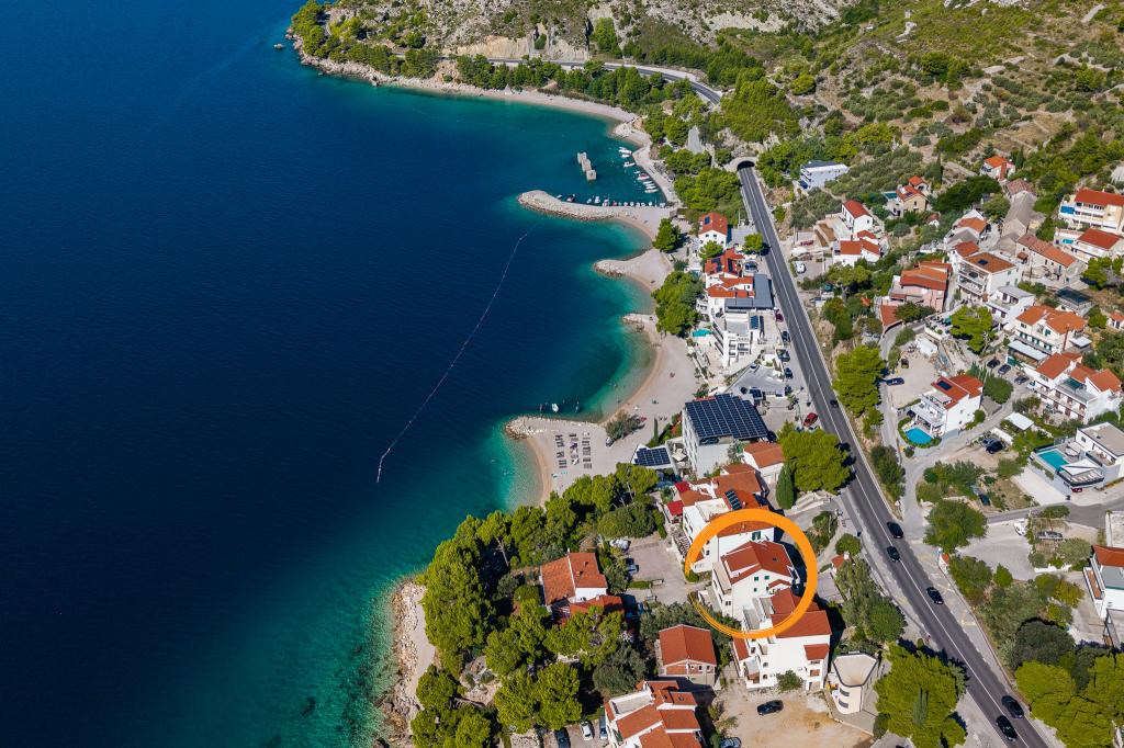 Benvenuti agli Appartamenti Bosiljka a Medića – una piccola oasi dalmata di pace tra Omiš e Makarska. A soli 50 metri dalle spiagge di ciottoli e dal mare cristallino, sarete accolti da padroni di casa che ricevono gli ospiti come se fossero di famiglia. L’accesso privato al mare e il parcheggio gratuito accanto alla casa rendono la vacanza spensierata fin dal primo minuto. Sulle terrazze e sui balconi si diffonde il profumo del mare e dei pini, mentre lo sguardo si perde nell’azzurro. Basta portare un buon libro… e un sorriso. La posizione è il punto di partenza ideale per escursioni: Omiš (15–20 min), Spalato e Trogir per cultura e passeggiate, Makarska per il suo vivace lungomare, il fiume Cetina per il rafting e il Biokovo Skywalk per panorami indimenticabili. Nelle vicinanze troverete negozio, ufficio postale, banco di frutta, ristorantini e caffè – tutto “a portata di sandalo”.