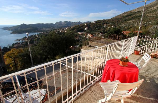Appartamento Nany è stato recentemente ristrutturato e appartamento completamente arredato per ospitare da 4 a 6 persone. Situato in una posizione tranquilla su una collina con una vista mozzafiato sulla baia e la parrocchia mare. L'appartamento ha una grande cucina completamente attrezzata e un ampio soggiorno con zona pranzo. Letto supplementare per 2 persone, situato nel salotto. L'appartamento dispone di due camere da letto, una con letto matrimoniale e l'altra con due letti singoli che possono essere uniti insieme una grande. Il bagno è dotato di vasca da bagno, lavatrice, asciugacapelli e altre necessità. Il balcone corre lungo tutta la casa, due camere da letto e un soggiorno con balcone. Sul balcone del salotto sedie e barbecue. L'intero appartamento è dotato di aria condizionata. Internet wireless è disponibile in tutto l'appartamento. Parcheggio privato per diverse auto di fronte l'appartamento. Mill Center e la spiaggia sono a 10 minuti a piedi. L'aeroporto di Dubrovnik dista 10 km, e la fermata dell'autobus è a 250 metri di distanza. Dubrovnik dista 10 km da casa.