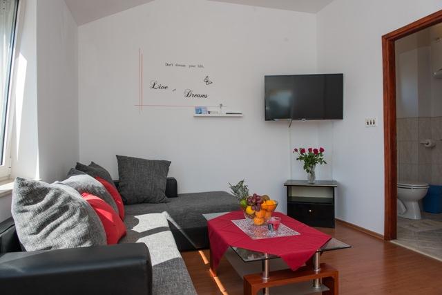 Gli appartamenti Fila sono composti da 6 unità, di cui 4 bilocali e due monolocali. Gli appartamenti si trovano in una posizione tranquilla, a circa 30 metri dalla spiaggia di Mulo-Vrsi e a 250 metri dal centro di Mulo-Vrsi, dove si trovano numerosi ristoranti, negozi di souvenir e altri negozi. Nelle immediate vicinanze, a circa 50 metri di distanza, si trovano due bar e un fast food. La spiaggia di Mulo-Vrsi offre diverse attività sportive come kitesurf, windsurf, noleggio barche, ombrelloni e lettini.