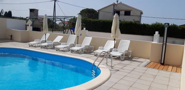 Gli appartamenti sono situati a Vrsi-Mulo, vicino alla città di Nin. Vrsi è circondato da 35 km di costa e ha varie spiagge per tutti i gusti come pietra, sabbia, ghiaia. La spiaggia più vicina è di ghiaia, adatta ai bambini piccoli. Il negozio è a 80 metri dall'appartamento e il ristorante è a 100 metri. Ci sono molti bar, ristoranti e taverne a Vrsima. Hai la possibilità di noleggiare una barca, jet-ski, pedalò e gite in barca. Gli appartamenti dispongono di un parcheggio, una griglia per prendere il sole, un parco giochi per bambini, un trampolino e un tavolo da ping pong. Il cortile è recintato e sicuro per i bambini. Le dimensioni della piscina sono 8x4, 2m e 1,5m di profondità. Gli appartamenti sono dotati di aria condizionata, WI-FI, forno a microonde, bollitore elettrico, tv satellitare, terrazza. E se ne hai bisogno, siamo a tua disposizione.