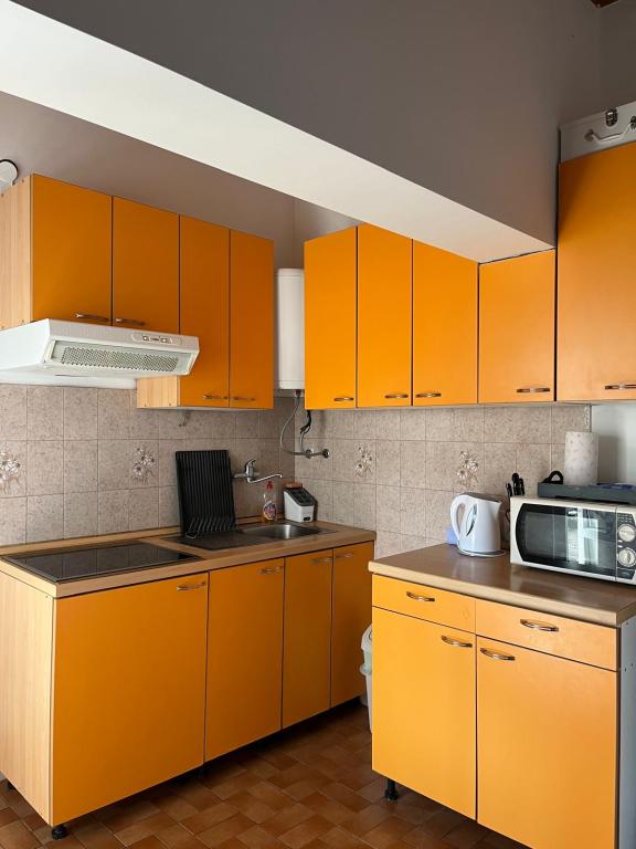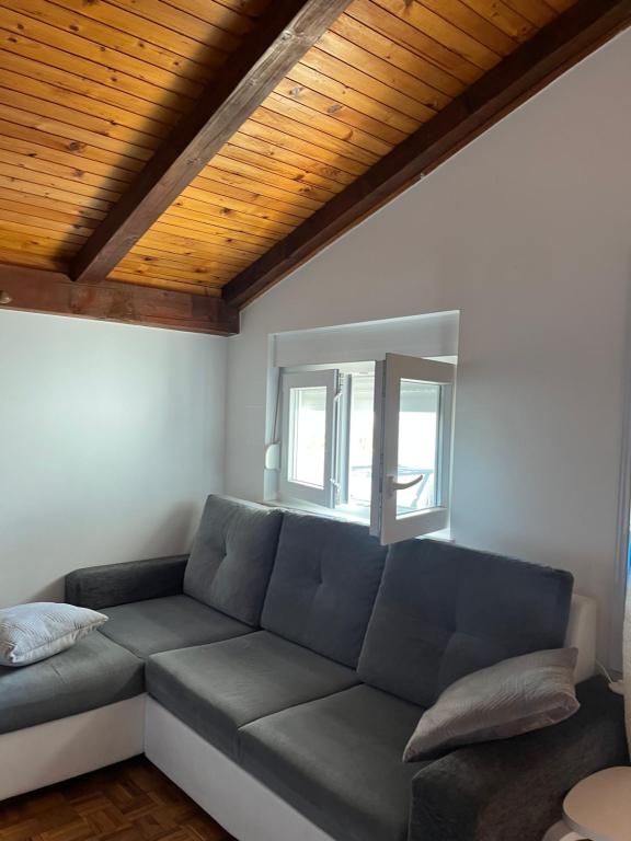 Grazioso appartamento con una grande terrazza vista mare. La distanza dal mare è senza dubbio un vantaggio (attraverso la strada e direttamente in spiaggia). Sulla terrazza ci sono le sedie a sdraio, un'altalena e si può ammirare il tramonto. Camera con ampio frigorifero, aria condizionata, lavastoviglie.