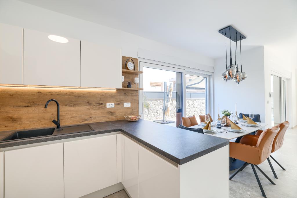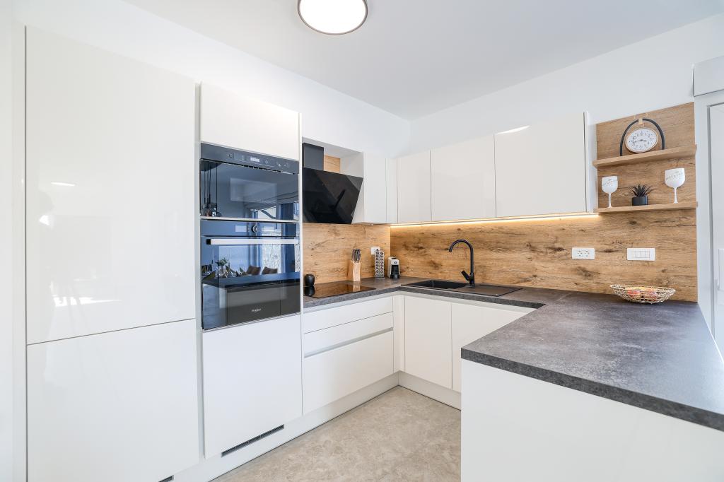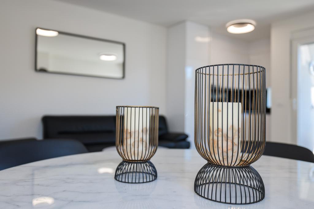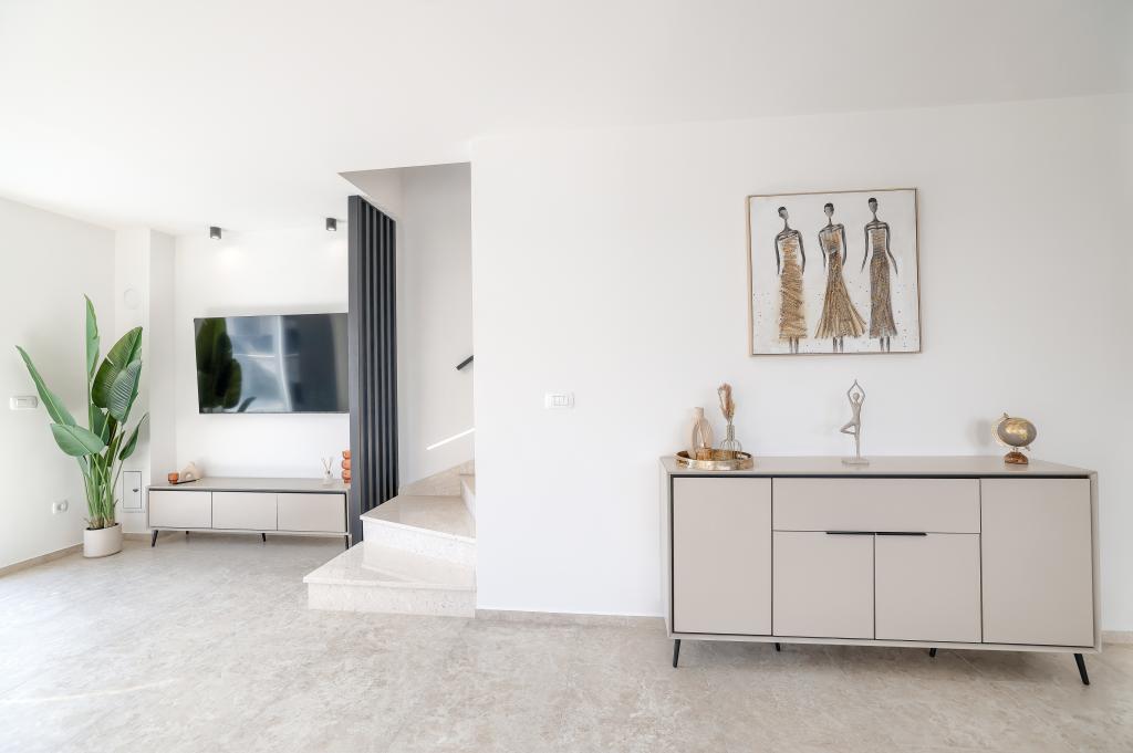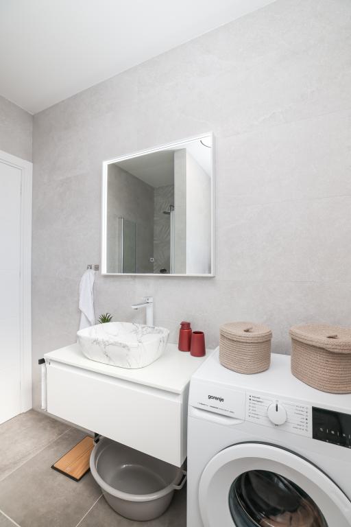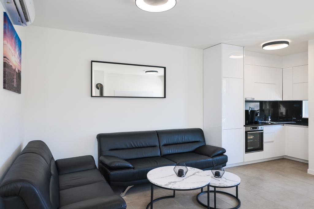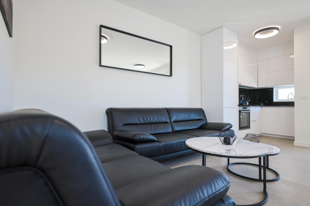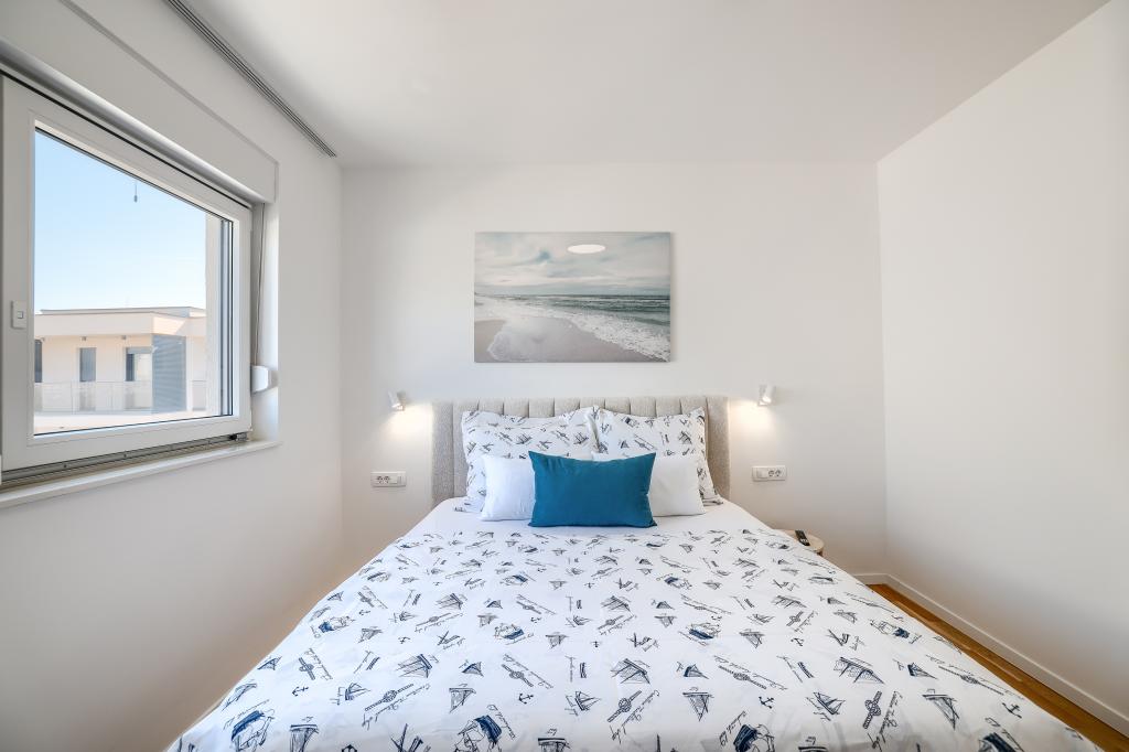 Appartamento trilocale moderno e completamente arredato in una zona tranquilla e silenziosa del villaggio di Vrsi. La struttura si trova a 800 metri dal mare, dispone di 3 camere da letto dotate di aria condizionata e tv, due bagni, un bellissimo terrazzo con vasca idromassaggio, tavolo da pranzo e lettini prendisole. La cucina è completamente attrezzata e nell'area comune sono disponibili un'altra TV e un condizionatore d'aria.