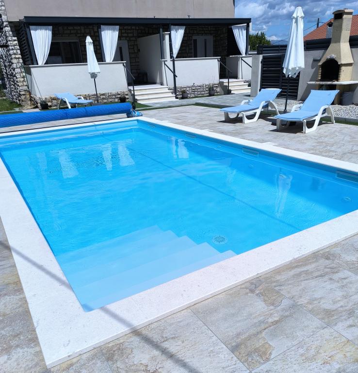 Piscina riscaldata (chiusa dal 15.10.2025 al 1.5.2026) Benvenuti al Royal Place Apartments, appartamenti situati nell'incantevole città reale di Nin, a soli 16 km dalla storica città di Zara. Offriamo due lussuosi appartamenti. Uno con una camera da letto (PROSSIMAMENTE disponibile nel 2026) e uno con due camere da letto al piano terra, in una posizione tranquilla, a soli 200 metri dal pittoresco lungomare, dai ristoranti locali e dal centro città. La spiaggia dista 900 metri. L'ampio piano dell'edificio comprende un tranquillo cortile recintato ricco di rigogliose piante mediterranee. Inoltre, sono presenti una piscina di acqua salata riscaldata, un'area solarium con sedie a sdraio e ombrelloni, una doccia esterna e un barbecue. Il piano superiore dell'edificio non è accessibile.