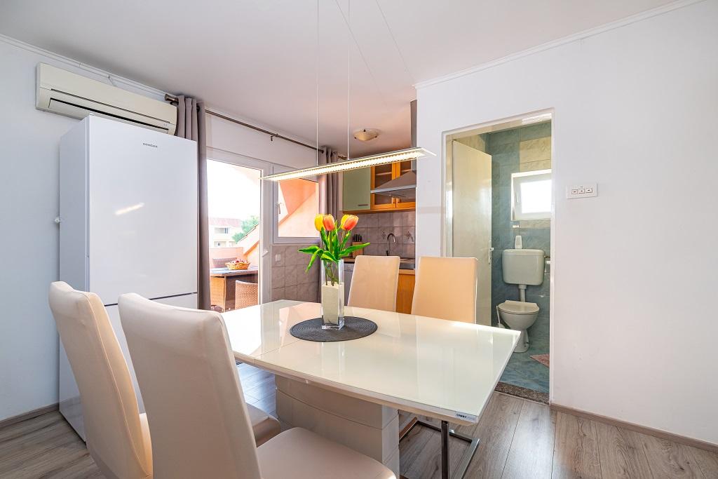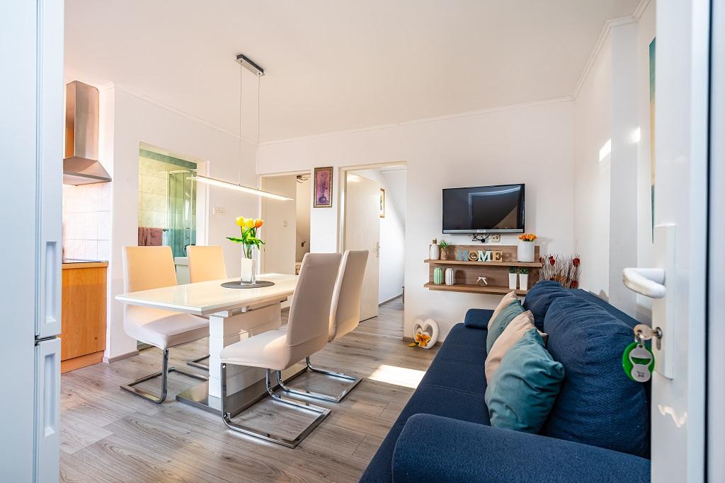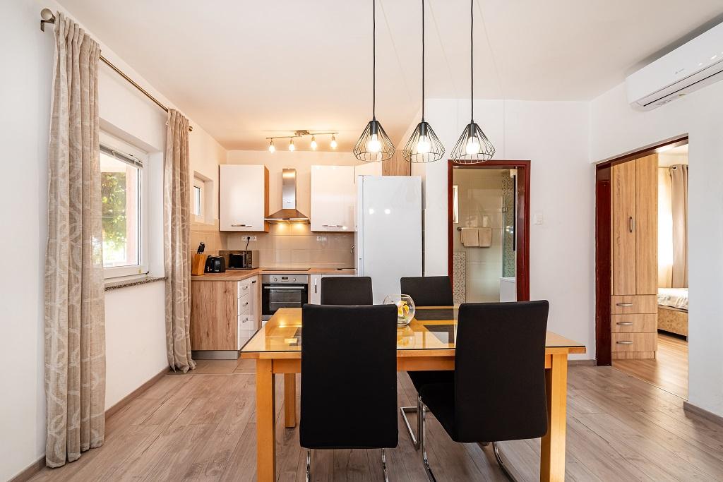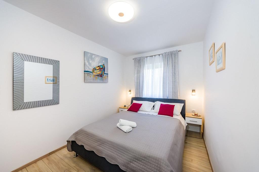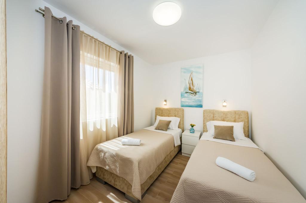 I nostri moderni appartamenti si trovano a Nin, una città costiera nella parte meridionale della baia di Nin, sulla penisola di Ždrijac, 17 km a nord di Zara. È la più antica città reale della Croazia, vicino alla famosa spiaggia sabbiosa di Ždrijac. Nin non è solo una città storica. Insieme ai suoi dintorni, offre anche condizioni favorevoli per il riposo e lo svago. Intorno a Nin ci sono diverse lunghe lagune sabbiose con spiagge sabbiose, lontane dalla folla, e una zona industriale, con eccellenti condizioni microclimatiche. Gli appartamenti sono situati in una zona splendida e molto tranquilla, a meno di cinque minuti a piedi dalla spiaggia e dal mare Adriatico. La casa si sviluppa su due piani. I proprietari vivono al piano terra e due appartamenti al primo piano e due al secondo. La casa è indipendente e la proprietà è recintata, quindi è molto adatta ai bambini. Dispone inoltre di parcheggio per cinque auto e di un barbecue in giardino. Gli appartamenti non sono adatti alle sedie a rotelle. È disponibile la connessione internet wireless. La spiaggia e il mare distano solo 100 metri dagli appartamenti, mentre altri servizi sono a 600 metri.