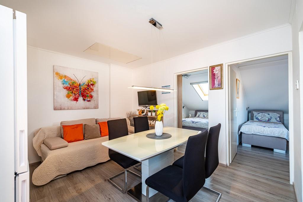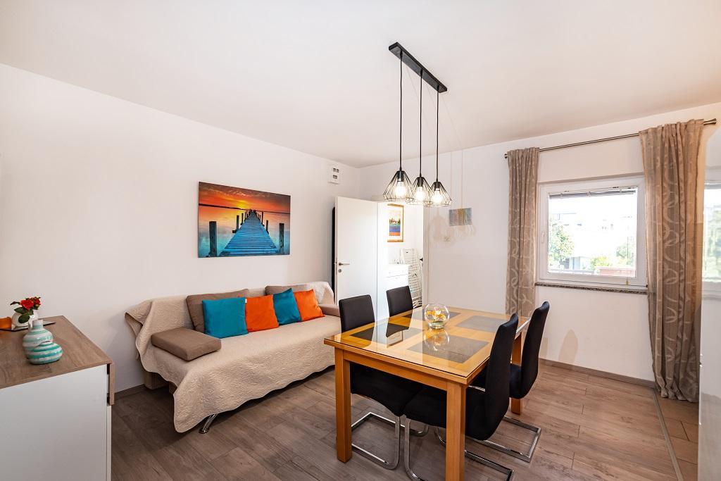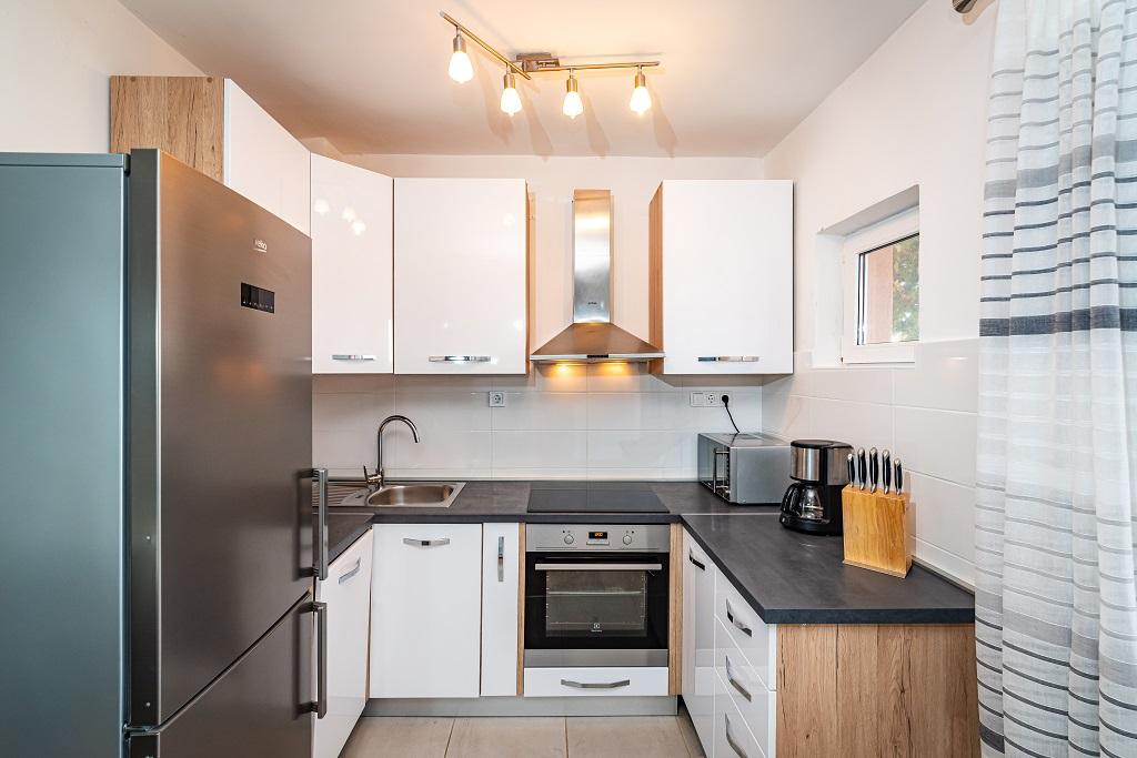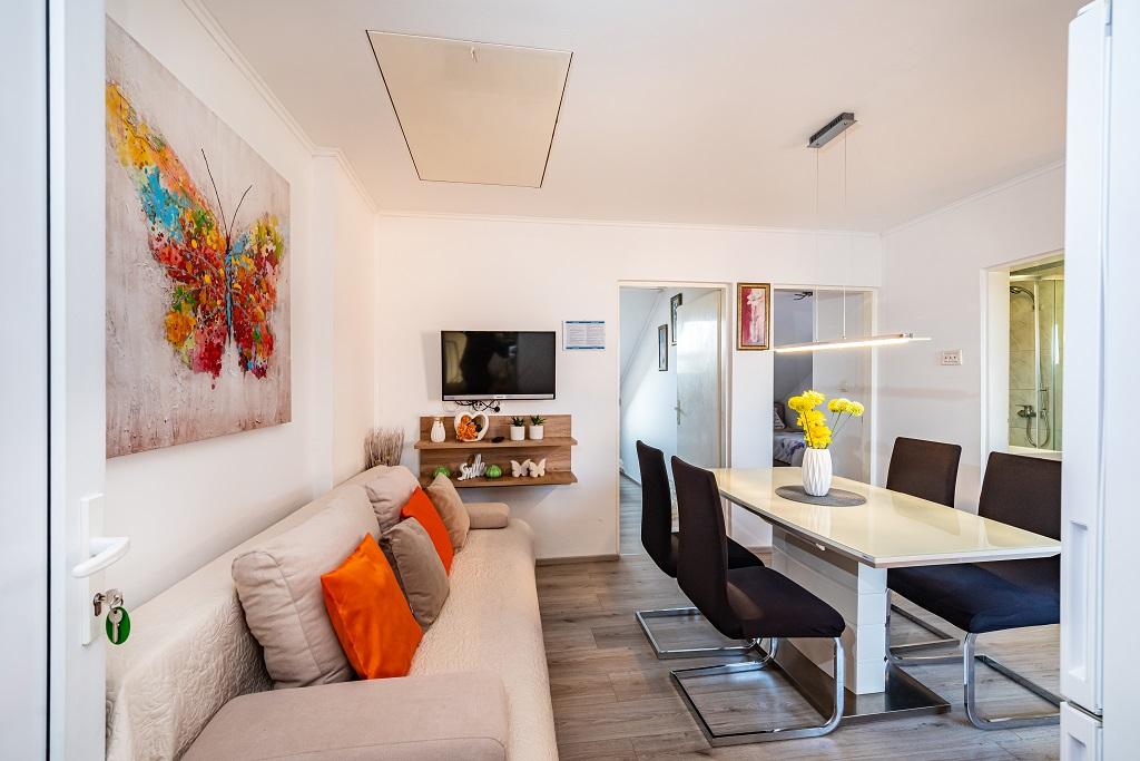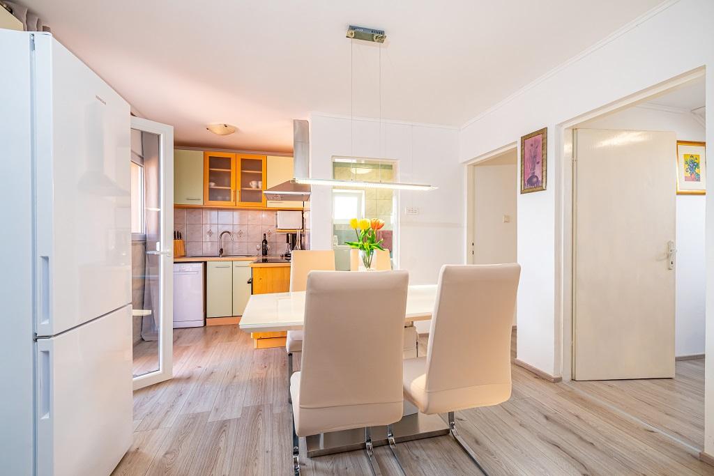 I nostri moderni appartamenti si trovano a Nin, una città costiera nella parte meridionale della baia di Nin, sulla penisola di Ždrijac, 17 km a nord di Zara. È la più antica città reale della Croazia, vicino alla famosa spiaggia sabbiosa di Ždrijac. Nin non è solo una città storica. Insieme ai suoi dintorni, offre anche condizioni favorevoli per il riposo e lo svago. Intorno a Nin ci sono diverse lunghe lagune sabbiose con spiagge sabbiose, lontane dalla folla, e una zona industriale, con eccellenti condizioni microclimatiche. Gli appartamenti sono situati in una zona splendida e molto tranquilla, a meno di cinque minuti a piedi dalla spiaggia e dal mare Adriatico. La casa si sviluppa su due piani. I proprietari vivono al piano terra e due appartamenti al primo piano e due al secondo. La casa è indipendente e la proprietà è recintata, quindi è molto adatta ai bambini. Dispone inoltre di parcheggio per cinque auto e di un barbecue in giardino. Gli appartamenti non sono adatti alle sedie a rotelle. È disponibile la connessione internet wireless. La spiaggia e il mare distano solo 100 metri dagli appartamenti, mentre altri servizi sono a 600 metri.