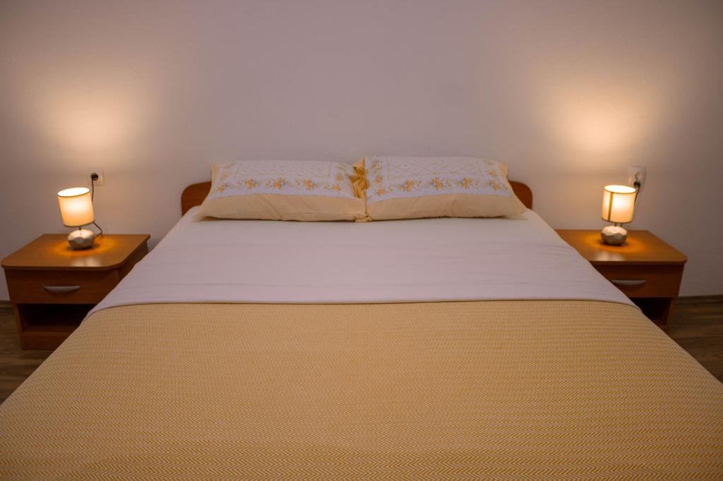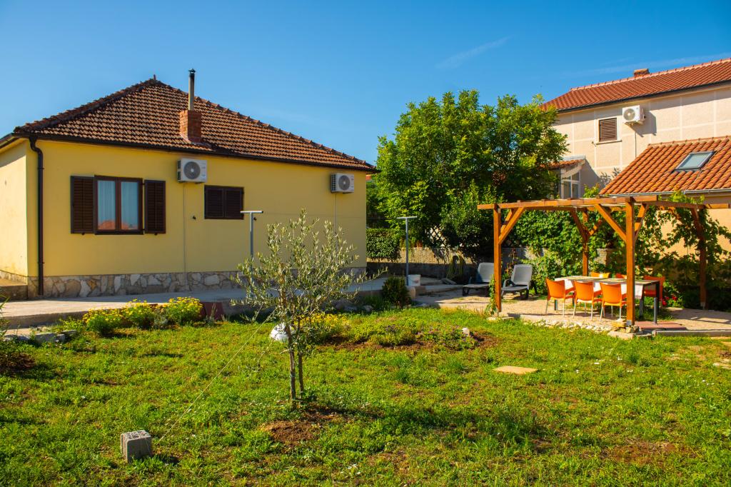 La casa vacanze Lilli si trova a Vrsi-Mulo, a 200 metri dal mare e dalla spiaggia. Questa casa con tre camere da letto è la destinazione ideale per le vacanze di tutta la famiglia. Dispone di una cucina modernamente attrezzata e di due bagni con vasca, mentre l'ampio giardino è perfetto per socializzare attorno alla griglia. La posizione è tranquilla e nelle immediate vicinanze si trovano numerosi negozi, ristoranti e bar, oltre a un mercato con frutta e verdura fresca e un panificio. Inoltre, la storica città di Nin è a soli dieci minuti di auto, mentre Zara è a circa 30 minuti. La spiaggia, a due minuti a piedi, è splendidamente decorata con ciottoli, e a dieci minuti di auto si trovano le spiagge sabbiose di Vrsi o Nin.