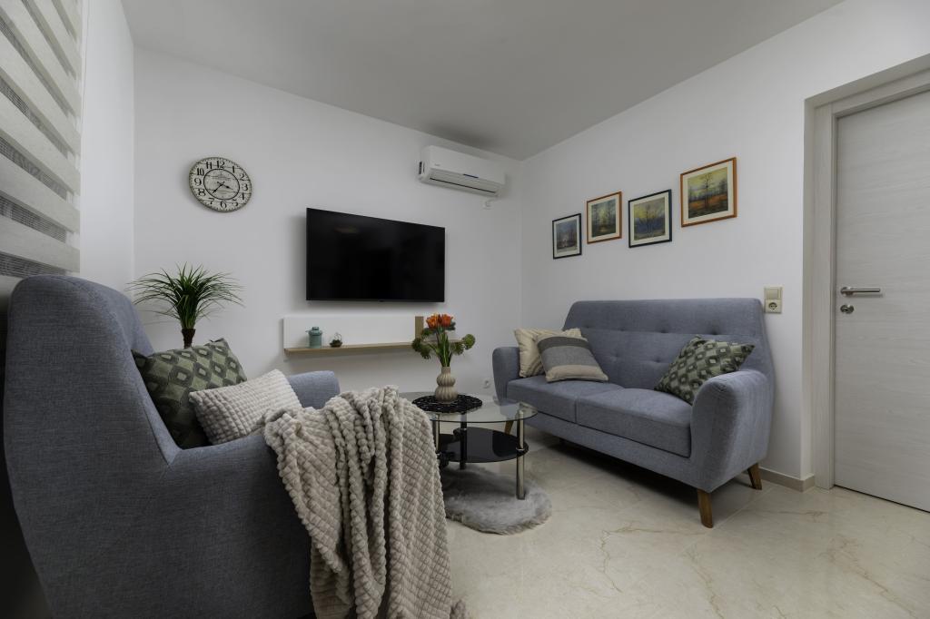 Situato in una zona tranquilla di Njivice, sull'isola di Krk, questo appartamento al piano terra, recentemente ristrutturato, offre la combinazione ideale di comfort e rilassante atmosfera mediterranea. È perfetto per famiglie o piccoli gruppi che desiderano godersi una vacanza al mare in pace e privacy. L'appartamento dispone di due ampie camere da letto, un bagno moderno e un ulteriore WC separato. Una delle camere da letto ha una piccola stanza con un letto aggiuntivo. Una cucina completamente attrezzata e un accogliente soggiorno offrono tutto il necessario per un soggiorno rilassante. Un vantaggio particolare è la terrazza coperta circondata dal verde, ideale per il caffè del mattino, una cena in famiglia o un momento di relax serale. Gli ospiti hanno a disposizione aria condizionata, Wi-Fi, parcheggio privato, doccia esterna e barbecue. La spiaggia dista solo 600 metri e nelle vicinanze si trovano ristoranti, negozi e tutti i servizi necessari per una vacanza spensierata. Godetevi il mare cristallino, le passeggiate lungo la costa e l'autentica atmosfera isolana che offre il perfetto equilibrio tra relax e attività.