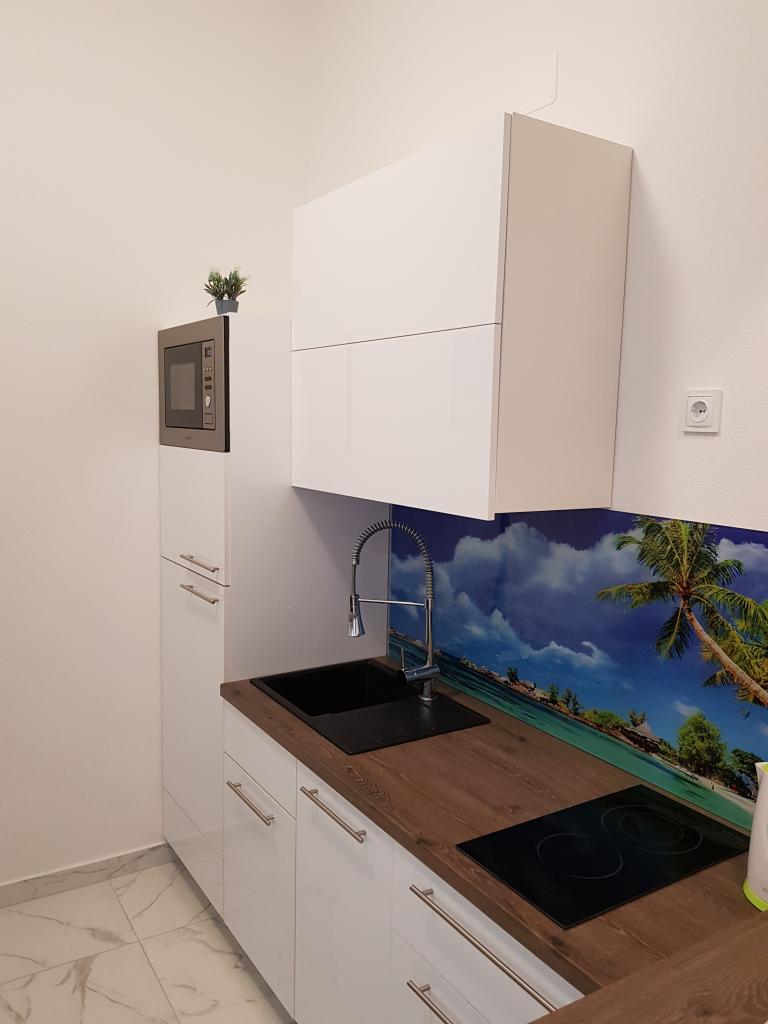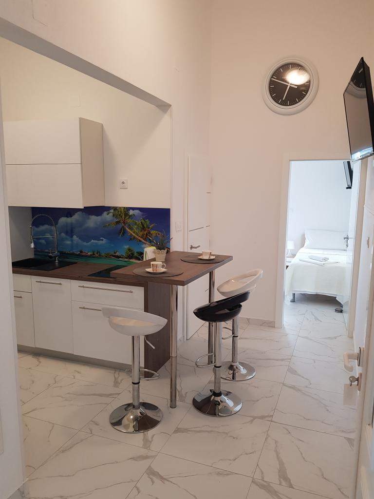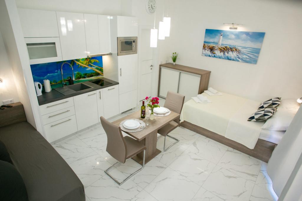 Appartamenti modernamente arredati con cucina completamente attrezzata, bollitore, tostapane, forno a microonde, macchina per il caffè, ferro da stiro, cassaforte e asciugacapelli.