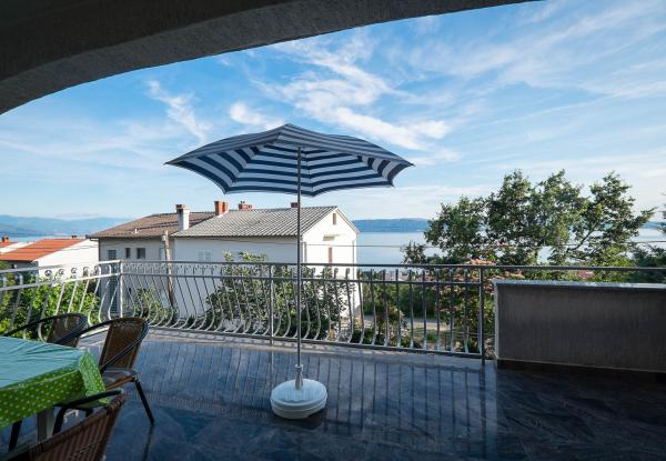 Due camere da letto con una grande terrazza, in una zona tranquilla di Novi Vinodolski, a meno di due ore di auto da Zagabria. Barbecue negoziato. Nota: Appartamento 1 e 2 Appartamento in grado di connettersi e condividere. Ideale per due famiglie!
