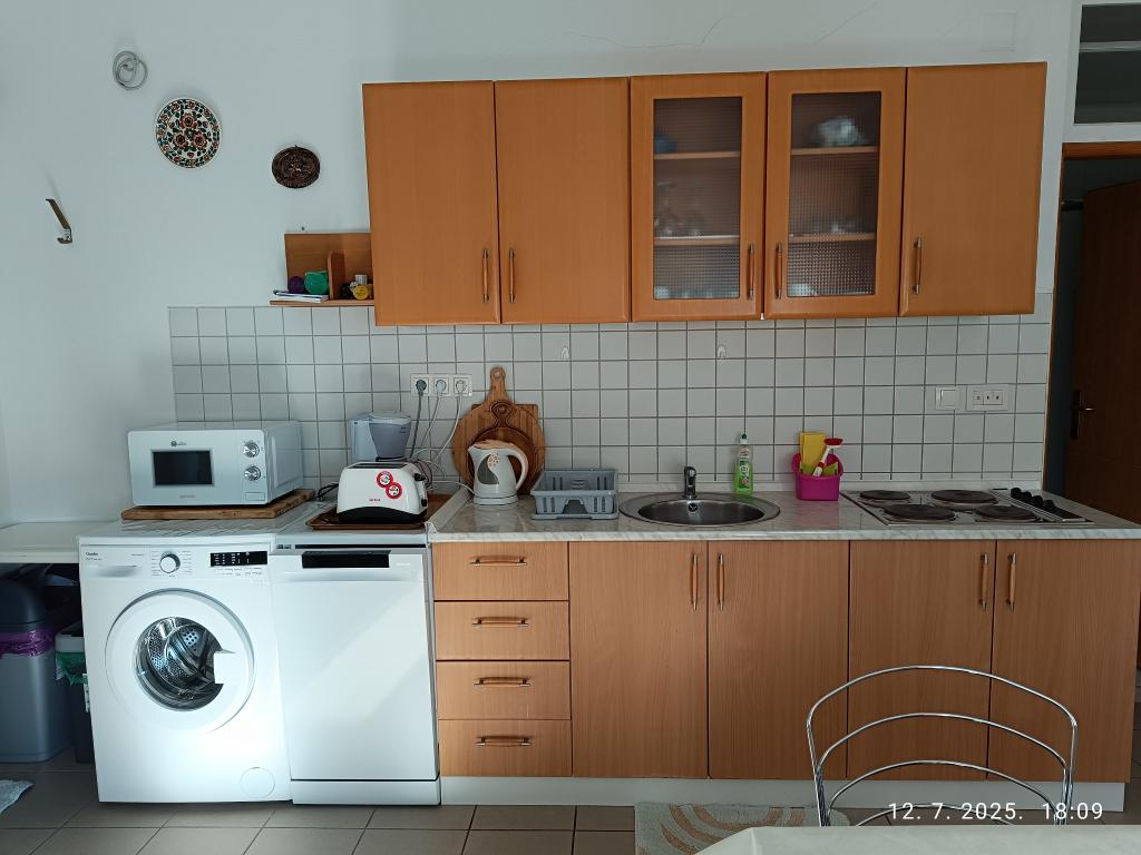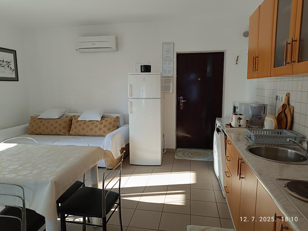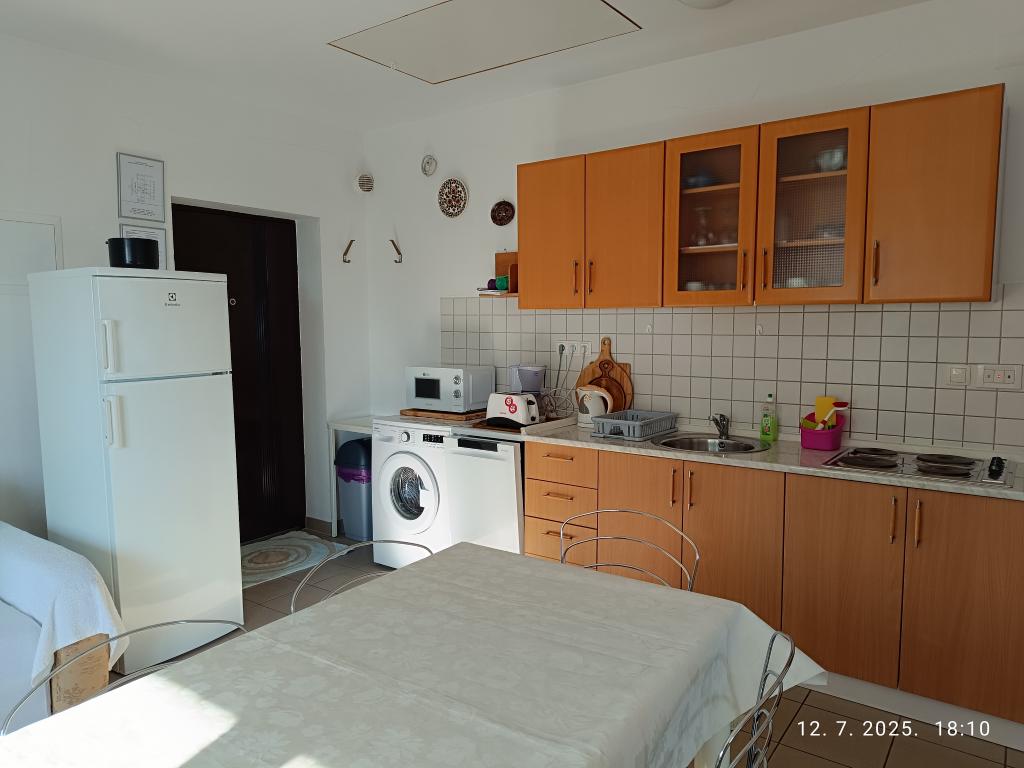 Due appartamenti più grandi con due camere da letto (60 m²) si trovano al 2° piano della casa con una splendida vista mare, mentre un appartamento più piccolo con una camera da letto (45 m²) si trova in una casa in pietra (rustica) separata accanto alla casa principale, con la quale condivide un giardino e un cortile. Il parcheggio è gratuito. Un barbecue con terrazza in giardino è condiviso da tutti gli ospiti. La distanza dal mare è di circa 250 m in discesa, dove si trova un lungomare con ristoranti e diversi tipi di spiagge. La distanza dal centro è di circa 1,5 km, lungo il lungomare.