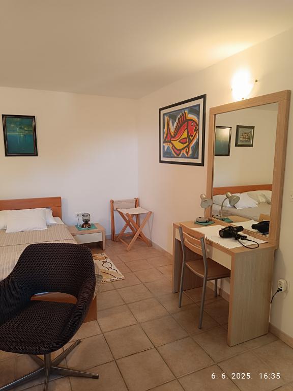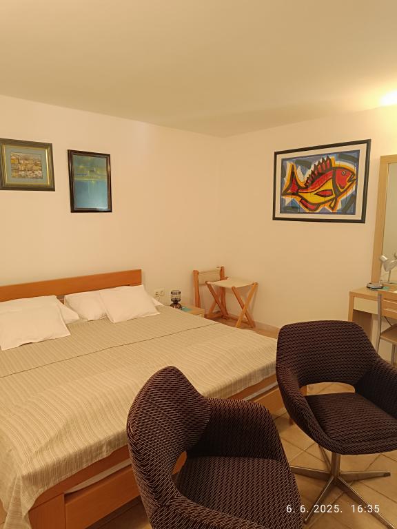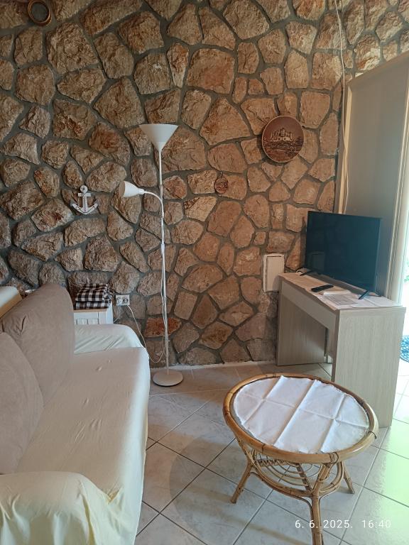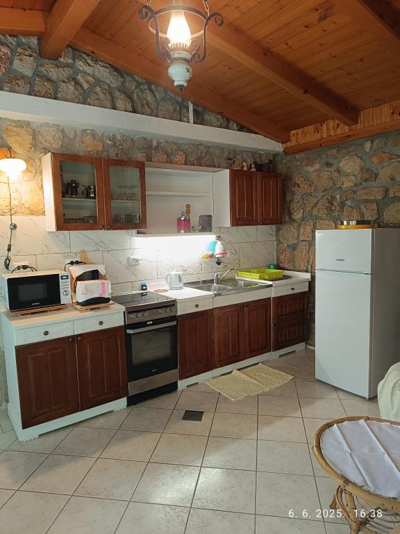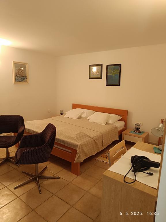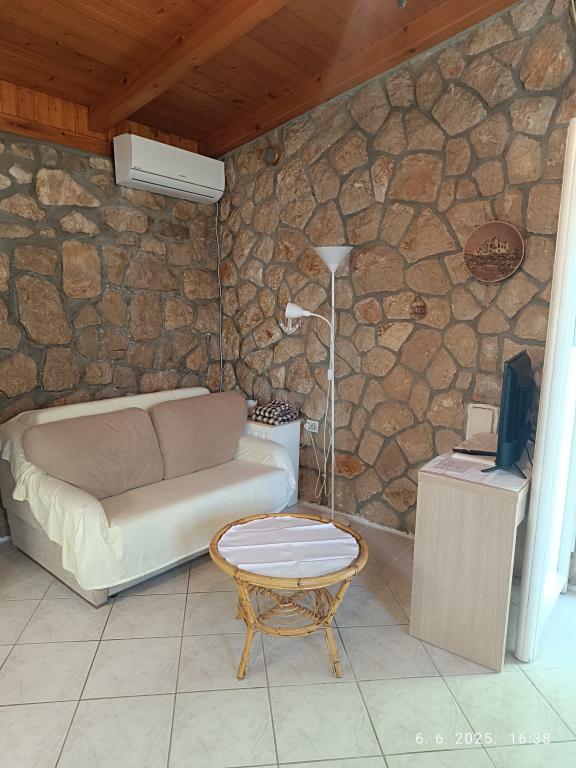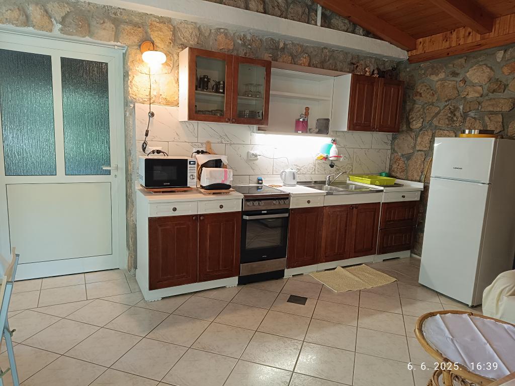 Due bilocali più grandi (60 m2) si trovano al 2° piano della casa con una bellissima vista sul mare, mentre un monolocale più piccolo (45 m2) si trova in una casa in pietra (rustica) separata accanto al la casa principale con la quale condivide giardino e cortile. Parcheggio gratuito fornito. Un barbecue con terrazza nel giardino è condiviso da tutti gli ospiti. La distanza dal mare è di ca. 250m in discesa, dove c'è un lungomare con ristoranti e spiagge di diversa tipologia. La distanza dal centro è di circa 1,5 km, percorrendo la passeggiata in riva al mare.