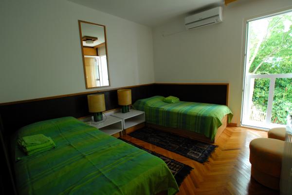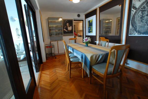 Villa Vaho costruito e decorato alla fine degli anni '60. Il centro di Novi Vinodolski bisogno è di 20 minuti a piedi dal mare. Si trova a 5 minuti dal mare con una splendida vista sull'isola di Krk. La casa ha un giardino anteriore e posteriore, con un sacco di ombra e gli alberi, costruito su due livelli così sono appartamenti situati. L'appartamento superiore dispone di 3 camere da letto, ampio soggiorno con terrazzo, camere con vista sul mare, un bagno con wc e wc separato, cucina e parte della sala da pranzo. Può ospitare 6 persone, lo spazio è climatizzato. C'è una lavastoviglie, internet. porte della cucina si aprono su un patio e barbecue. L'appartamento inferiore è uno spazio aperto per l'uso, con sedie a sdraio, un tavolo da pranzo, un giardino e ombre, con una porta che conduce alla spiaggia. Si compone di una camera da letto e soggiorno dove si può dormire, bagno e cucina. Può ospitare 4 persone, lo spazio è climatizzato. La casa dispone di parcheggio per 2-3 auto, un negozio locale è a 10 minuti a piedi.