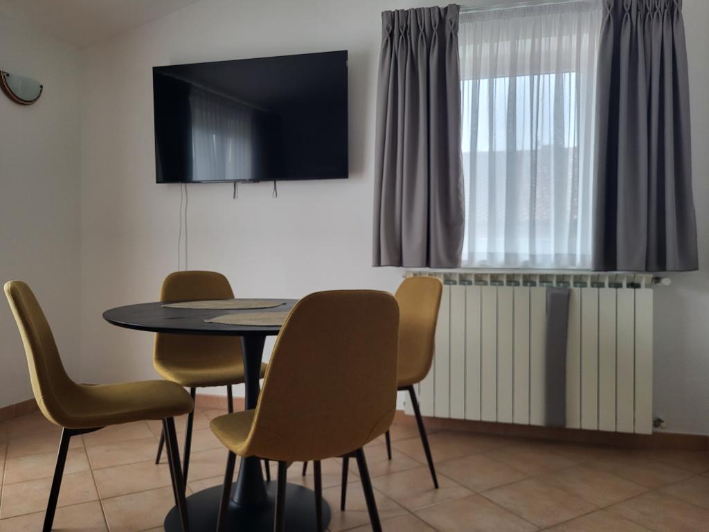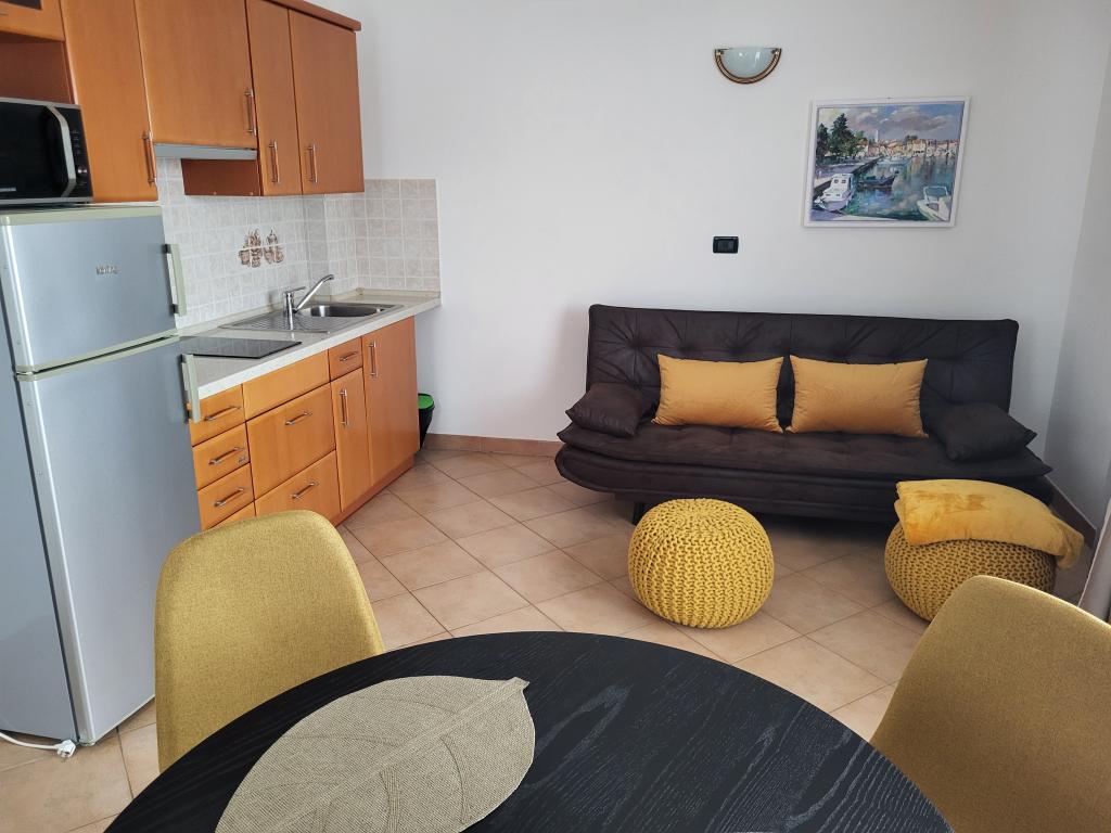 Per garantire un maggiore comfort, affittiamo appartamenti in esclusiva per un massimo di due persone. La casa con due appartamenti è situata in una zona tranquilla di Cittanova. L'accesso all'insediamento è molto semplice, la distanza dalla strada principale è appena sufficiente per non risentire dell'impatto del traffico. Le strade dell'insediamento sono utilizzate solo dalla gente del posto e dagli ospiti, il traffico è praticamente assente. Davanti alla casa c'è abbastanza spazio per parcheggiare. Due appartamenti nella casa garantiscono un elevato standard di riposo e tanta tranquillità e cordialità. Sono supportati durante tutto l'anno. Ogni appartamento ha una superficie di 40 m² e un ingresso indipendente. L'appartamento al piano terra ha la sua terrazza, mentre quello al piano superiore ha un balcone. L'appartamento è pensato per due persone. Dispone di una camera da letto separata con letto matrimoniale. La cucina è completamente attrezzata. Gli appartamenti sono dotati di aria condizionata. Gli appartamenti sono dotati di riscaldamento centralizzato e sono quindi adatti agli amanti del ciclismo durante tutto l'anno. Gli animali non sono ammessi.