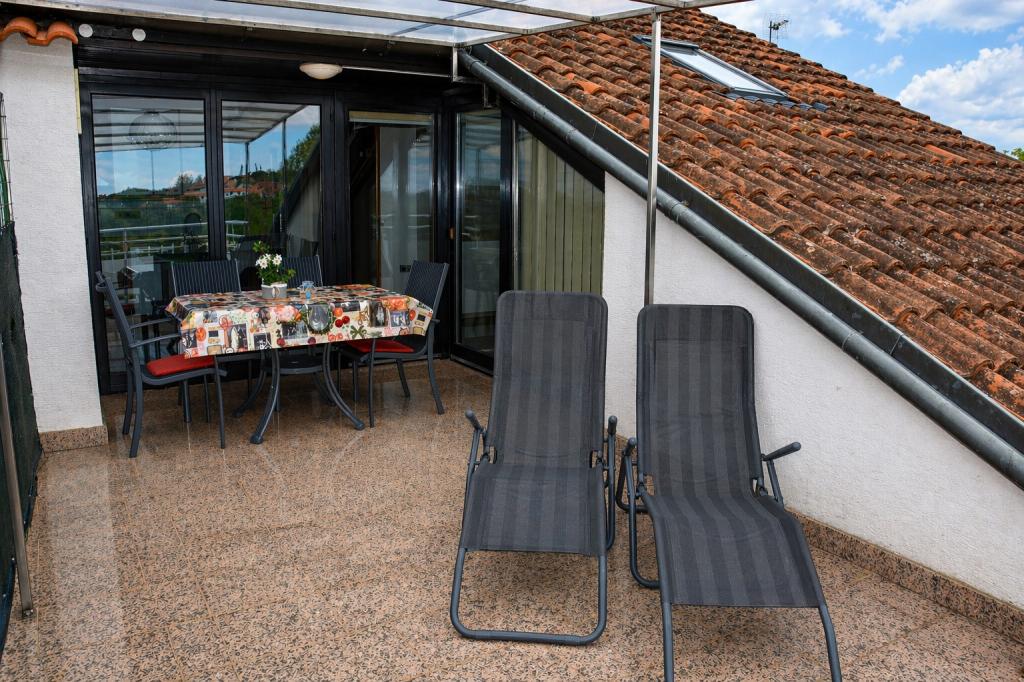 In una posizione tranquilla e senza traffico, si trovano due accoglienti appartamenti, ciascuno in grado di ospitare fino a 4 persone. Immersi nel silenzio e in un'atmosfera rilassante, offrono ai bambini la possibilità di giocare spensieratamente e permettono di godersi una vera vacanza lontano dalla frenesia quotidiana. Un fascino particolare è dato dalla terrazza coperta con una splendida vista sul mare, da cui si possono ammirare tramonti magici ogni sera. Gli appartamenti si trovano al primo e al secondo piano e sono composti da una cucina con soggiorno, una camera da letto separata, un bagno e una terrazza con vista mare. Sono completamente attrezzati per un soggiorno confortevole: la cucina dispone di stoviglie e utensili sufficienti per preparare i pasti. Gli ospiti hanno a disposizione aria condizionata, Wi-Fi gratuito, TV, biancheria da letto, asciugamani e asciugacapelli. È inoltre disponibile un posto auto per gli ospiti.