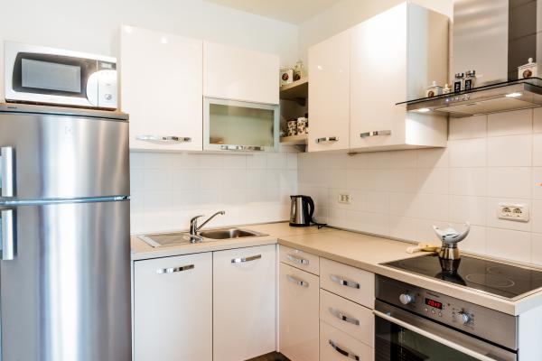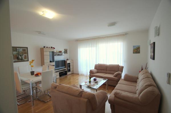 Moderno appartamento arredato situato in un sobborgo tranquillo, vicino al mare. L'appartamento è composto da 2 camere da letto, cucina, bagno, soggiorno, sala da pranzo (con 2 letti aggiunti) e un balcone con vista mare. L'appartamento dispone di un posto auto recintato. L'edificio che ospita l'applicazione ha un bel cortile e la parte anteriore dell'edificio è polivalente da tennis e un piccolo parco per una sala giochi e bambini.