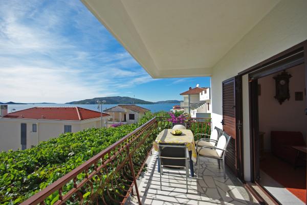 Casa privata situata nella parte sud-occidentale dell'isola di Ciovo in una zona tranquilla. Distanza dalla spiaggia più vicina 50 m Spiaggia di ghiaia adatta per i bambini piccoli 300 m di distanza.Gli appartamenti sono modernamente attrezzati, tra cui aria condizionata, lavatrice e connessione Wi-Fi gratuita. Entrambi gli appartamenti dispongono di ampi balconi con una splendida vista. Il negozio di alimentari e il ristorante più vicini distano 5 minuti in auto
