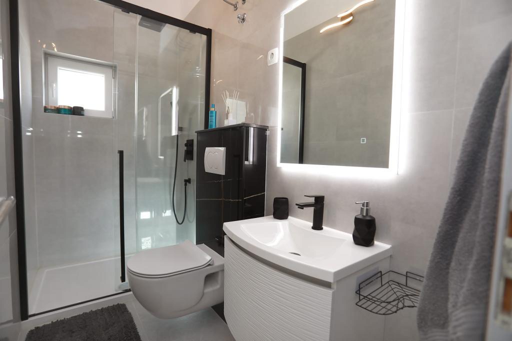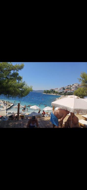 L'appartamento Katija si trova a Okrug Gornji, a soli 30 metri dalla riva del mare. Il nostro appartamento offre una combinazione perfetta di pace, comfort e un'incantevole vista sulle numerose isole della Dalmazia. È una destinazione ideale per famiglie, coppie e chiunque cerchi relax in un ambiente naturale, lontano dalla folla, ma vicino a tutti i servizi necessari. Godetevi il vostro caffè mattutino o il tramonto serale sulla vostra terrazza privata, dove vi attende una vista mozzafiato. A soli 5 minuti a piedi si trova una spiaggia ben tenuta, adatta ai bambini, con acque poco profonde e ombra naturale: ideale per una vacanza in famiglia. Caratteristiche principali dell'appartamento: vicinanza al mare, terrazza con splendida vista, cucina completamente attrezzata con zona pranzo e soggiorno, due camere da letto con letti matrimoniali, bagno con doccia e servizi di base, Wi-Fi gratuito, aria condizionata, TV, parcheggio gratuito. Che stiate pianificando una vacanza attiva o vogliate semplicemente godervi il sole e il mare, il nostro appartamento nel quartiere Gornji offre tutto il necessario per un soggiorno indimenticabile.