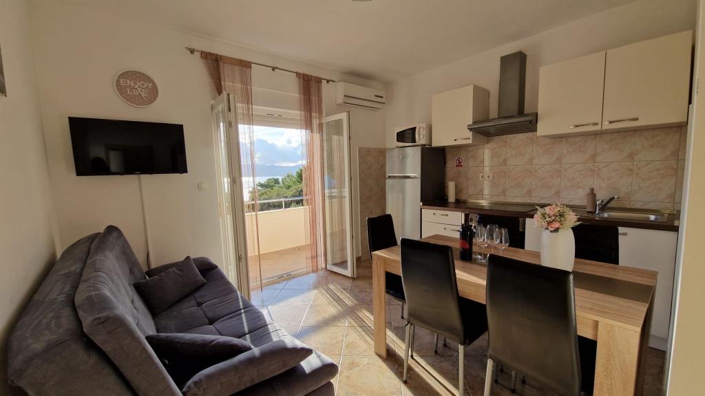 Gli appartamenti MARTA si trovano in un bellissimo posto Stanici a 4 km da Omis. Gli appartamenti disponibili si trovano al piano terra e al 1° piano di una villa bifamiliare. Il proprietario della struttura è al vostro servizio durante il vostro soggiorno. Gli appartamenti hanno una vista sul mare e sulla vicina isola di Brac. Gli appartamenti sono un luogo ideale per famiglie con bambini. Il parcheggio è previsto nel cortile. Tutti gli appartamenti sono climatizzati. Non accettiamo animali negli appartamenti. Per coloro che desiderano una vacanza attiva a 4 km da Omis, vengono offerte varie attività rafting, zipline, alpinismo, gite in barca alle vicine isole di Hvar, Brac. Più di 100 gradini portano dall'edificio alla spiaggia.
