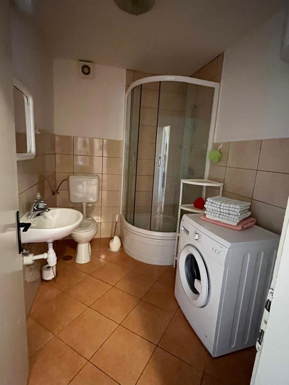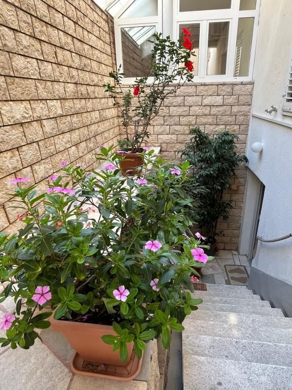 Gli appartamenti Ruža si trovano al 1° e al 3° piano di una casa familiare. La casa si trova a 10 min. a piedi dal centro città e dalla grande spiaggia cittadina. Nelle vicinanze si trovano supermercati, ristoranti, bar, una banca e un distributore di benzina. L'appartamento A4 2, di 70 metri quadrati, è dotato di due camere da letto con letti matrimoniali, il soggiorno ha 2 letti supplementari e una TV, e il bagno ha una lavatrice. L'appartamento ha un balcone con una splendida vista sul mare, sulla città di Omiš e sull'isola di Brač. L'appartamento A2 2, di 70 m², è composto da 1 ampia stanza con letto matrimoniale, la cucina e il soggiorno si trovano in un'unica superficie di 30 m², e il soggiorno ha 2 letti supplementari e una TV. L'appartamento ha un'ampia terrazza con una bellissima vista.