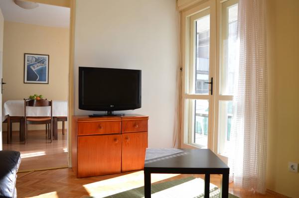 Apartment Nera si trova in una zona tranquilla della città di Omis, all'ombra di un piccolo parco cittadino. La struttura si trova a 200 m dal centro e ristoranti colorati, vecchia osteria, la spiaggia di sabbia e il punto di partenza per escursioni .. Appartamento completamente arredato situato al primo piano del palazzo residenziale con parcheggio gratuito. Contiene due camere da letto con letti matrimoniali, una spaziosa cucina, soggiorno (può essere convertito in una camera da letto) e due balconi. L'uso di aria condizionata e connessione internet inclusa nel prezzo.