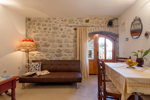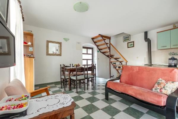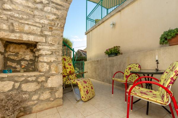 Casale in pietra costruita nel 1892 completamente rinnovato e adattato alla vita moderna. Si trova a 357 m sul livello del mare. La terrazza offre una vista mozzafiato sul mare e sulle isole. La casa è dotata di quasi tutti gli strumenti per un soggiorno confortevole e piacevole. Ognuno può trovare il proprio angolo accogliente, era su una delle terrazze che è 4 e promatati indimenticabile tramonto. I bambini hanno un angolo della casa per giocare con loro particolarmente felice. Dopo una gita di un giorno a lungo la preparazione dei pasti sul barbecue con del buon vino della Dalmazia diventa serata indimenticabile. Si estende su 3 piani. Al piano che è un soggiorno con cucina completamente attrezzata, sala da pranzo e bagno con doccia. Al primo piano ci sono quattro camere da letto. Al piano terra si trova un bagno con doccia e lavatrice. Al piano terra si trova un appartamento indipendente con cucina, tavolo da pranzo completamente attrezzata e sedie e un bagno con doccia. La camera da letto è separata dalla zona giorno. Di fronte è una piacevole terrazza attrezzata con tavolo e sedie e un amaca.