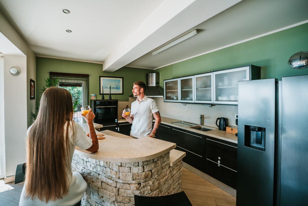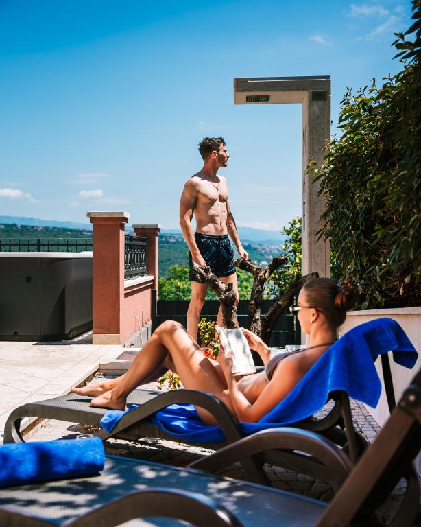 Un piccolo gioiello bello e moderno situato sulla riviera di Opatija. La casa è stata costruita di recente, quindi tutto è quasi come nuovo. Il design degli interni è molto bello ed è stato progettato da mia moglie Alexandra, una designer d'interni. Una delle cose più sorprendenti di questa casa è la vista a 180 gradi dalla terrazza sul Golfo del Quarnero, sulla costa istriana e sulle isole di Krk e Cres. Puramente mozzafiato. Una fotografia non può trasmettere la bellezza del panorama. Le albe e i tramonti sono speciali e le cene in terrazza sono uno dei momenti più belli della giornata. Dormirai come un bambino perché di notte è molto tranquillo e piacevole e di notte arriva una leggera brezza dal mare. Tutte le camere sono dotate di aria condizionata. Da menzionare anche i letti super comodi in tutte le camere, la vasca idromassaggio interna ed esterna e la doccia sulla terrazza con una bellissima vista. La riviera di Abbazia è nota per il suo clima micromediterraneo. Le località della riviera si estendono dal villaggio di pescatori di Volosko, che dista solo pochi minuti a piedi dalla casa, fino alla bellissima Opatija, che può essere raggiunta a piedi. Una delle cose che devi goderti è la passeggiata sul Lungomare, lungo circa 15 km. Lungo il lungomare si possono trovare una serie di piccole spiagge e piccole calette dove è possibile nuotare, intervallate da magnifici palazzi che risalgono all'epoca dell'Austria-Ungheria. La casa si trova a circa 400 m da diverse spiagge di Volosko. L'acqua è molto pulita e di colore turchese. Molte località della Riviera sono facilmente raggiungibili in auto e offrono numerose esperienze gastronomiche. I negozi di alimentari nelle vicinanze offrono un'ottima selezione di cibi tra cui ottimo pane, vini locali, prodotti e carni. I migliori ristoranti sono anche a pochi minuti a piedi dalla casa. Il cibo è eccezionale, soprattutto la selezione di pesce. Nelle vicinanze c'è un mercato di pesce fresco e verdure.