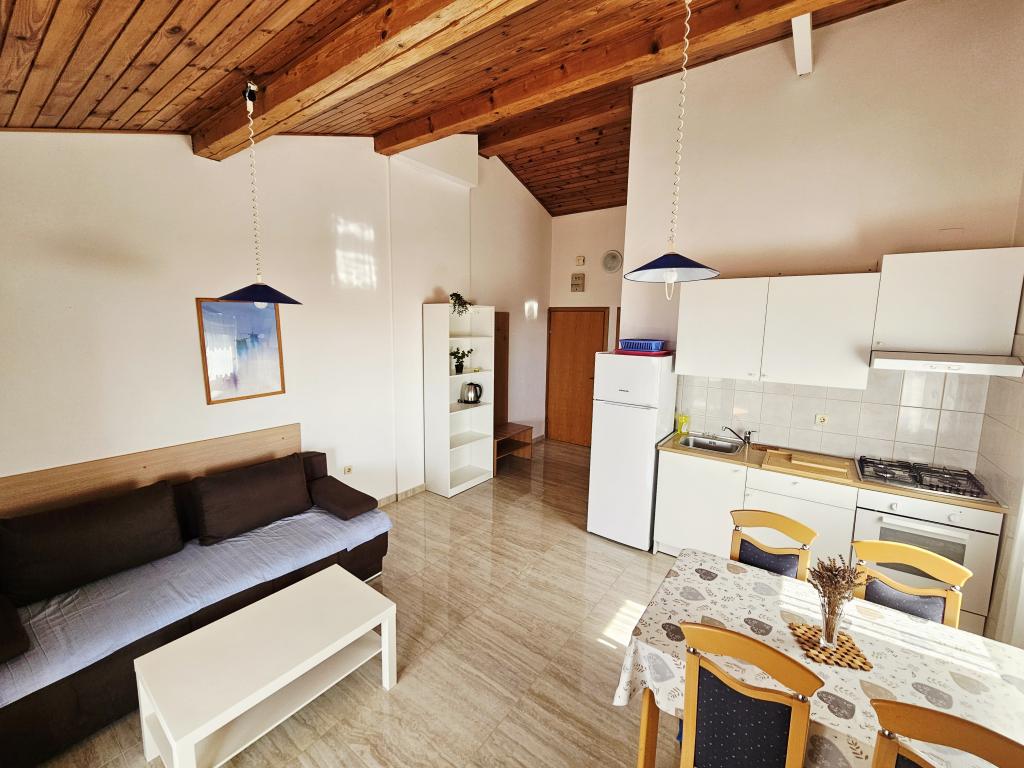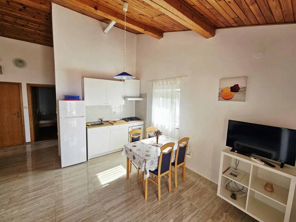 Palazzina Cikač e si trova a soli 50 metri dal mare. Si compone di quattro suite per 4 persone (2 +2 posti letto, 45 metri quadrati) situato al primo e al secondo piano e un appartamento per 6 +1 persone (80 mq) al piano terra. Gli appartamenti sono dotati di aria condizionata, TV con ricezione via satellite e terrestre, frigorifero e freezer e ampi balconi con vista sul mare. Nel cortile parcheggio e un camino. Bella spiaggia proprio sotto l'appartamento.