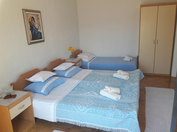 Moderni e spaziosi appartamenti, situato in un posto tranquillo nella città di Pag. Non lontano dal centro e protetta dal rumore e dalla folla. Belle spiagge si trovano nelle vicinanze. Due appartamenti sono situati al piano terra (A4 1), e uno al piano (A2 1). Appartamenti A4 sono composti da cucina, bagno, 2 camere da letto e l'appartamento A2 di cucina, bagno e camera da letto (l'appartamento è dotato di aria condizionata). Gli appartamenti dispongono di ampio terrazzo e ingressi separati proprio. Tutti gli appartamenti sono dotati di TV e Internet, posto auto al riparo dal sole. Nel giardino con mobili e barbecue.