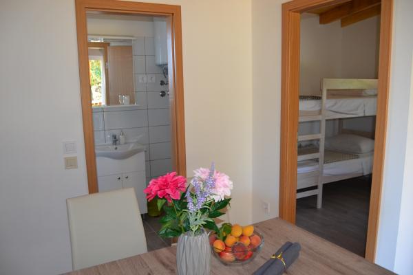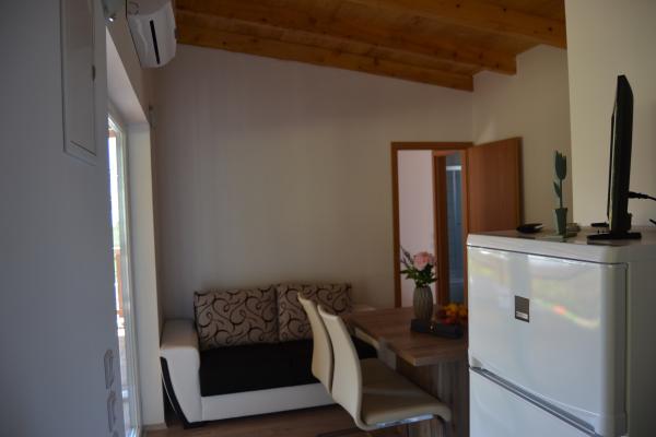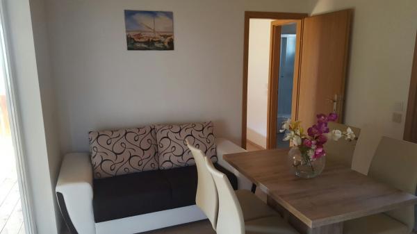 Verde, il clima mite, l'aria pulita, bellissima vista sul mare, questo è qualcosa che tutti si amano in questo luogo. Di recente costruzione, due appartamenti situati in una posizione tranquilla. Offriamo una camera doppia con bagno, camera con due letti singoli che possono essere collegati, cucina con zona pranzo e divano e un bagno. Su una bella terrazza spaziosa è impostato per 4 persone e due lettini. Volete trascorrere le vostre vacanze, e si desidera prendere il vostro cane e noi fornire questa funzionalità. Tutti sono i benvenuti nel nostro piccolo, bello, appartamenti di nuova costruzione. Aria condizionata, biancheria da letto, asciugamani e connessione Wi-Fi inclusi.