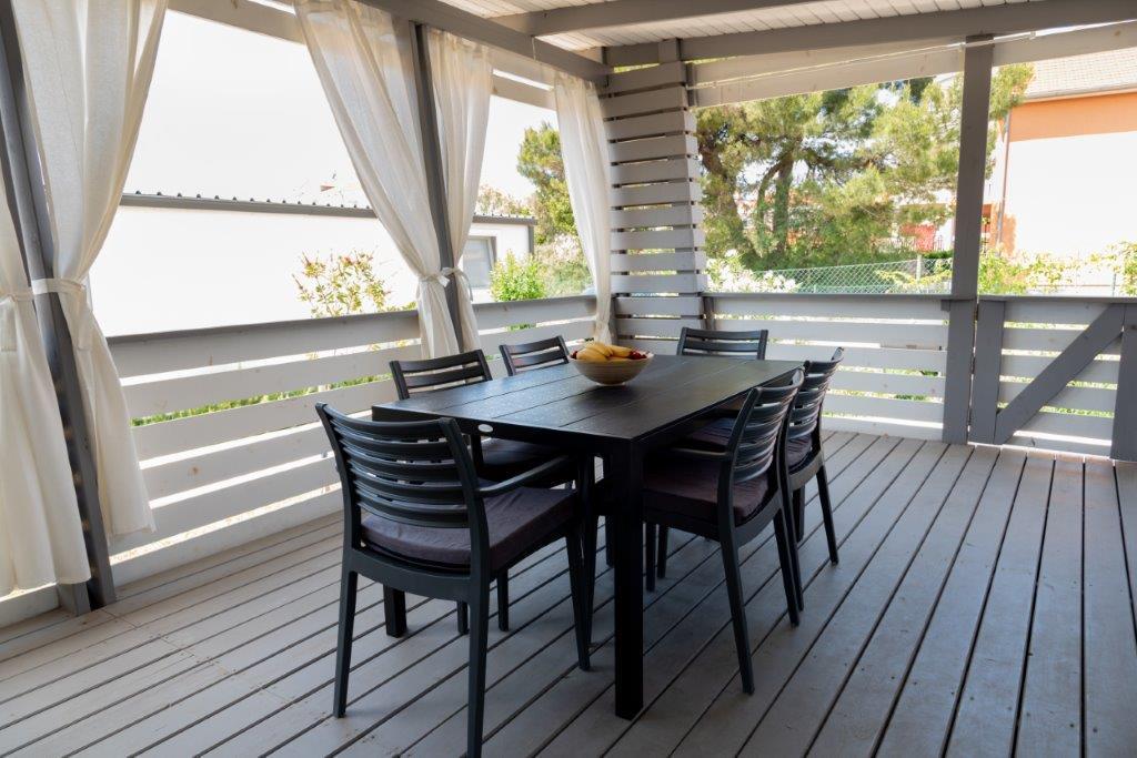 Case mobili situate nel centro di Pakoštane, proprio accanto alla spiaggia principale di sabbia con vista diretta sul mare. La casa mobile dispone di due camere da letto, una sala da pranzo, una cucina, un bagno e un'ampia terrazza (5). Tutti gli ospiti hanno a disposizione un barbecue. Gli ospiti hanno a disposizione un posto auto. Gli animali domestici sono ammessi ma è previsto un supplemento di €7 a notte per animale. Disponiamo di un nostro ormeggio per barche e di un parcheggio per rimorchi, che sono a disposizione degli ospiti a un costo aggiuntivo.