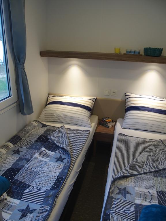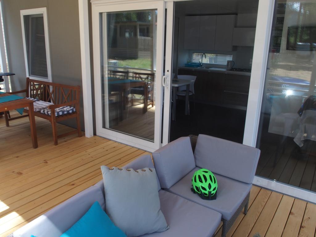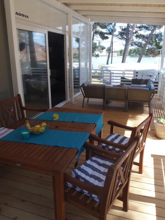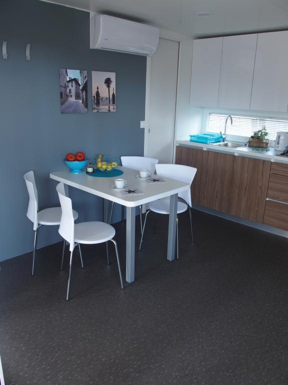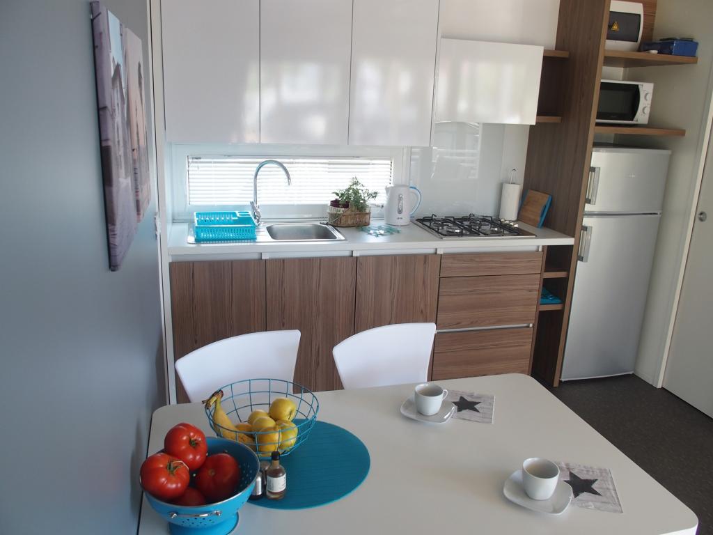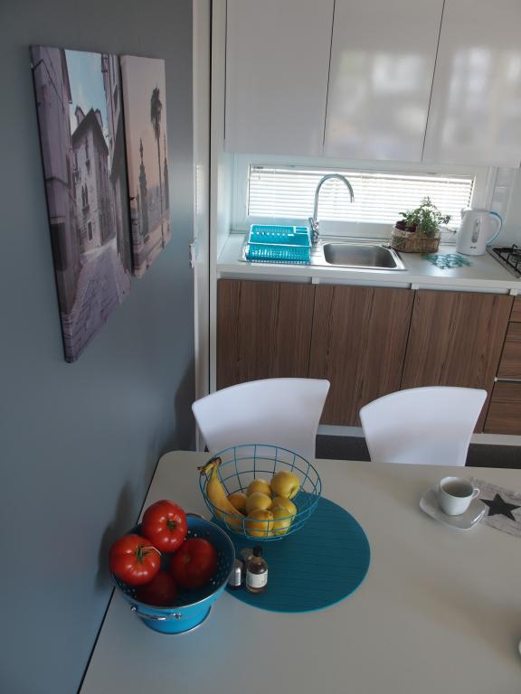 Questa lussuosa casa mobile è situata nella naturale "profonda ombra" di una pineta, a soli 20 metri dalla spiaggia sabbiosa. Con un'ampia terrazza con vista mare, 2 camere da letto, una cucina e un bagno completamente attrezzati e un grande soggiorno con divano letto aggiuntivo, questa casa vacanze è la scelta perfetta per una rilassante vacanza in famiglia. Offre una sistemazione confortevole per 4 persone, con una capacità massima di 4 + 1 persone. La terrazza dispone di un'area relax con posti a sedere, un tavolo da pranzo per un massimo di 6 persone e un barbecue a gas. A soli 20 metri si trova una splendida e sicura spiaggia con fondale sabbioso che si estende da un'estremità all'altra della baia. Lungo la costa, a pochi chilometri in entrambe le direzioni, si trovano altre spiagge di diverso tipo da esplorare. All'interno del campeggio, gli ospiti hanno accesso a una piscina con area prendisole attrezzata con lettini gratuiti, nonché a un bar-caffetteria, e la terrazza della casa è posizionata in modo da offrire una vista aperta sull'intera baia e sulla piscina.