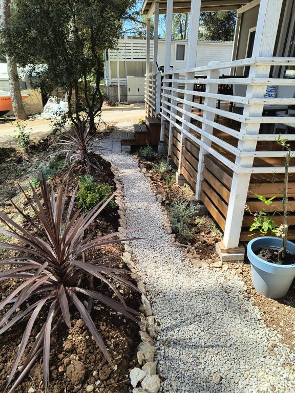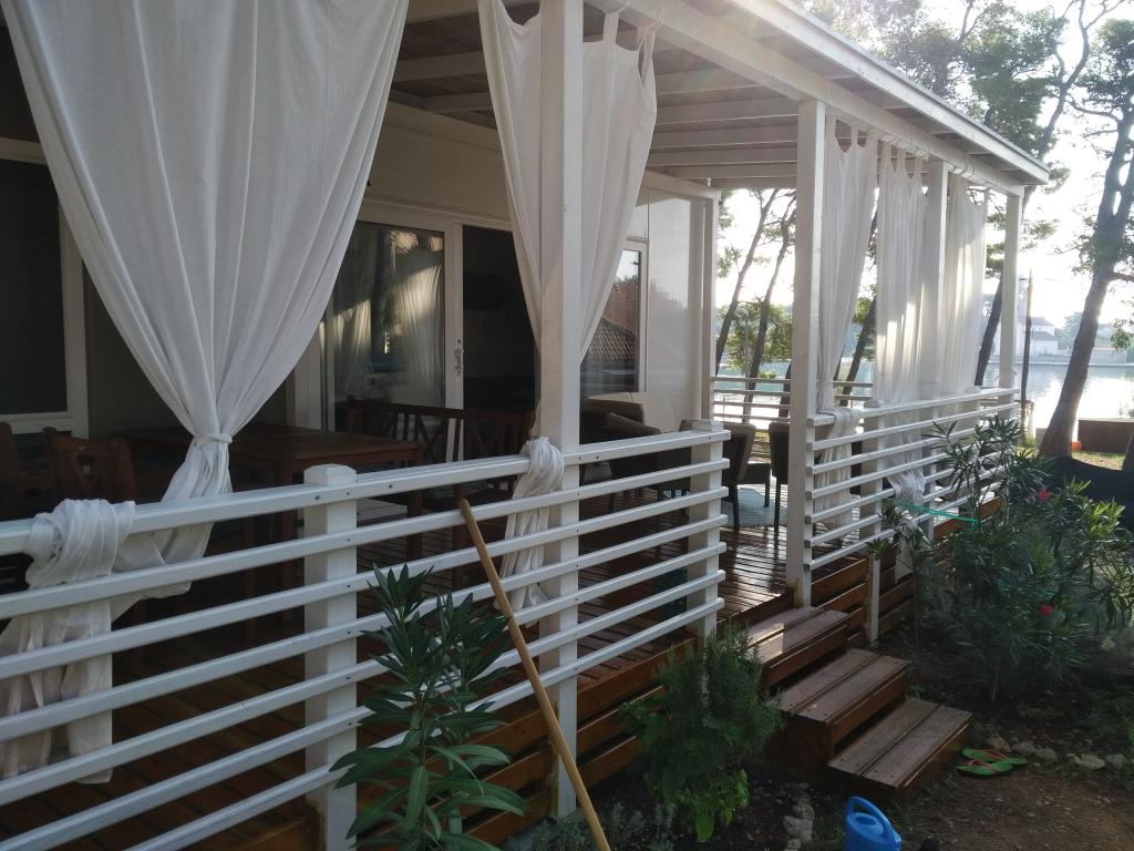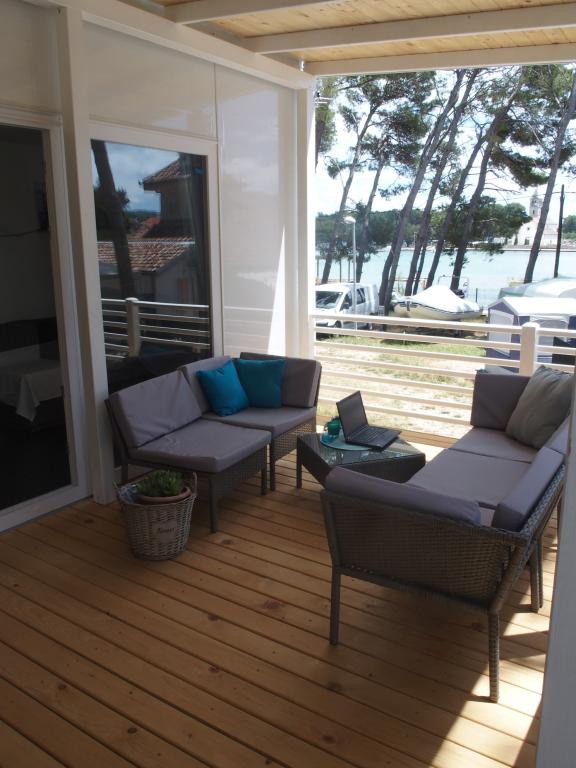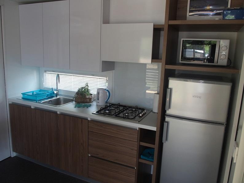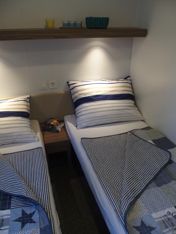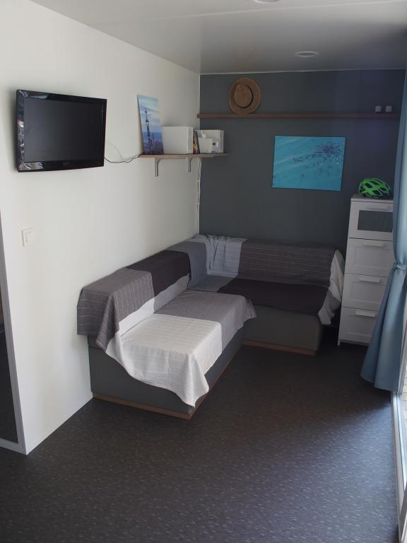 Questa lussuosa casa mobile è situata nella naturale "profonda ombra" di una pineta, a soli 20 metri dalla spiaggia sabbiosa. Con un'ampia terrazza con vista mare, 2 camere da letto, una cucina e un bagno completamente attrezzati e un grande soggiorno con divano letto aggiuntivo, questa casa vacanze è la scelta perfetta per una rilassante vacanza in famiglia. Offre una sistemazione confortevole per 4 persone, con una capacità massima di 4 + 1 persone. La terrazza dispone di un'area relax con posti a sedere, un tavolo da pranzo per un massimo di 6 persone e un barbecue a gas. A soli 20 metri si trova una splendida e sicura spiaggia con fondale sabbioso che si estende da un'estremità all'altra della baia. Lungo la costa, a pochi chilometri in entrambe le direzioni, si trovano altre spiagge di diverso tipo da esplorare. All'interno del campeggio, gli ospiti hanno accesso a una piscina con area prendisole attrezzata con lettini gratuiti, nonché a un bar-caffetteria, e la terrazza della casa è posizionata in modo da offrire una vista aperta sull'intera baia e sulla piscina.