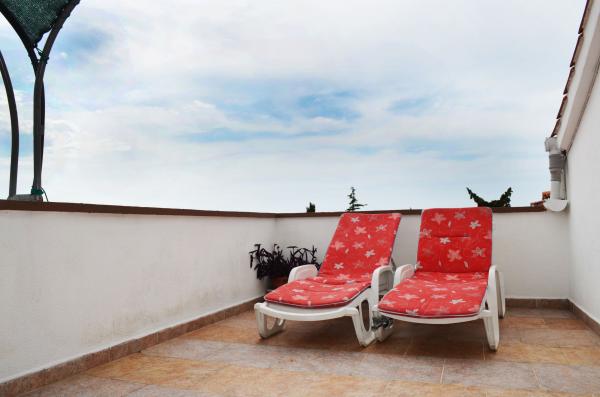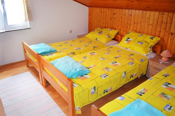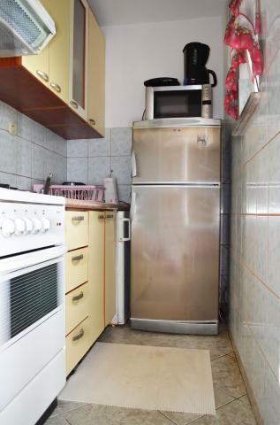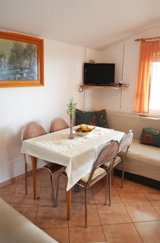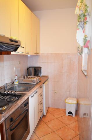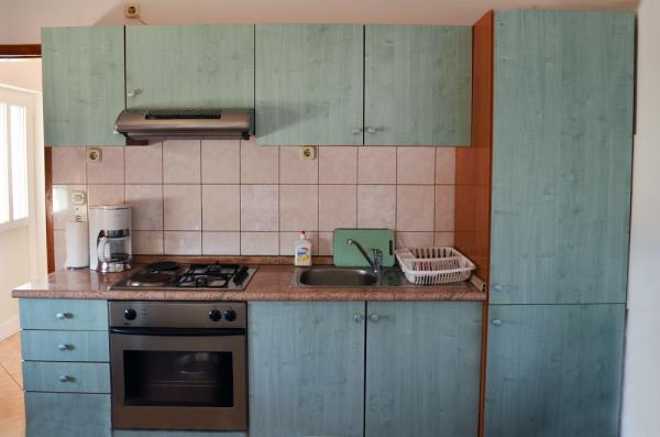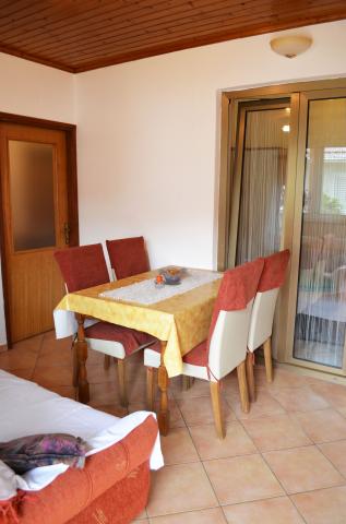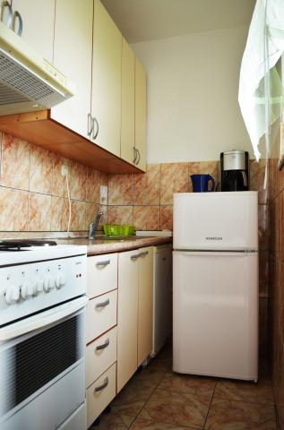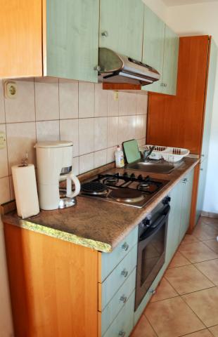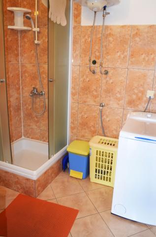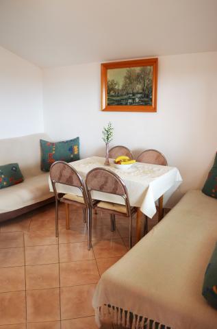 L'ambiente sereno e tranquillo, lontano dalle strutture (ristoranti, negozi e spiagge). Sulla spiaggia è necessario per guidare una macchina (3-4 min.), A piedi (30 minuti). L'appartamento è ideale per le famiglie che cercano privacy e tranquillità. I proprietari sono cordiali, disponibile e molto cordiale. Appartamento era ben attrezzata adeguatamente per cinque persone con la possibilità di cambiamento di uso angolo cottura e lavatrice. Asset ha un balcone con vista sul mare. La struttura è anche un canestro da basket.