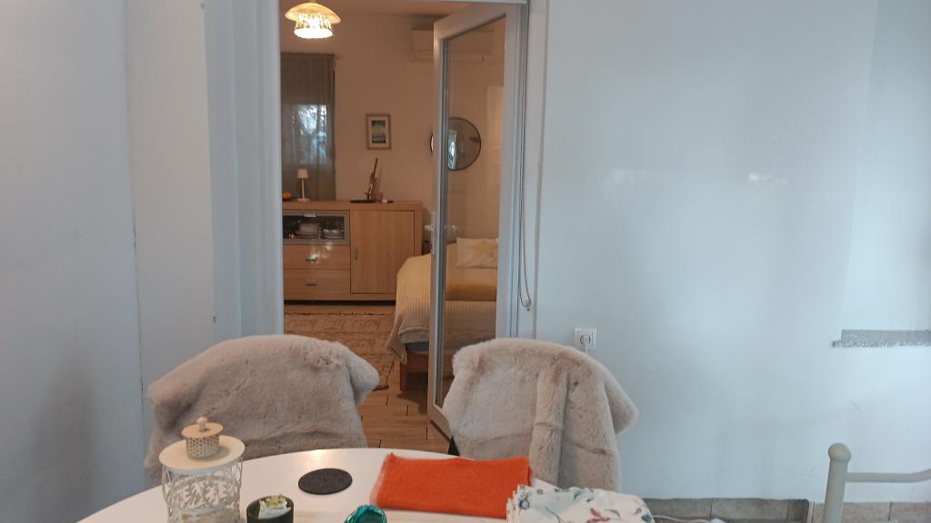 L'appartamento Log Inn si trova al primo piano di una casa con solo due appartamenti, in un vicolo tranquillo ideale per il relax delle famiglie. Il giardino della casa è ombreggiato da ulivi, fichi e pini, con un posto auto nel cortile. Il centro città con negozi, panetterie, pasticcerie, bar e ristoranti è raggiungibile in 10 minuti a piedi, mentre la prima spiaggia di ciottoli è a soli 5-10 minuti a piedi. Il Log Inn è piacevole da soggiornare con qualsiasi tempo, spazioso e dotato di una stanza separata con soggiorno con giocattoli e libri illustrati. È ben attrezzato (stoviglie, bollitore, macchina per il caffè, maxi-tv, WLAN, aria condizionata) e nelle sere primaverili il soggiorno è perfetto per rilassarsi accanto al fuoco nella stufa a legna. La terrazza con mobili da giardino è piacevole e gli ospiti sono felici di farvi colazione, prendere il sole o godersi la serata. Il monolocale è più piccolo e con un angolo cottura più piccolo, ma grazie al giardino è piacevole anche nella calura estiva. Attrezzatura per neonati: lettino da viaggio, nursery, giocattoli, materassino, ecc. Entrambi gli appartamenti sono dotati di aria condizionata e riscaldamento. In bassa stagione, vengono affittati con sconti e su base mensile.