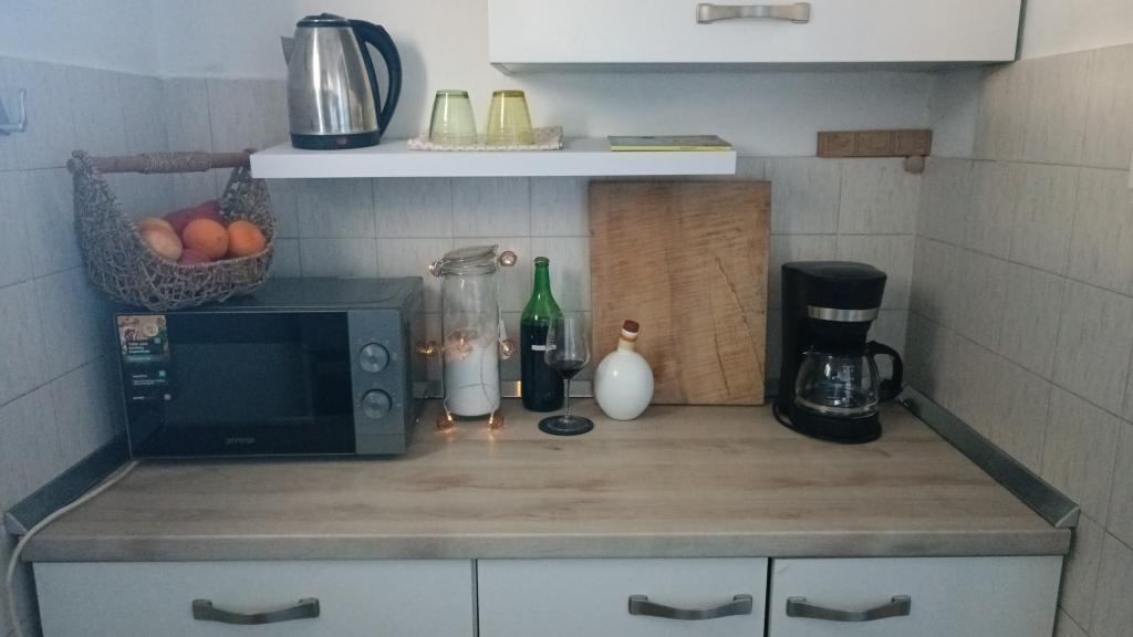 L'appartamento Log Inn si trova al primo piano di una casa con solo due appartamenti, in un vicolo tranquillo per famiglie. Il giardino della casa è ombreggiato da ulivi, fichi e pini, con un posto auto nel cortile. Il centro città con negozi, panetterie, pasticcerie, bar e ristoranti è a 10 minuti a piedi, e la prima spiaggia di ciottoli è a soli 5-10 minuti a piedi. Il Log Inn è piacevole da soggiornare con qualsiasi tempo, spazioso e con una stanza separata con soggiorno con giocattoli e libri illustrati. È ben attrezzato (stoviglie, bollitore, macchina per il caffè, max-tv, WLAN, aria condizionata) e in soggiorno nelle sere primaverili ci si rilassa accanto al fuoco della stufa a legna. La terrazza con mobili da giardino è piacevole e gli ospiti sono felici di farvi colazione, prendere il sole o godersi la serata. Il monolocale è più piccolo e con un angolo cottura più piccolo, ma grazie al giardino è piacevole anche nella calura estiva. Dispone di attrezzature per neonati: lettino da viaggio, nursery, giocattoli, materassino, ecc. Entrambi gli appartamenti sono dotati di aria condizionata e riscaldamento. Fuori stagione vengono affittati con sconti e su base mensile