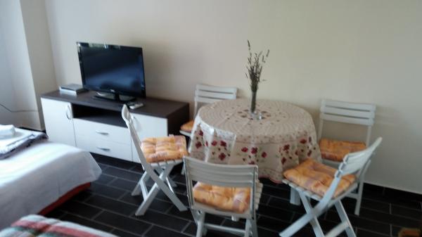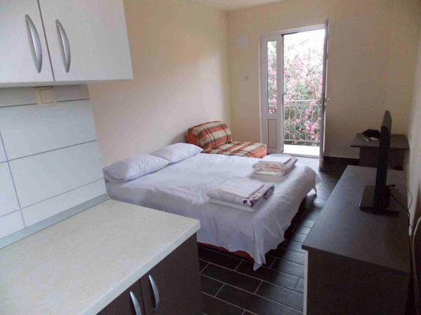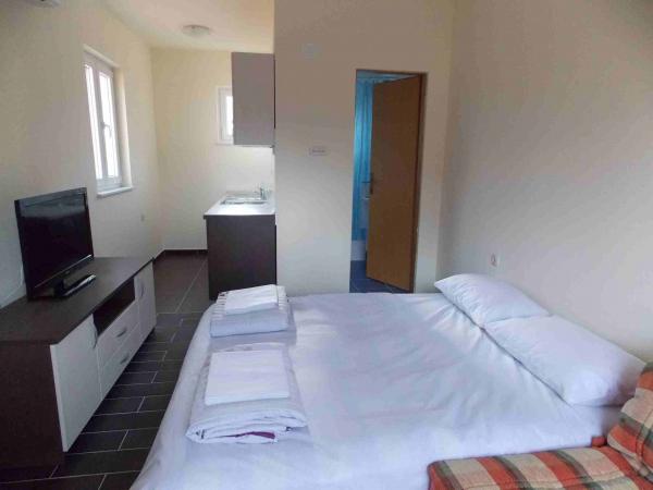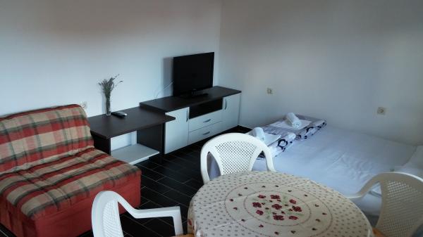 Gli appartamenti sono situati nel centro dei dati. Si trovano a 100 metri dal mare e belle spiagge. Negozio, ufficio postale, campo sportivo, chiesa, fermata del bus e lo scambio in un raggio di 40 m dall'appartamento. La struttura si compone di quattro suites, due appartamenti separati per due persone con letto aggiunto, un appartamento per due persone con tre letti aggiunti e un grande appartamento per quattro persone e tre letti aggiunti. Gli appartamenti sono nuovi e dotati di aria condizionata, TV, bagno e cucina. Gli appartamenti hanno l'uso di due terrazze, e un cortile con barbecue in ombra. Parcheggio ospiti è previsto, e il prezzo include la tassa di soggiorno. Lenzuola e asciugamani sono inclusi e vengono cambiati ogni sette giorni.