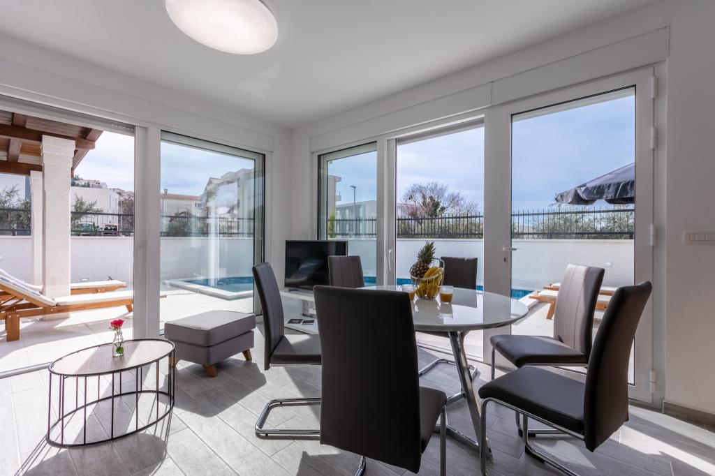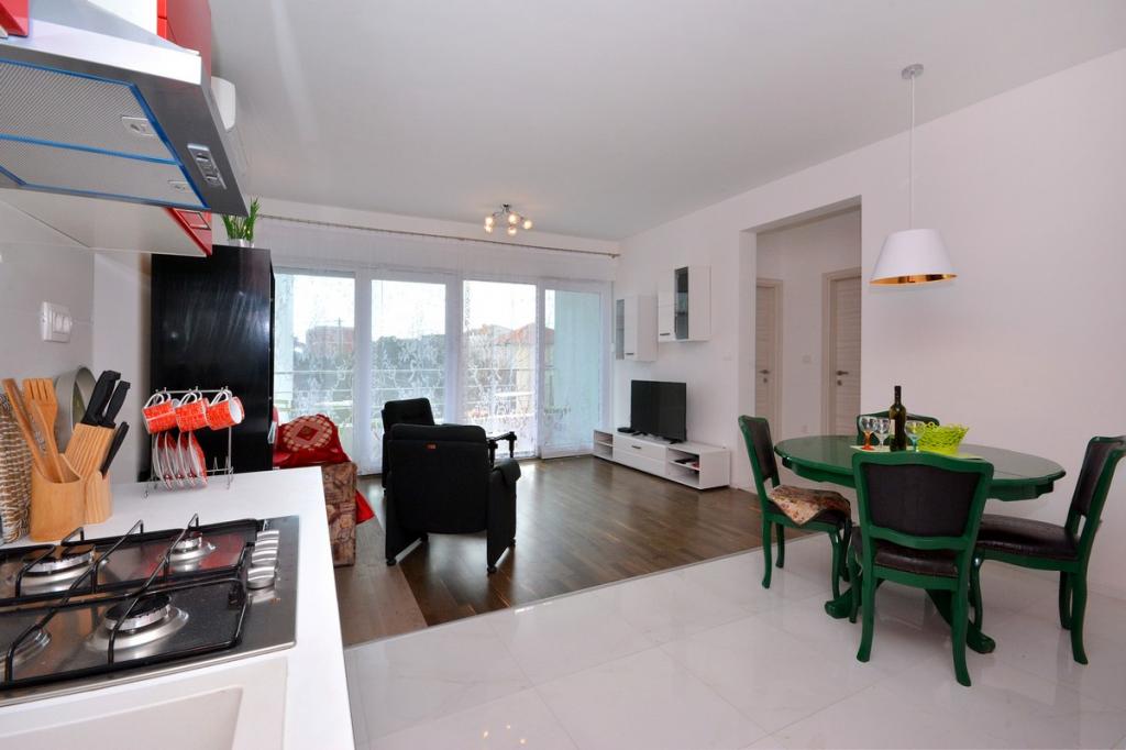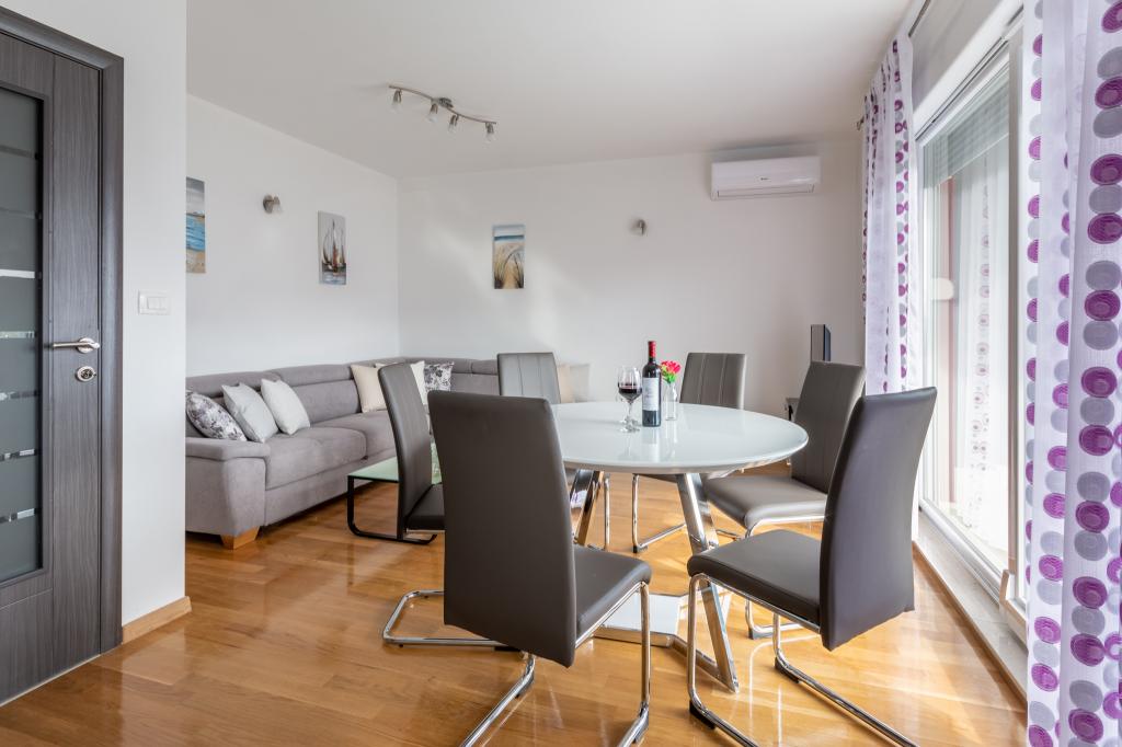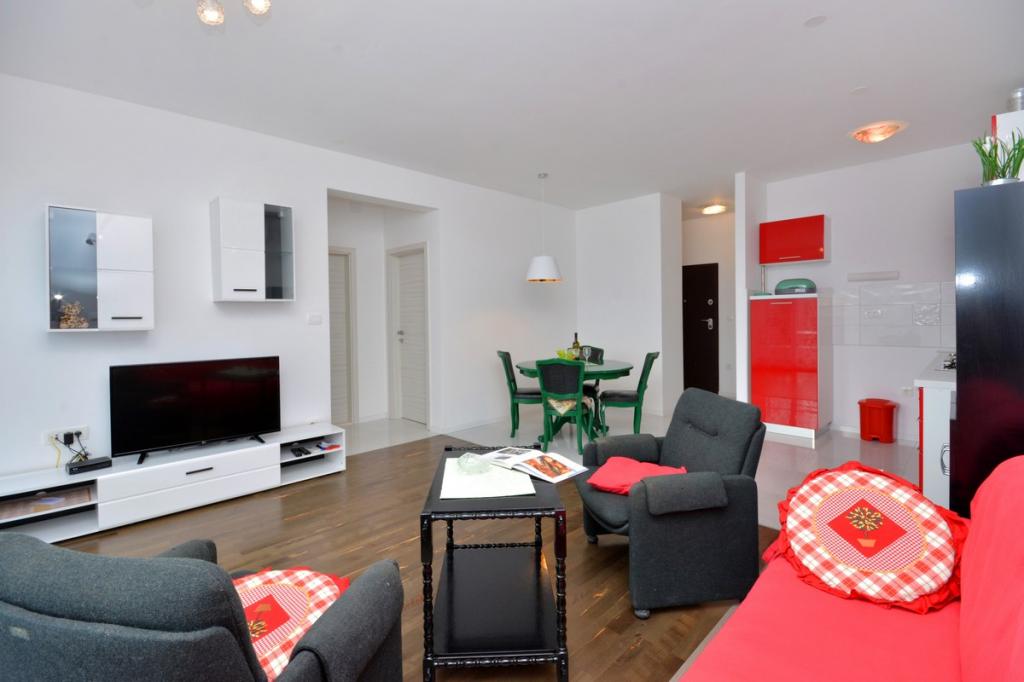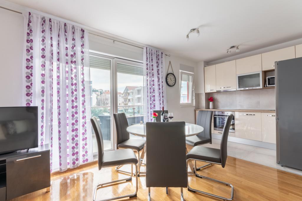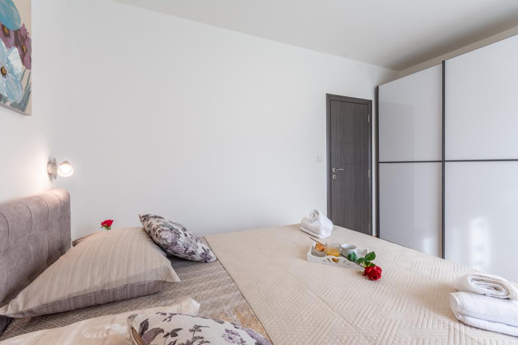 Completamente moderno appartamento lussuosamente arredato in una zona tranquilla di Podstrana, bellissimo appartamento in nuova costruzione con 2 camere da letto, soggiorno, cucina, terrazza, tv-wi-fi, lavatrice, aria condizionata, vicino alla spiaggia a soli 70 mt, parcheggio privato. Nelle vicinanze c'è una stazione degli autobus, un mercato, supermercati, bar, ristoranti, fast food e simili. Podstrana si trova vicino alla città di Spalato a soli 10 km.