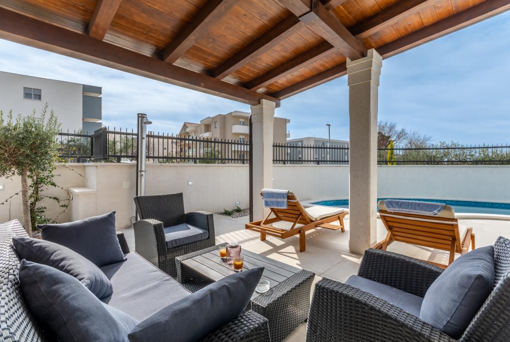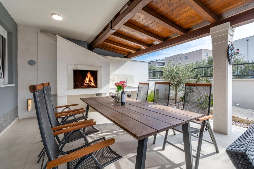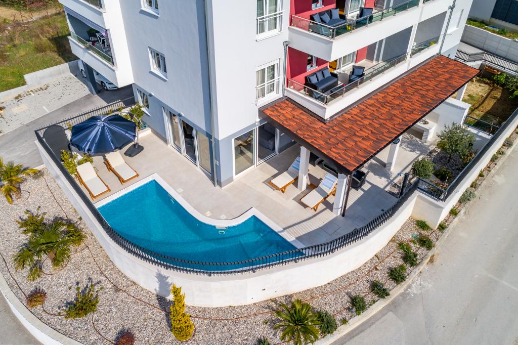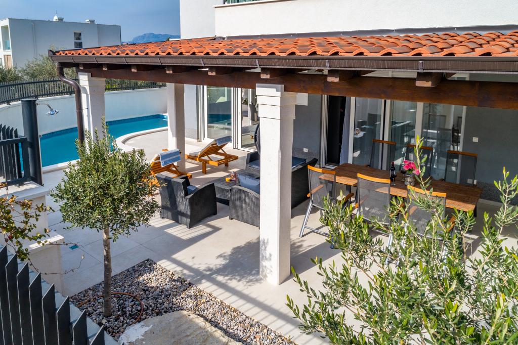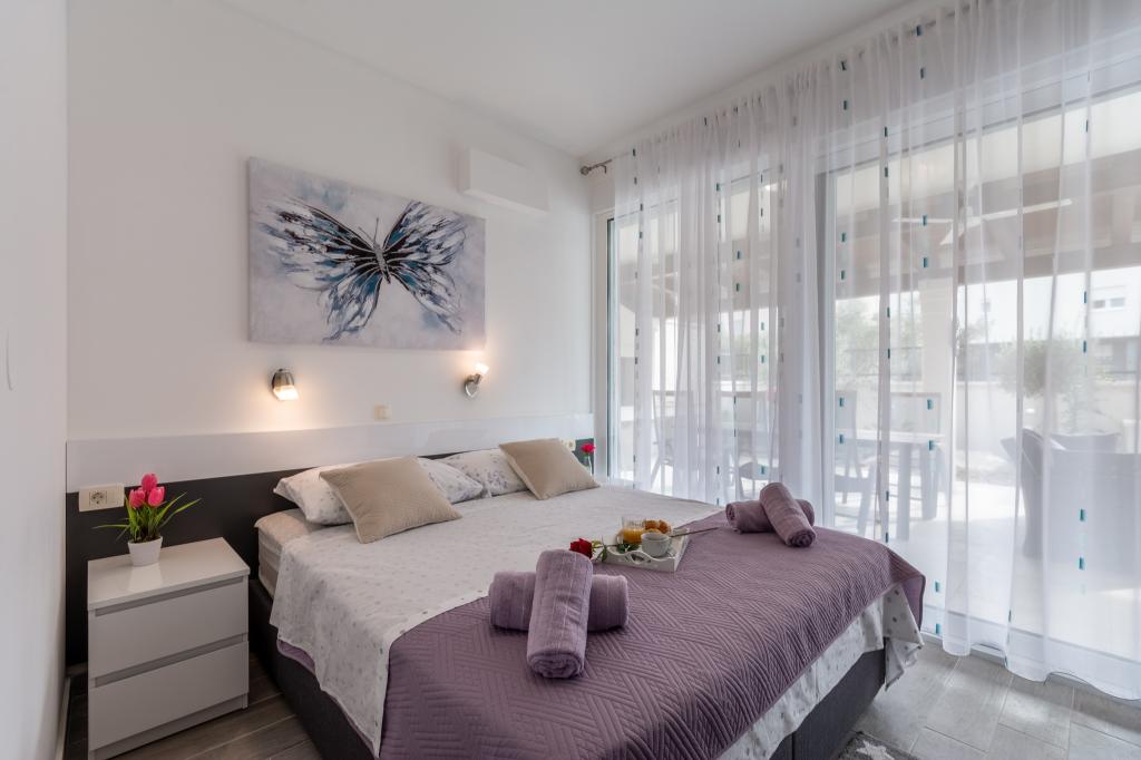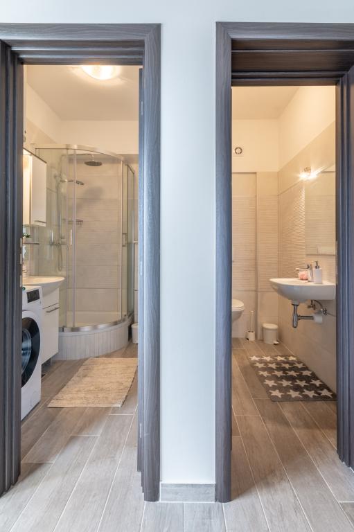 Completamente moderno appartamento lussuosamente arredato in una zona tranquilla di Podstrana, bellissimo appartamento in nuova costruzione con 2 camere da letto, soggiorno, cucina, terrazza, tv-wi-fi, lavatrice, aria condizionata, vicino alla spiaggia a soli 70 mt, parcheggio privato. Nelle vicinanze c'è una stazione degli autobus, un mercato, supermercati, bar, ristoranti, fast food e simili. Podstrana si trova vicino alla città di Spalato a soli 10 km.