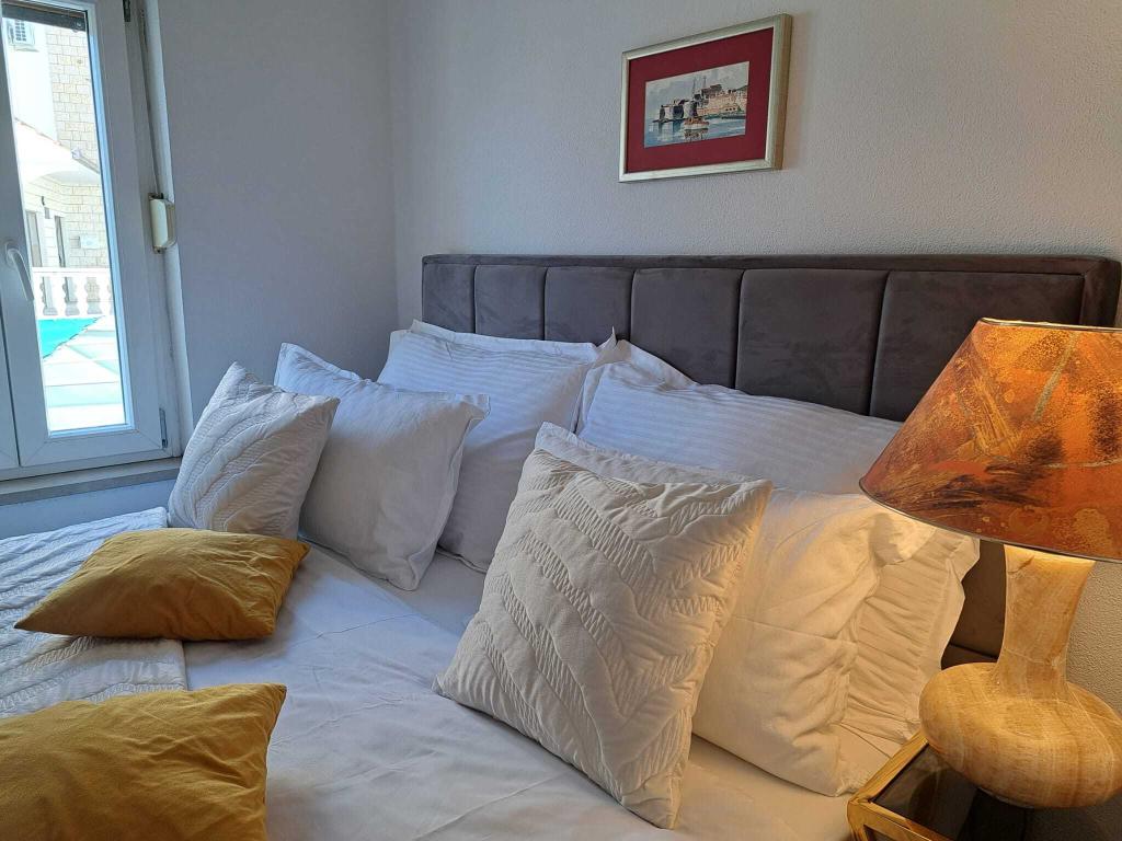 Nuova grande casa su tre piani a Podstrana (Strožanac), situata vicino al mare e all'hotel Le Meridien. Si trova a soli 15 minuti di auto da Spalato. La casa è composta da 3 appartamenti per 3 o 4 persone (ciascuno di 40 mq), un grande quadrilocale di 120 mq per 7/8 persone e un grande trilocale al piano terra che può ospitare 6/7 persone. Gli appartamenti dispongono di terrazze, sono completamente attrezzati, dotati di aria condizionata e connessione internet wi-fi. Per ulteriori informazioni, si prega di contattare l'ufficio via email. Nelle vicinanze si trovano spiagge e numerosi altri servizi, bar, ristoranti, negozi e pizzerie. C'è un parcheggio nel cortile. Gli appartamenti sono situati in una zona tranquilla e i padroni di casa sono a vostra disposizione per fornirvi tutte le informazioni necessarie. La casa ha due garage con un totale di 3 posti auto, e c'è anche un parcheggio gratuito in strada nelle vicinanze. La linea di autobus Split-Omiš (numero 60) passa ogni 20 minuti, e la fermata dell'autobus è a 5 minuti a piedi dall'appartamento.