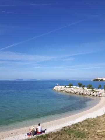 Bellissimo appartamento con due camere da letto in un nuovo edificio di lusso con un ascensore. Tutti i servizi necessari si trovano a pochi minuti a piedi dagli appartamenti (spiaggia, il porto, ristoranti, bar, supermercato, pesce, fast food, farmacia, campi da tennis, ...) Il parcheggio è gratuito e si trova di fronte al palazzo.